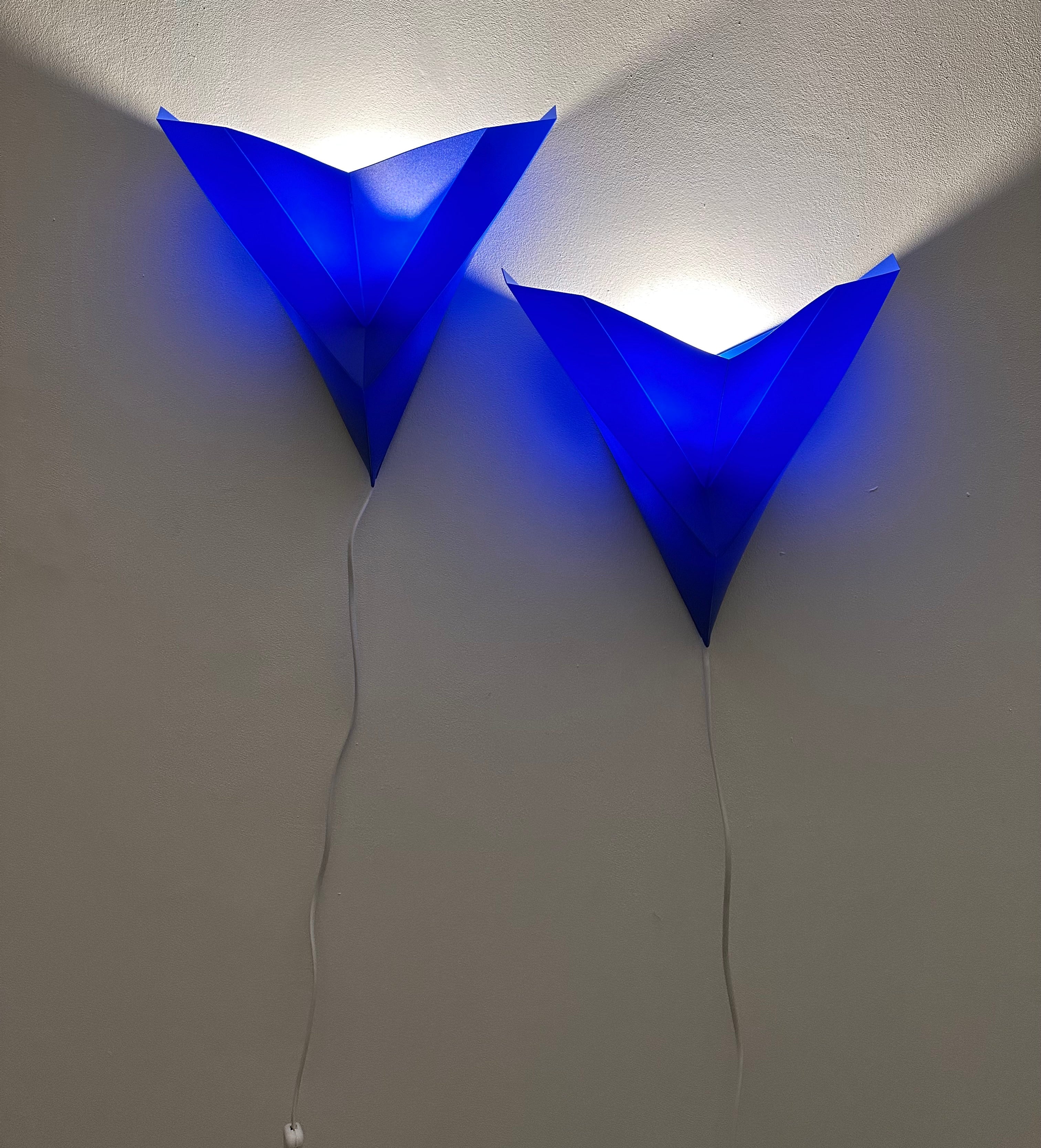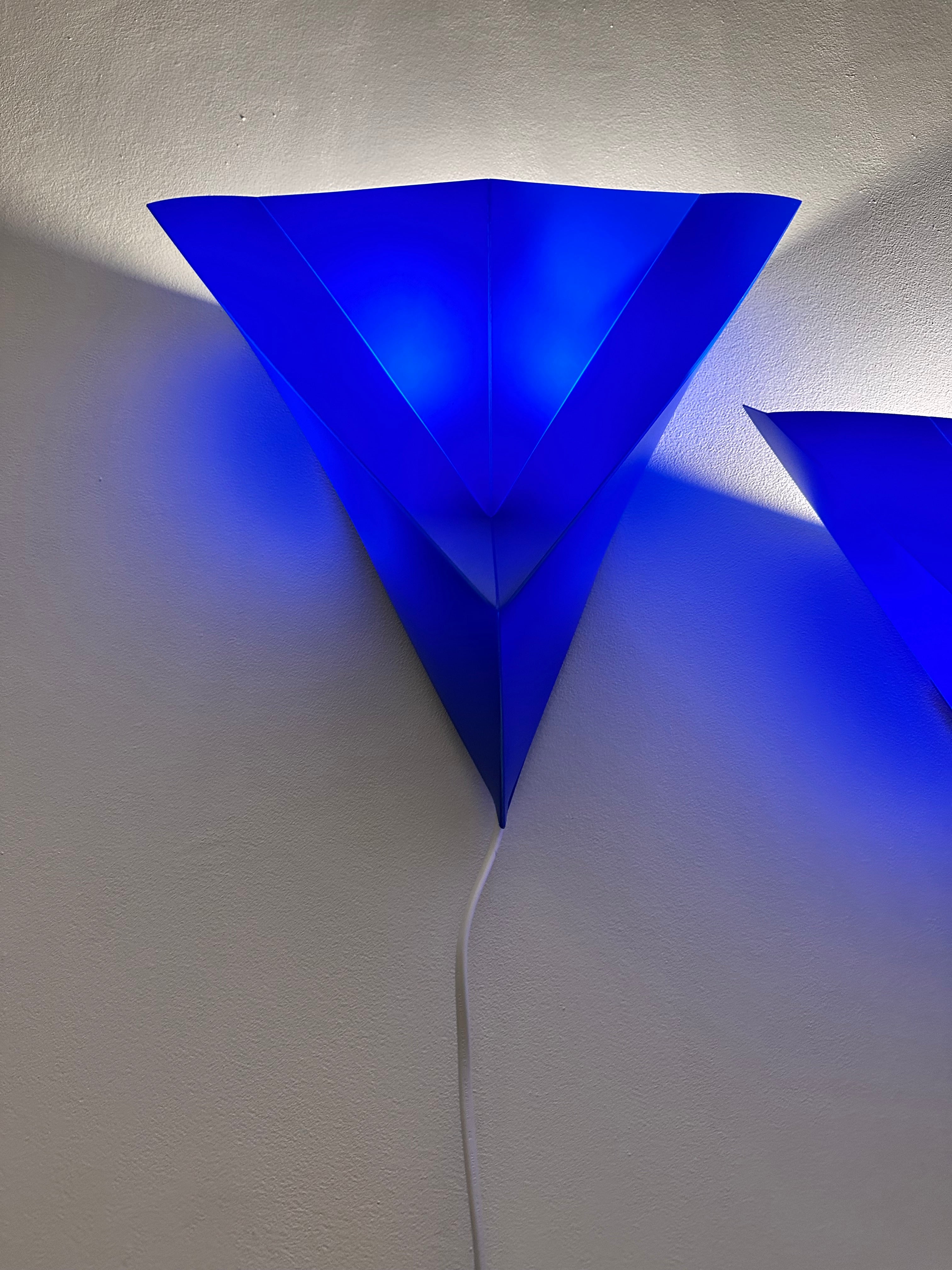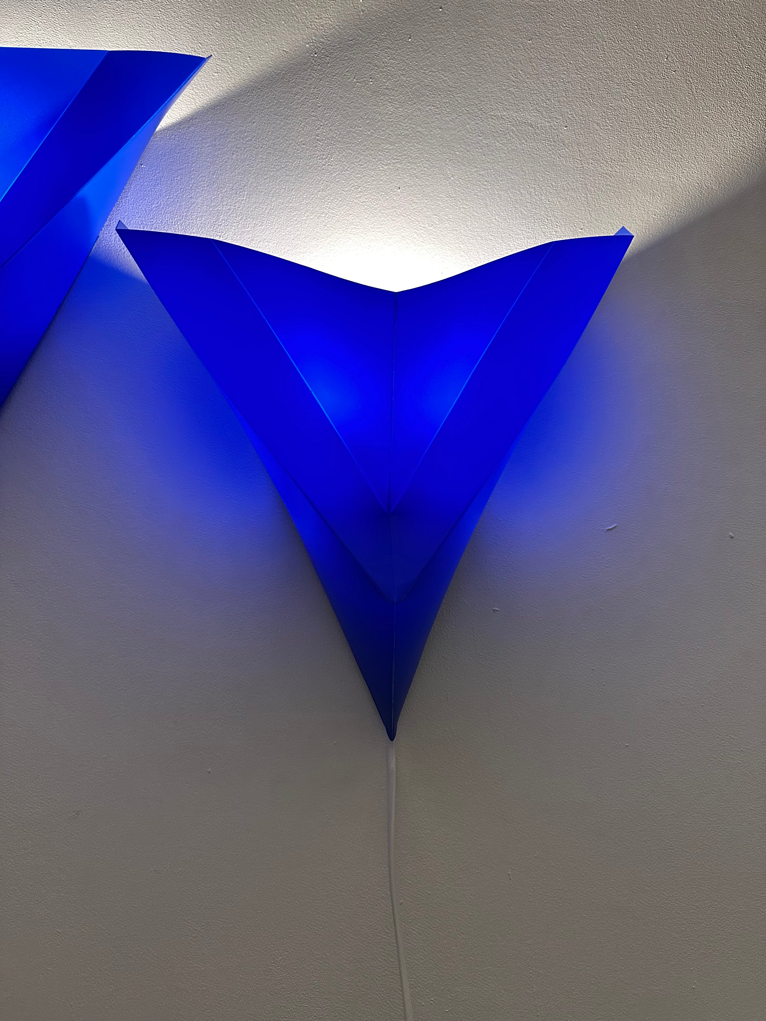 - Ensemble de 2 appliques Ikéa des années 90, leur style origami et leur couleur bleue électrique feront une déco pop et stylée