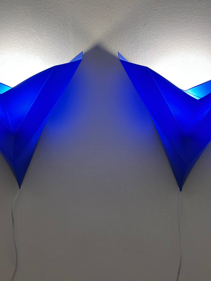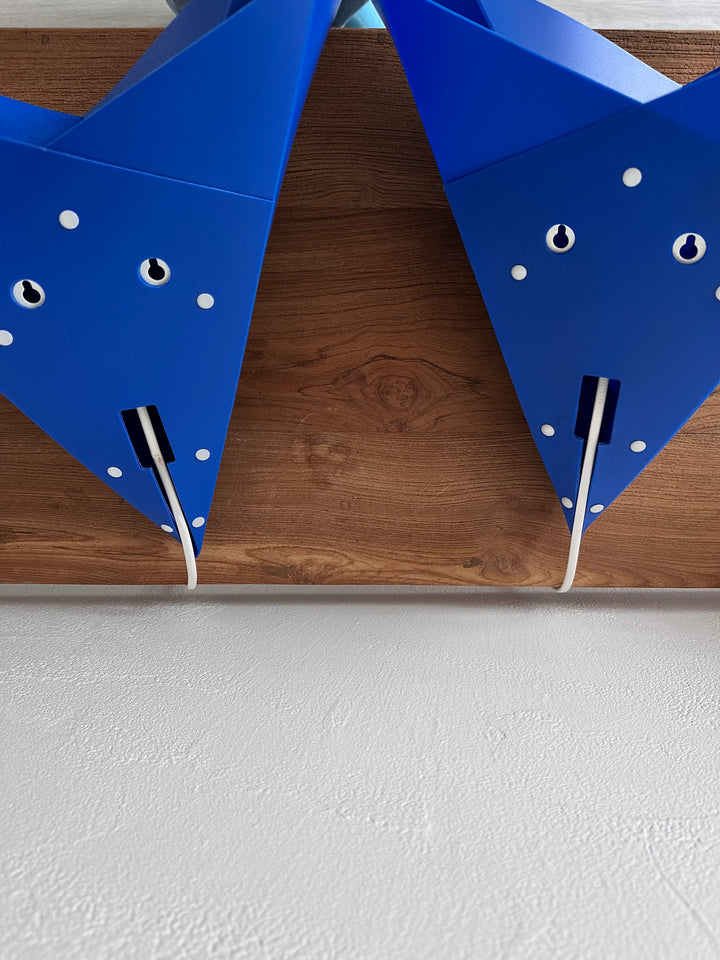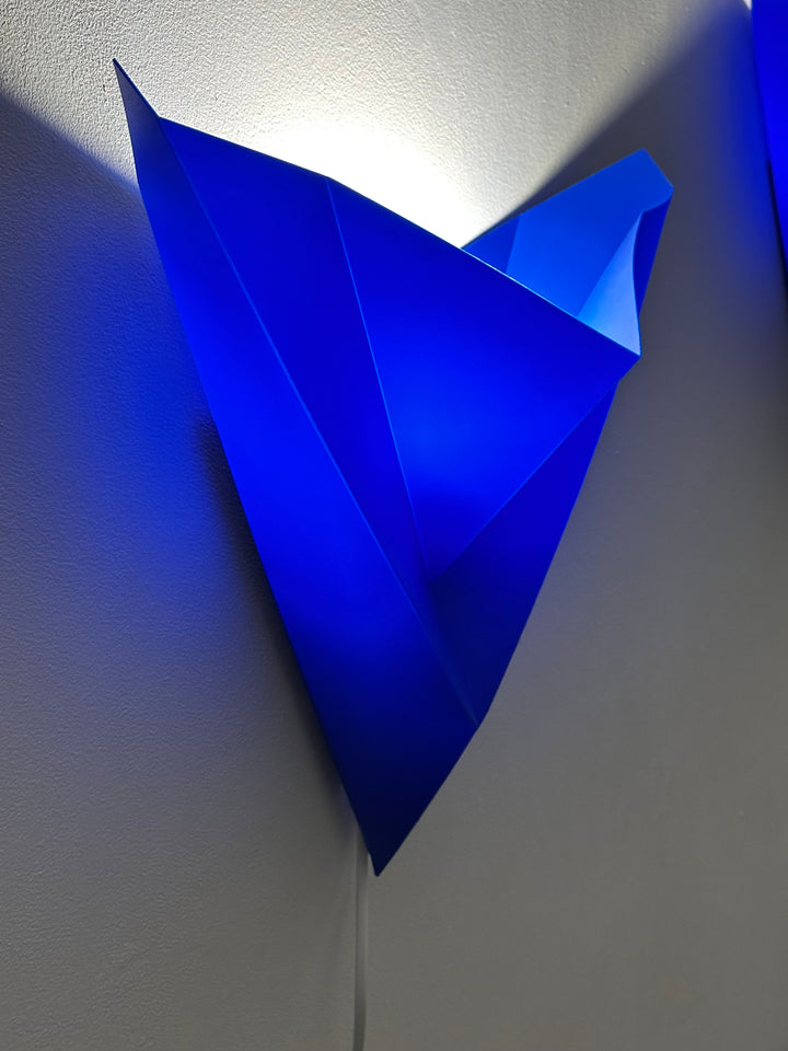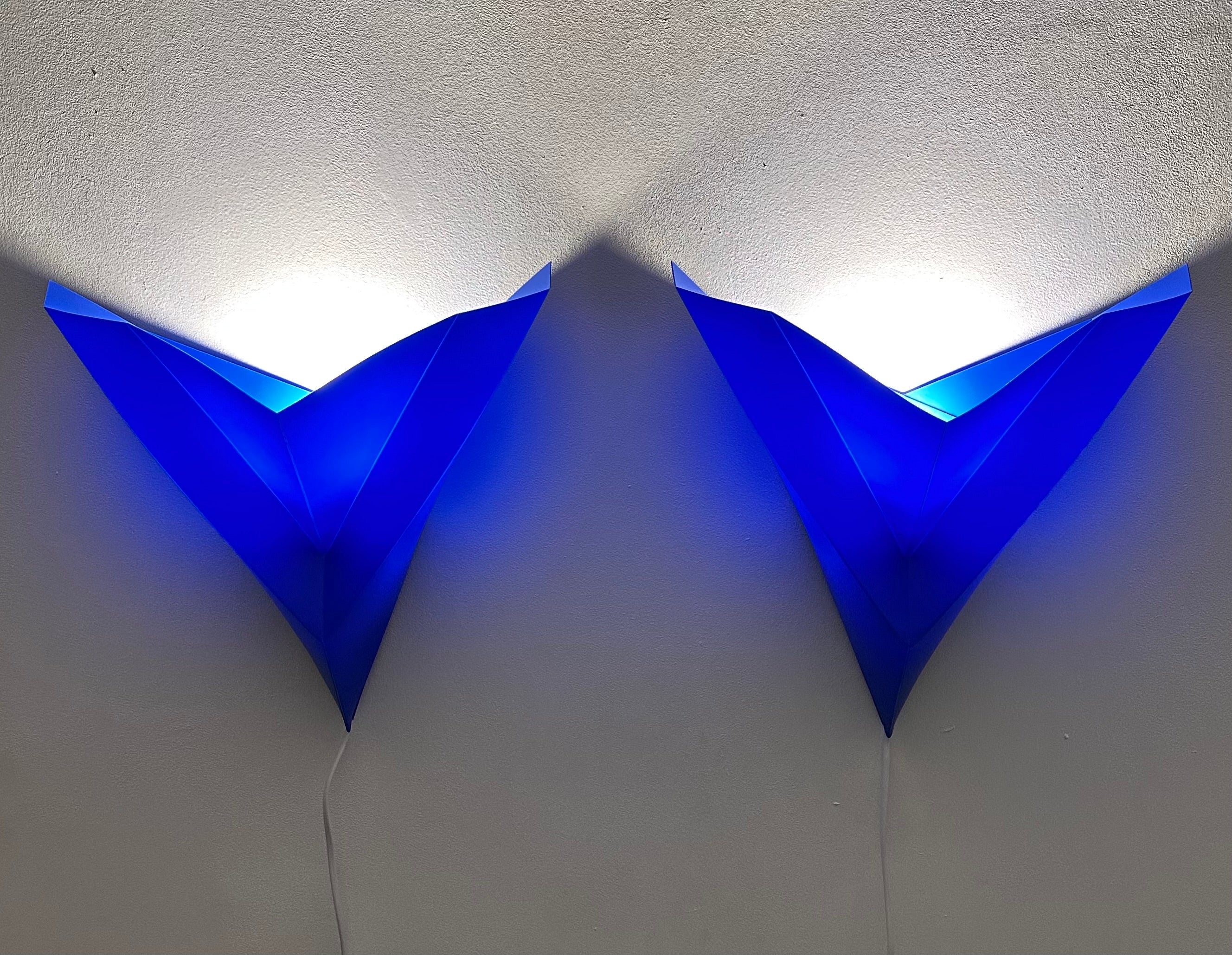 - Ensemble de 2 appliques Ikéa des années 90, leur style origami et leur couleur bleue électrique feront une déco pop et stylée