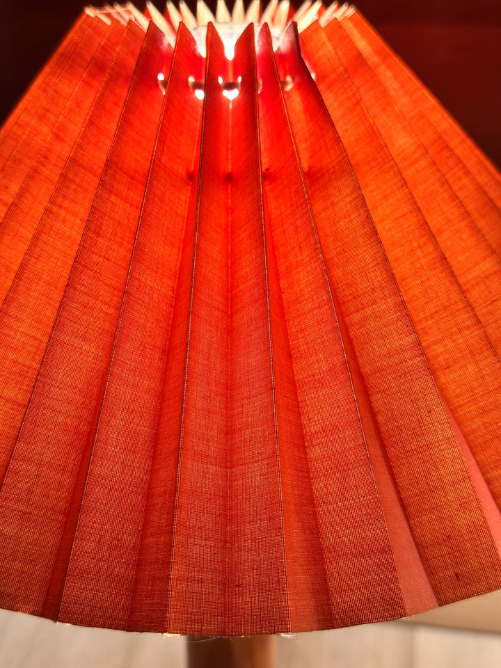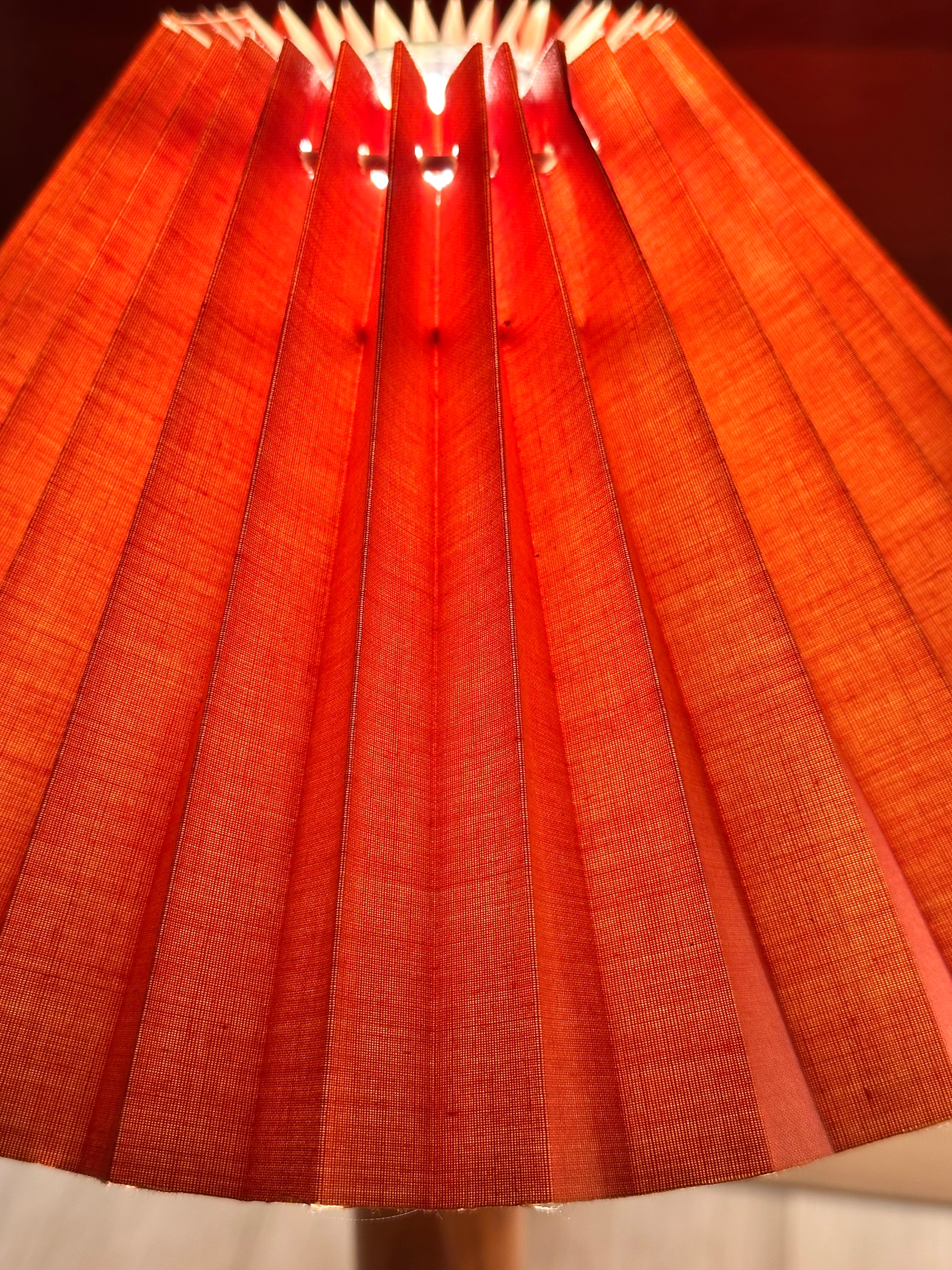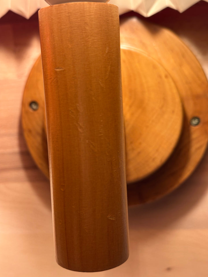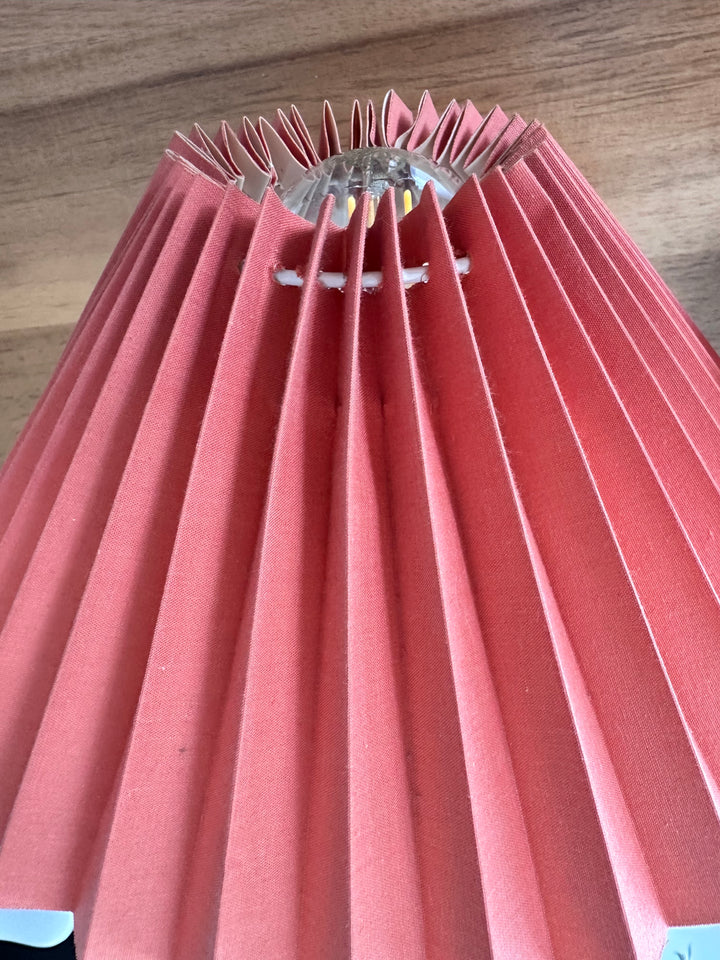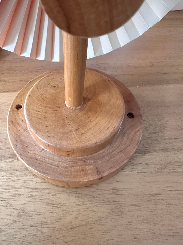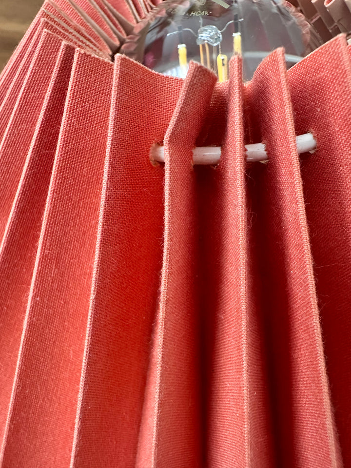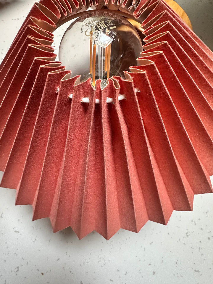 - Ensemble de 2 appliques en bois, abats-jour plissé de couleur saumon, intérieurs blancs