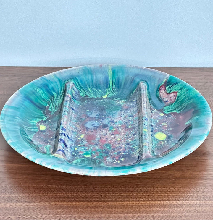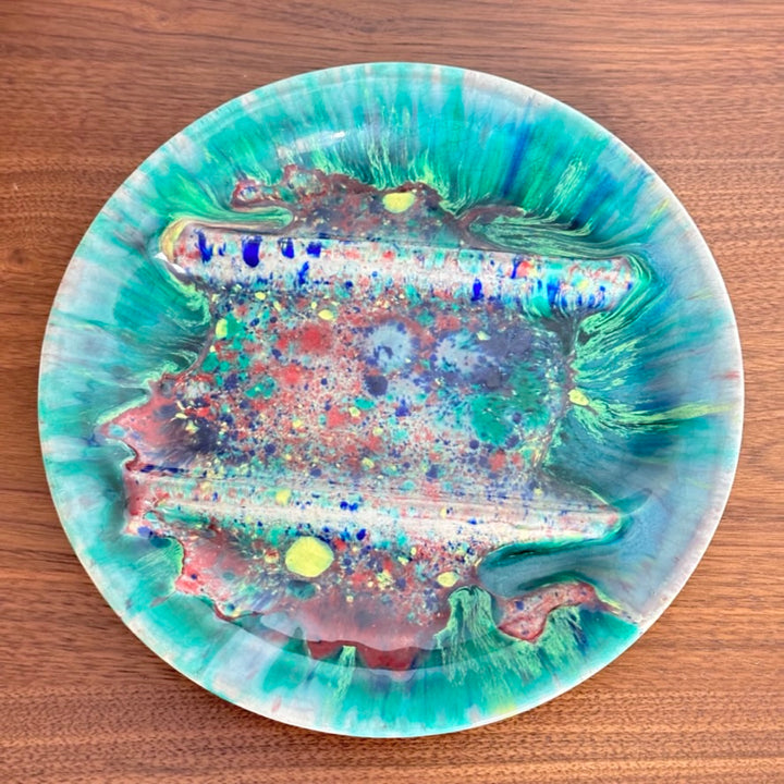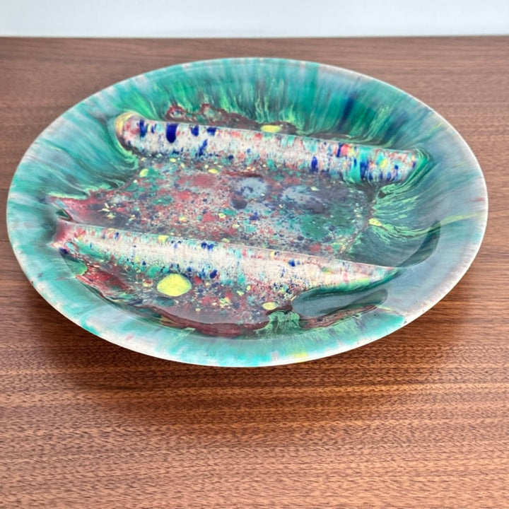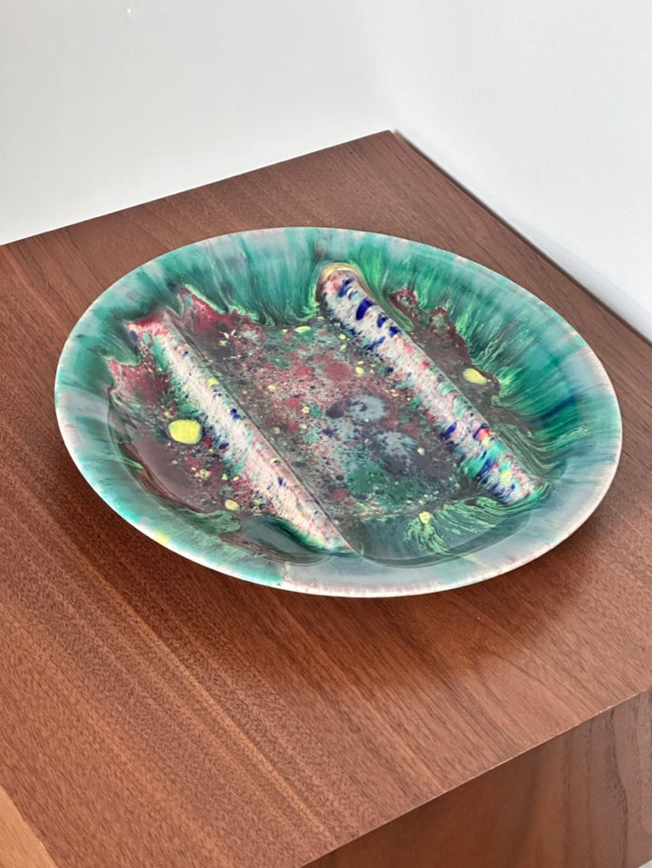 - Assiette de présentation pour l'apéritif, sa couleur et ses motifs ont été un coup de coeur lors d'une brocante en Dordogne