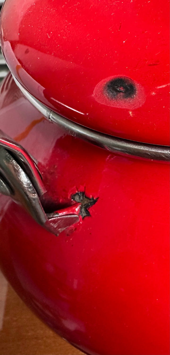 - Comme chaque objet vintage, elle a ses défauts mais reste tout aussi charmante, vendue uniquement pour de la déco car son intérieur ne lui permet pas d'être utilisée en cuisine