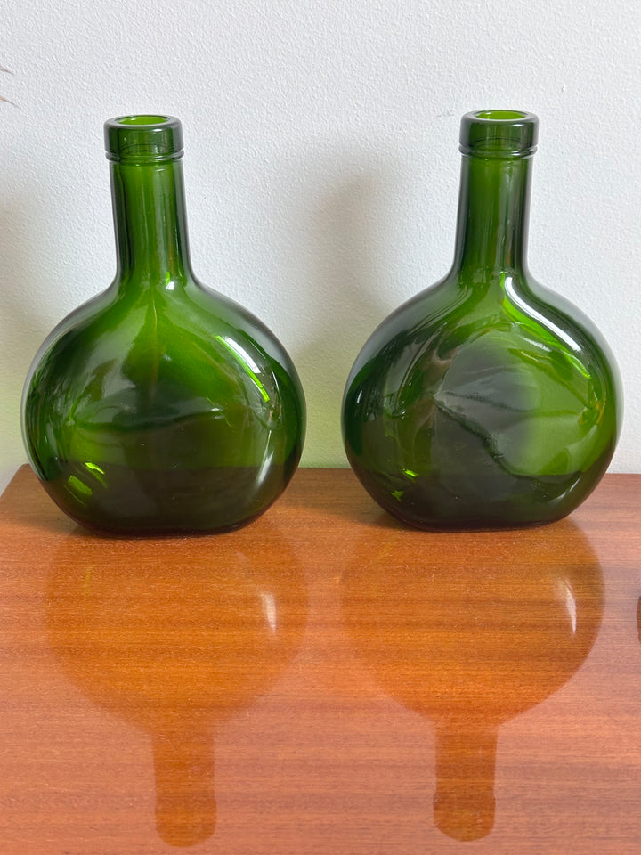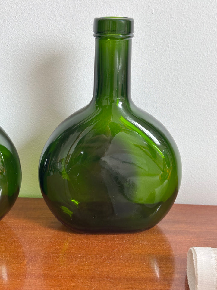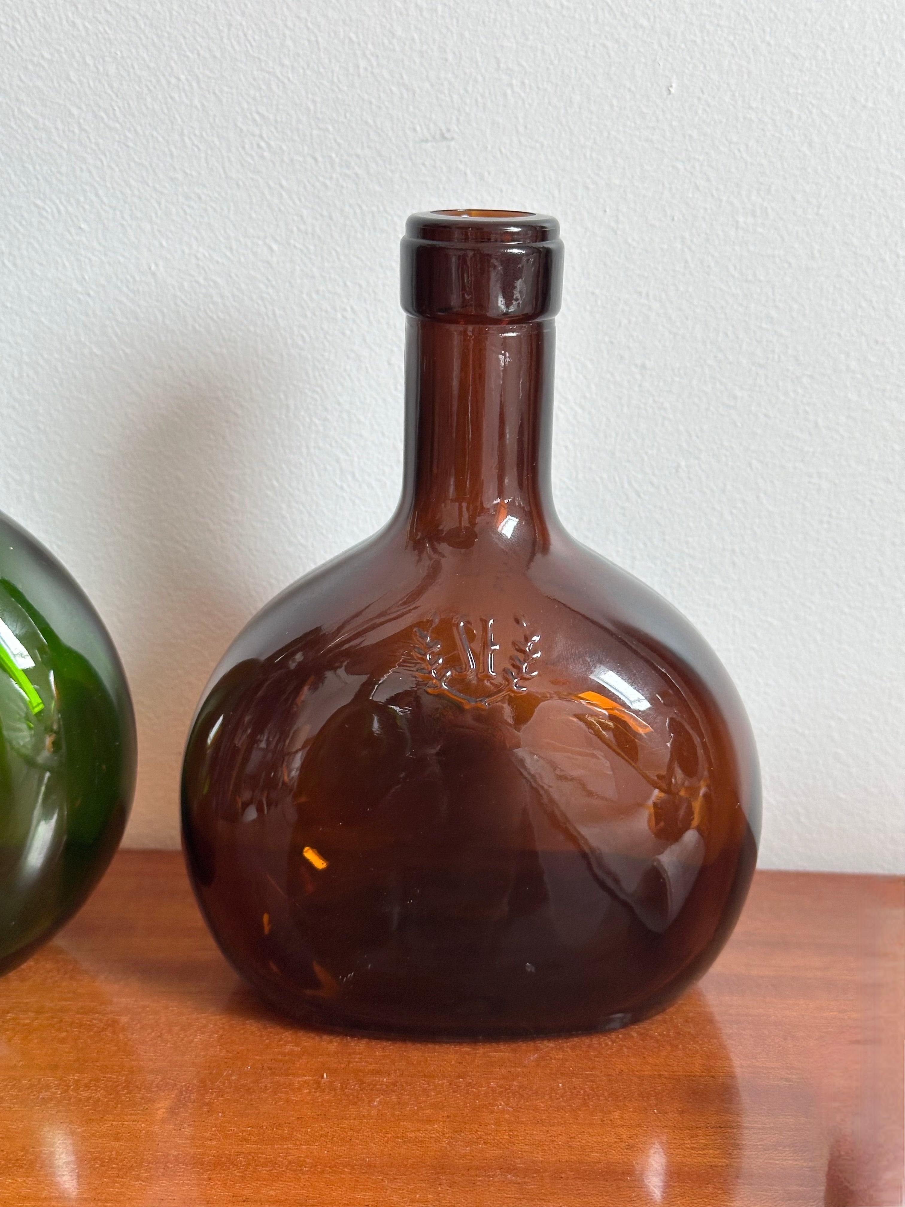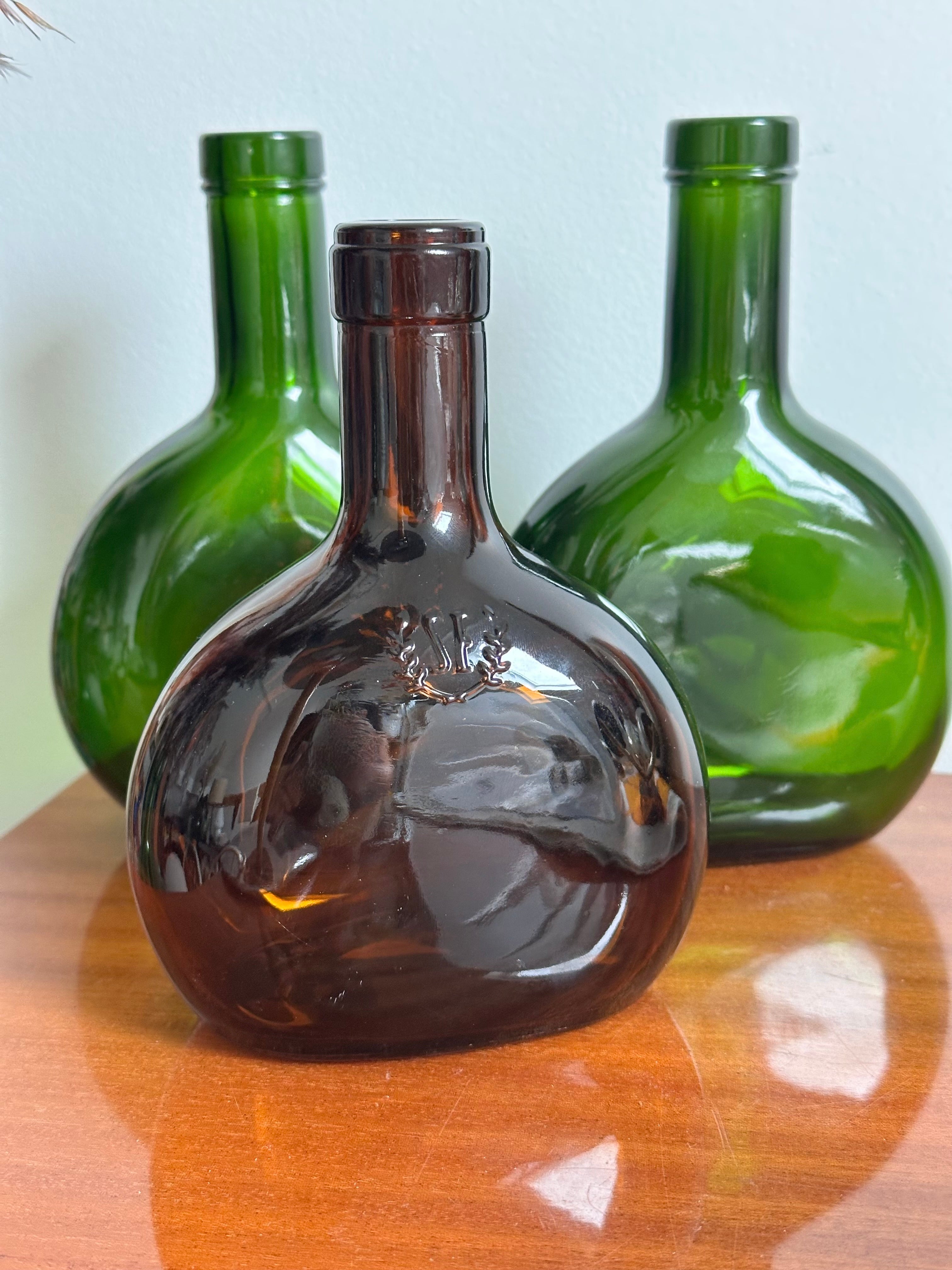 - Ensemble de 3 petites bouteilles vintage aux couleurs chaudes qui pourront servir de soliflore ou simplement de déco parmi d'autres à côté d'un miroir par exemple, le papi chez qui nous les avons chinées s'en servait pour ses liqueurs d'époque...