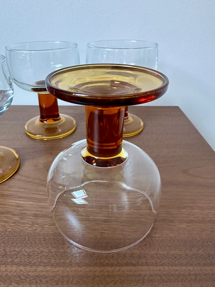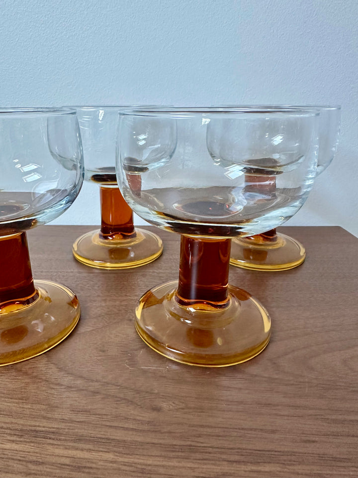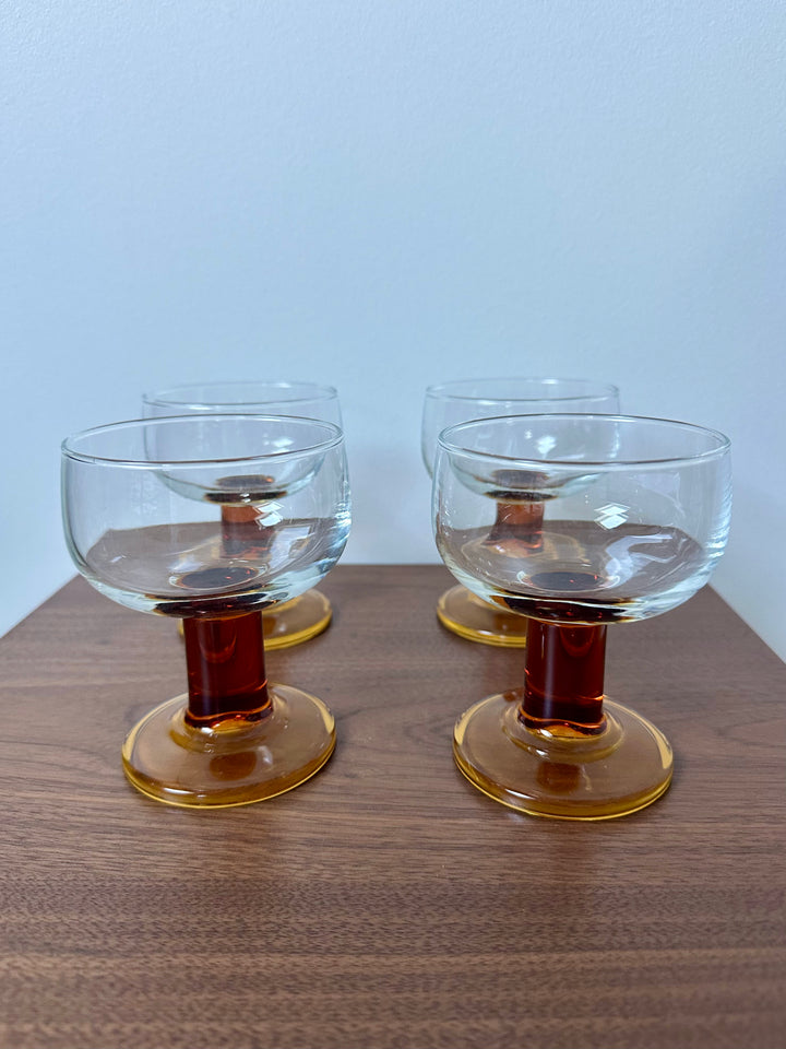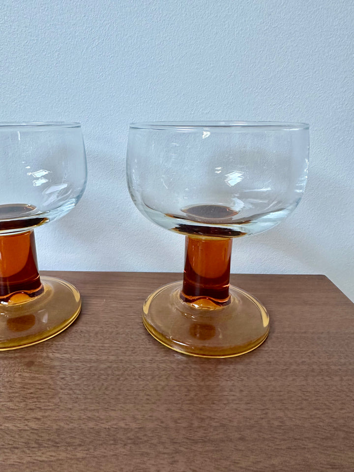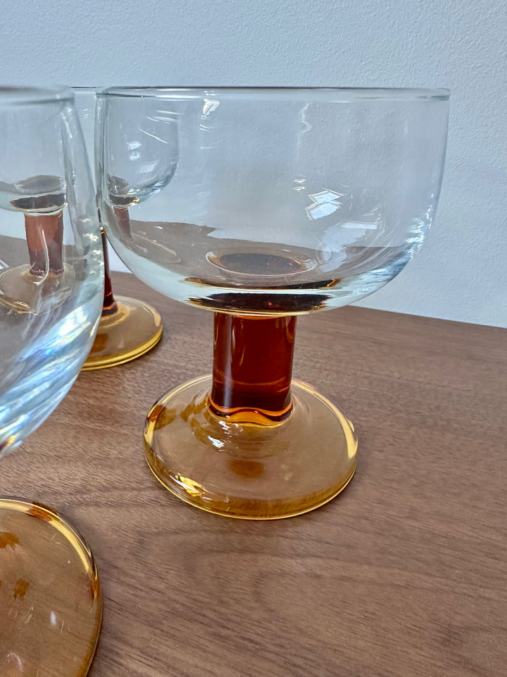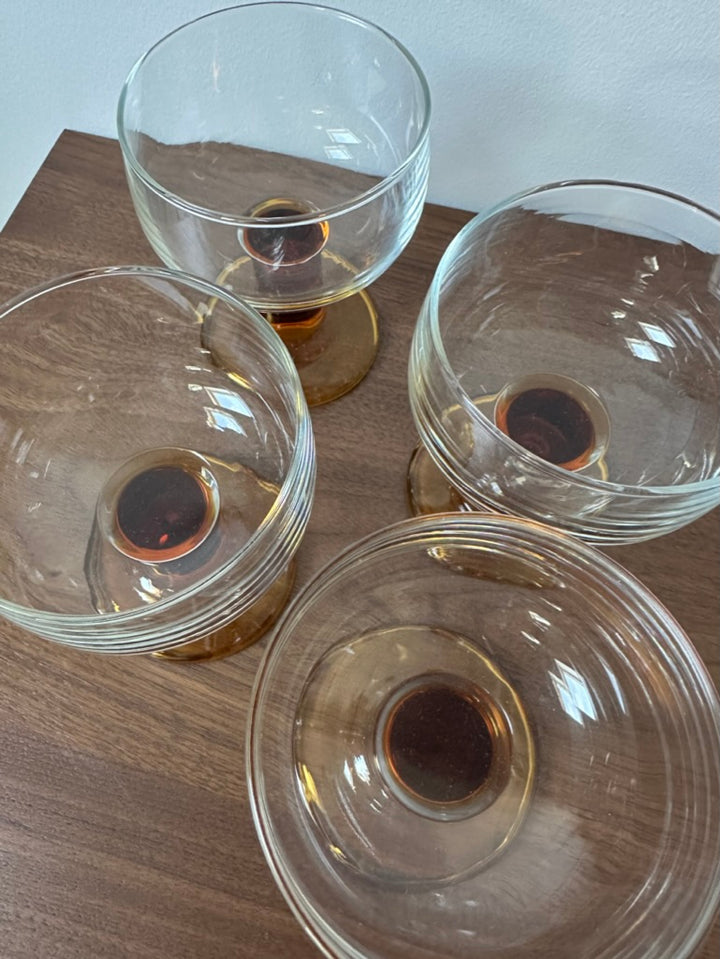 - 4 coupes à dessert en verre des années 80, idéales pour servir vos glaces ou salades de fruits, le pied assez épais apporte de l'originalité tout en étant unique