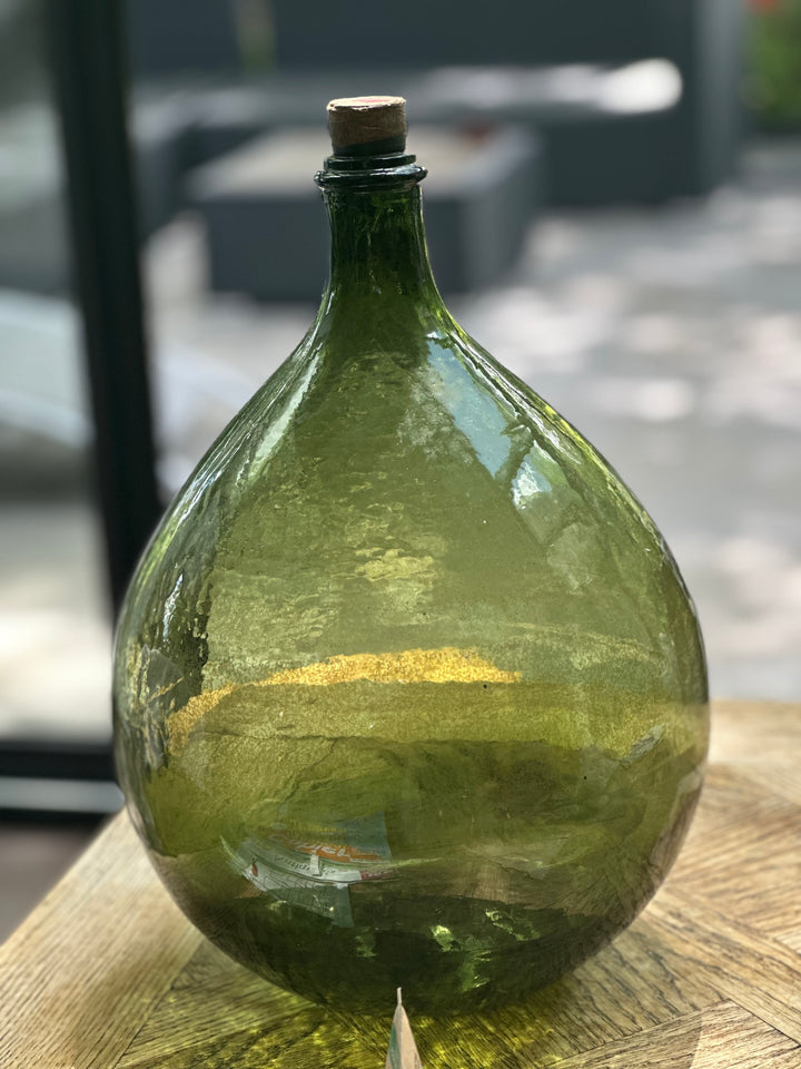 - Dame Jeanne verte chinée lors d'une brocante dans un petit village en Dordogne