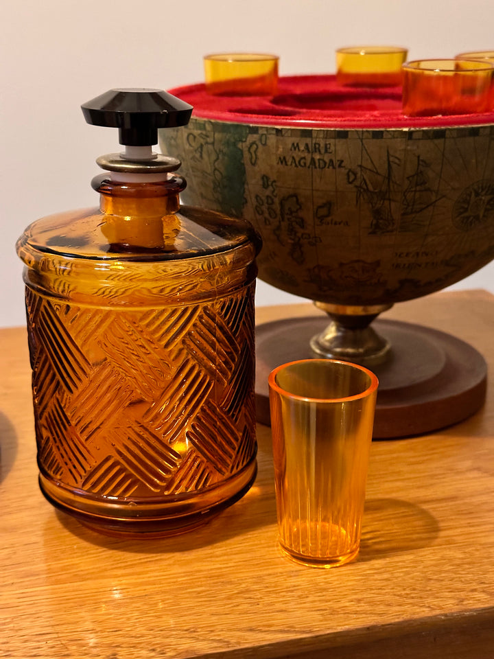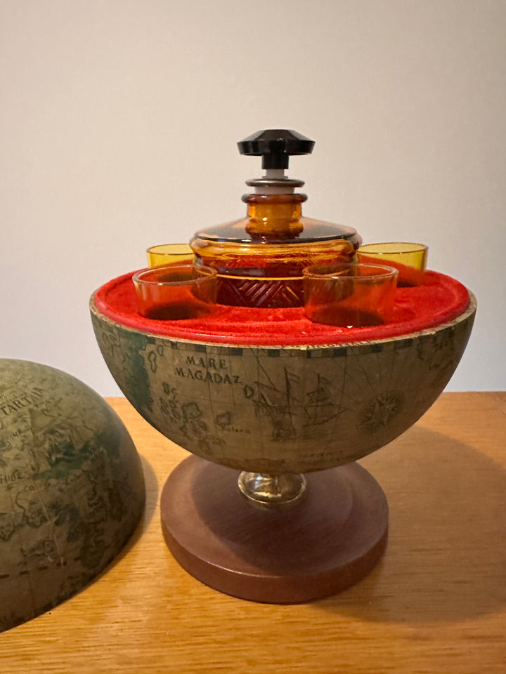 - Petit globe terrestre mini bar avec ses 5 petits verres et une petite bouteille à liqueur