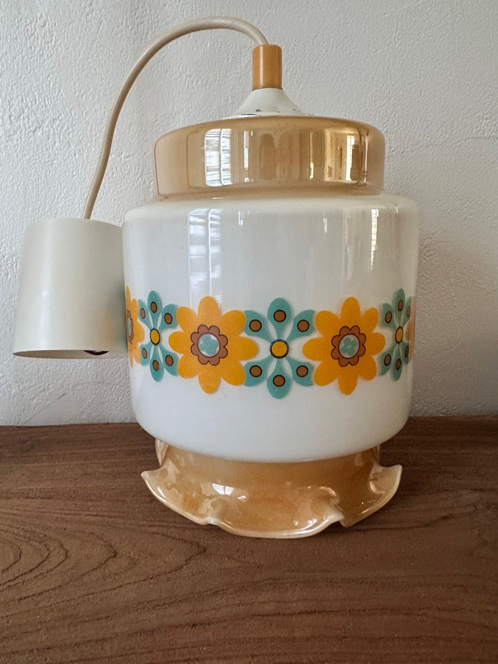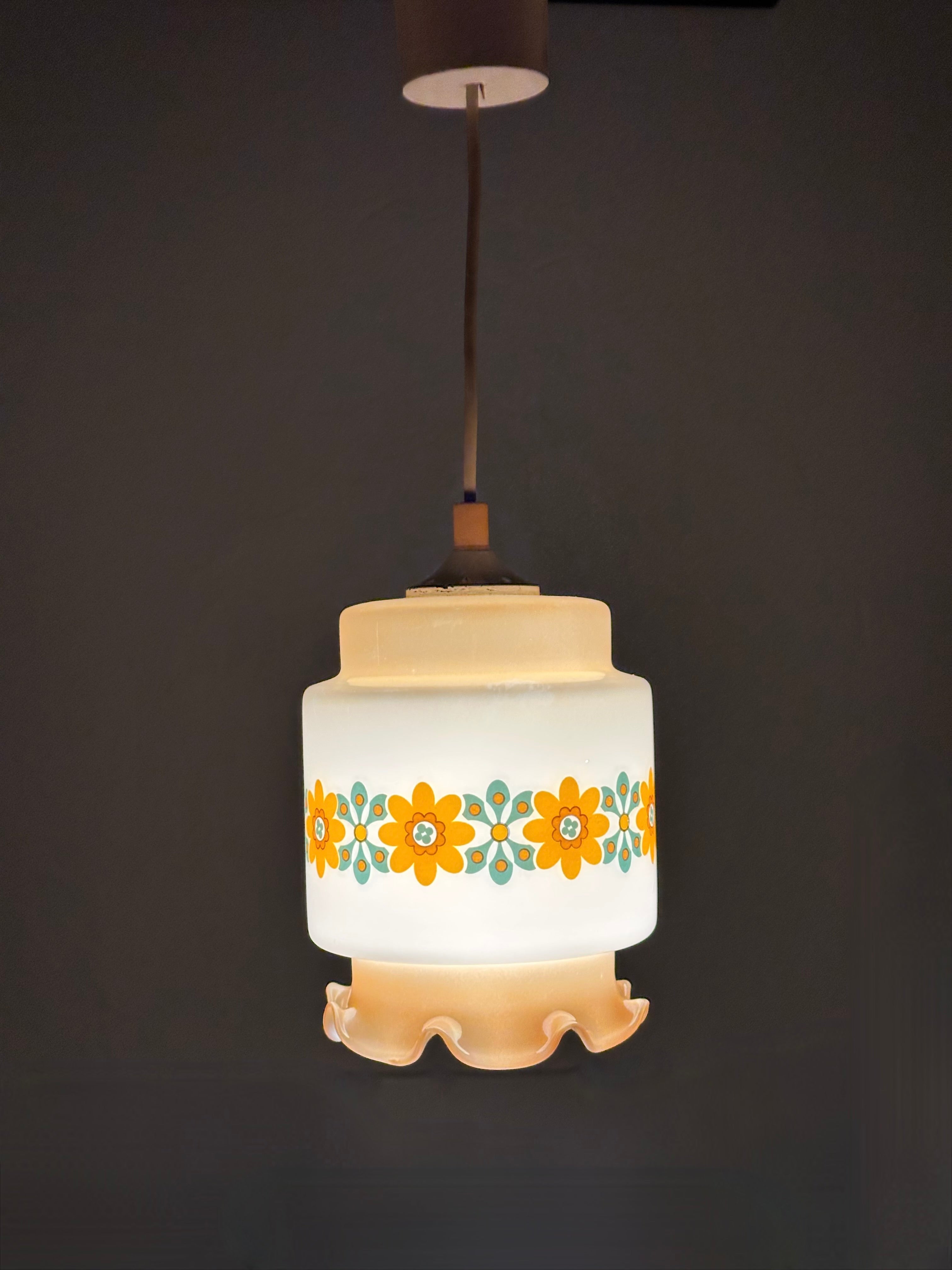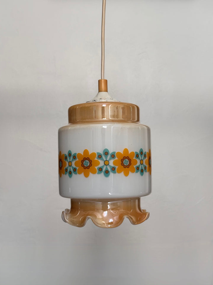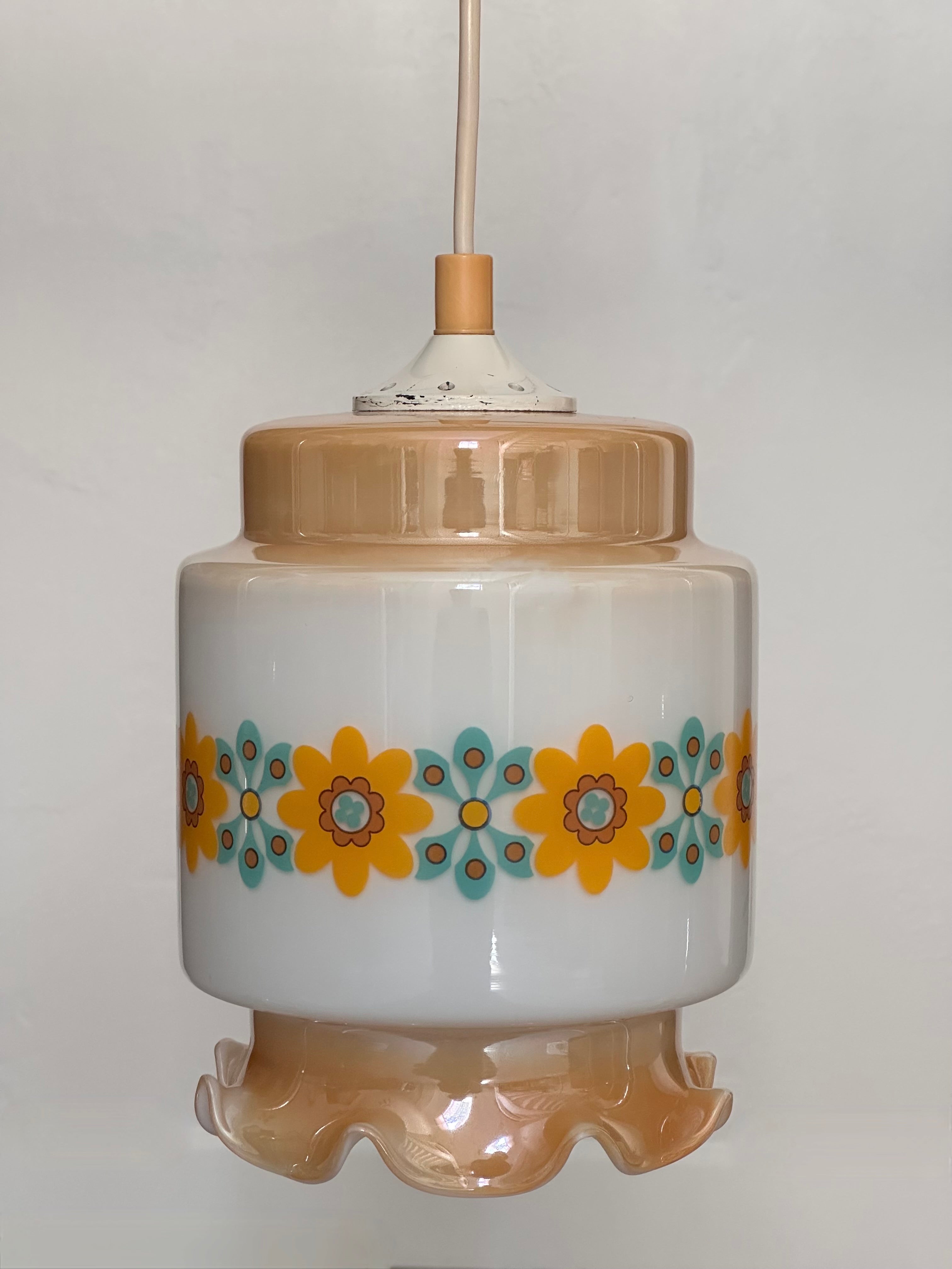 - Coup de coeur pour ce joli luminaire qui apportera une touche vintage à votre plafond, un peu nacré, aux couleurs seventies, parfait pour une déco rétro