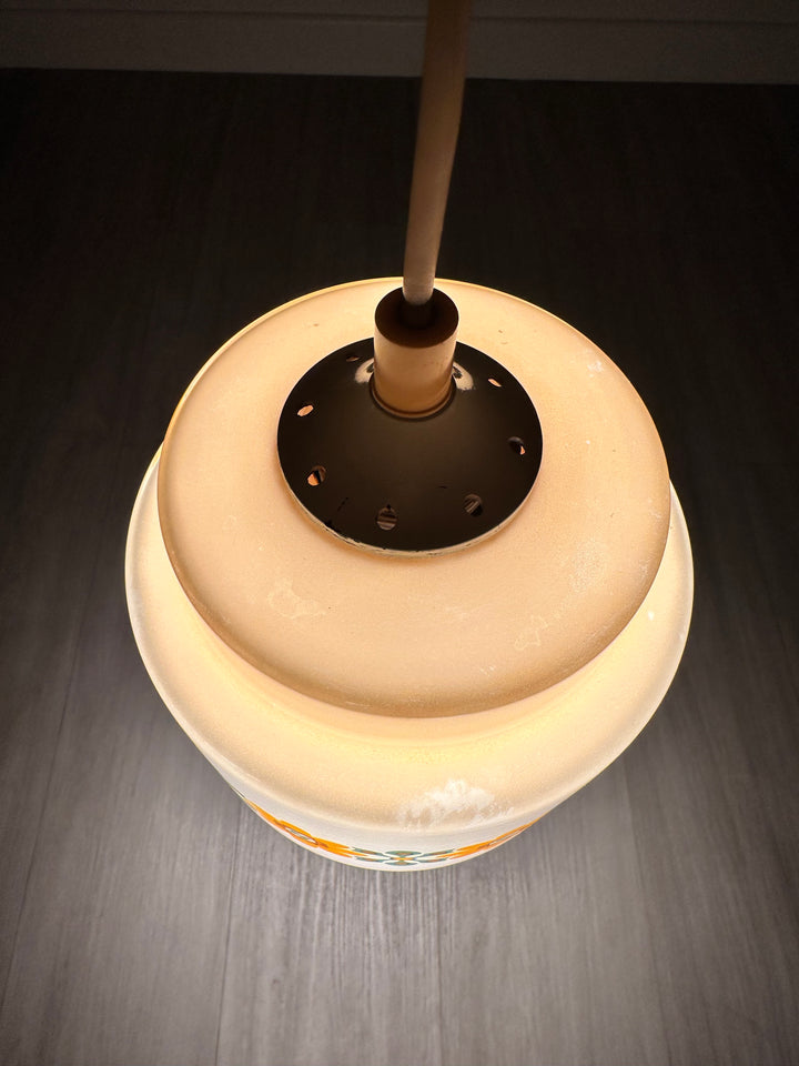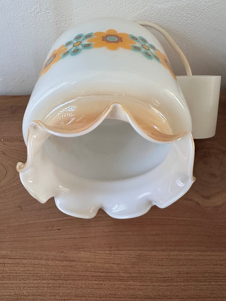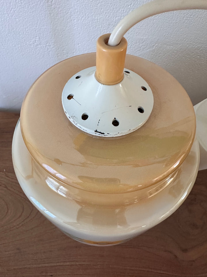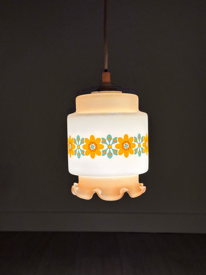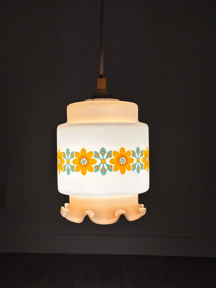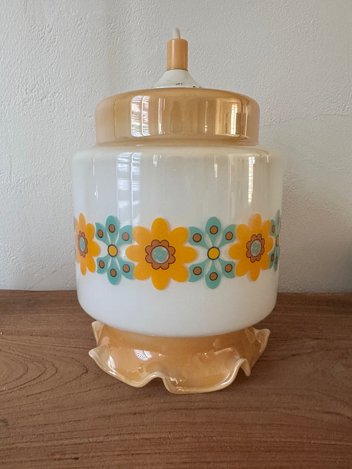 - Coup de coeur pour ce joli luminaire qui apportera une touche vintage à votre plafond, un peu nacré, aux couleurs seventies, parfait pour une déco rétro