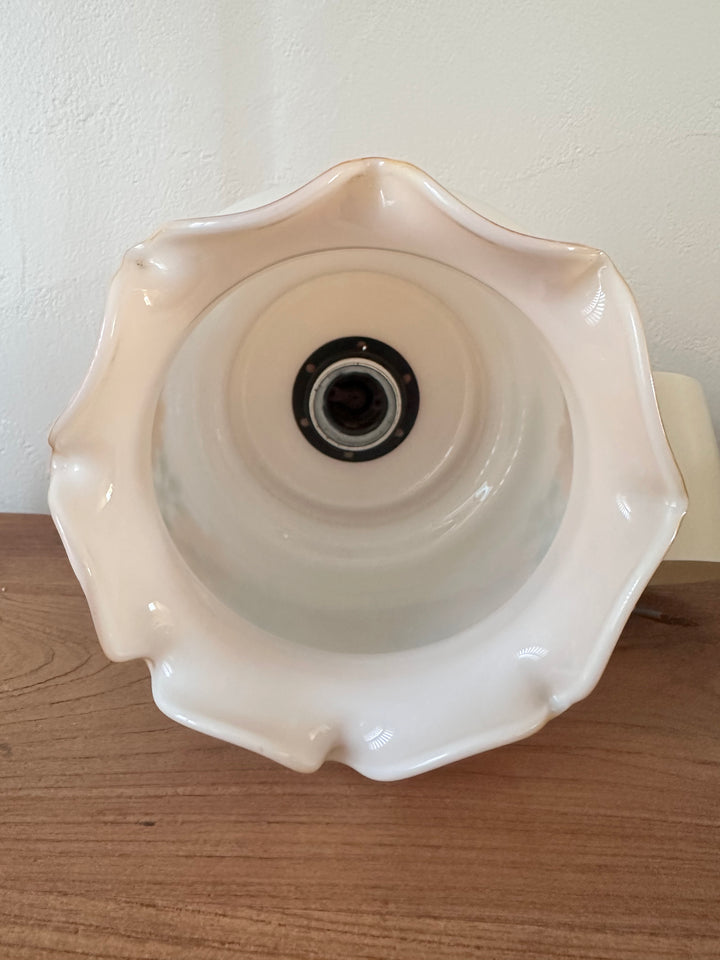 - Malgré son bon état Il a un léger manque de couleur visible sur les 2 dernières photos, ainsi que sur le haut du pavillon, pas d'éclats ni d'ébréchures - Vendu avec son ampoule