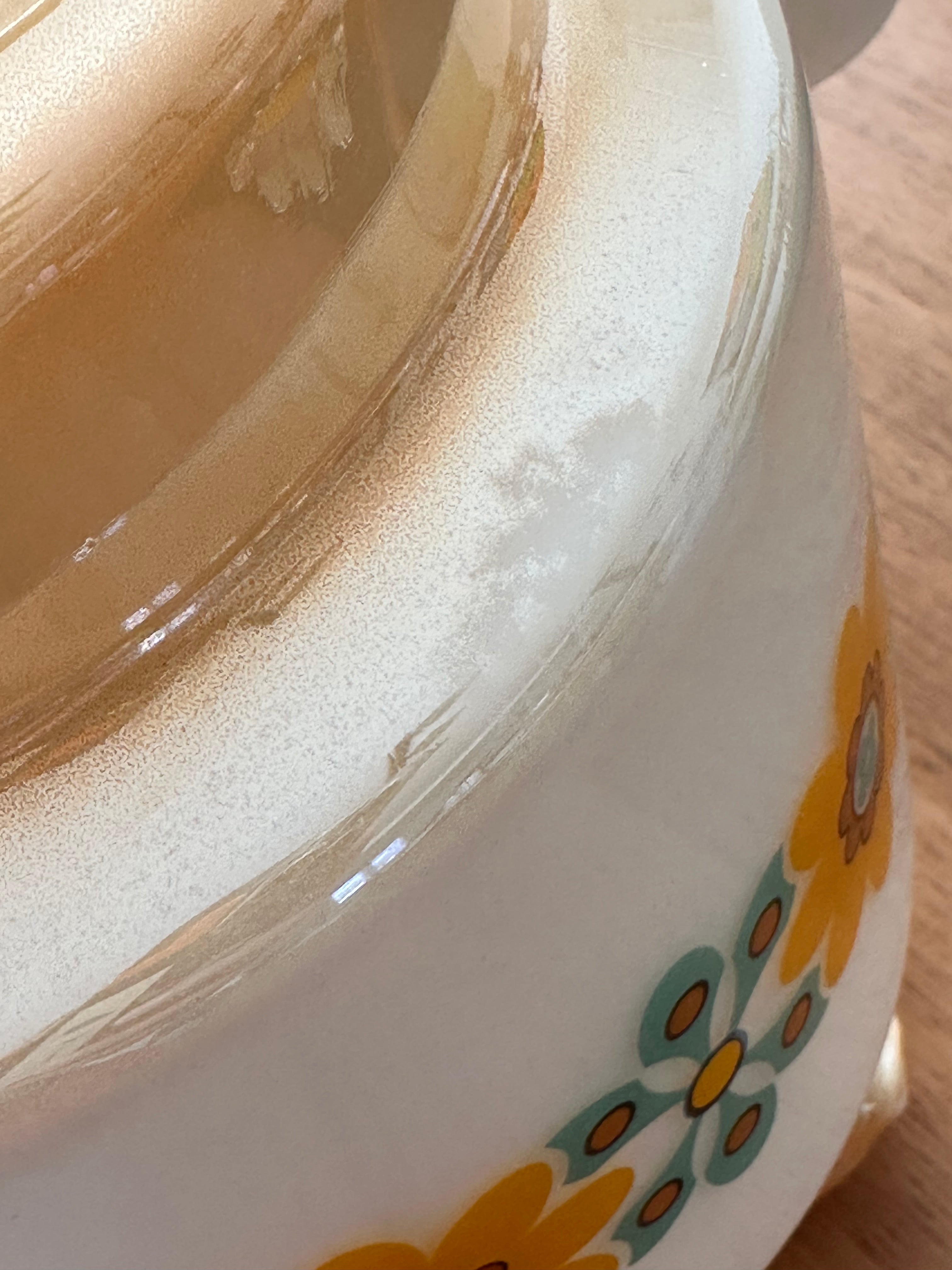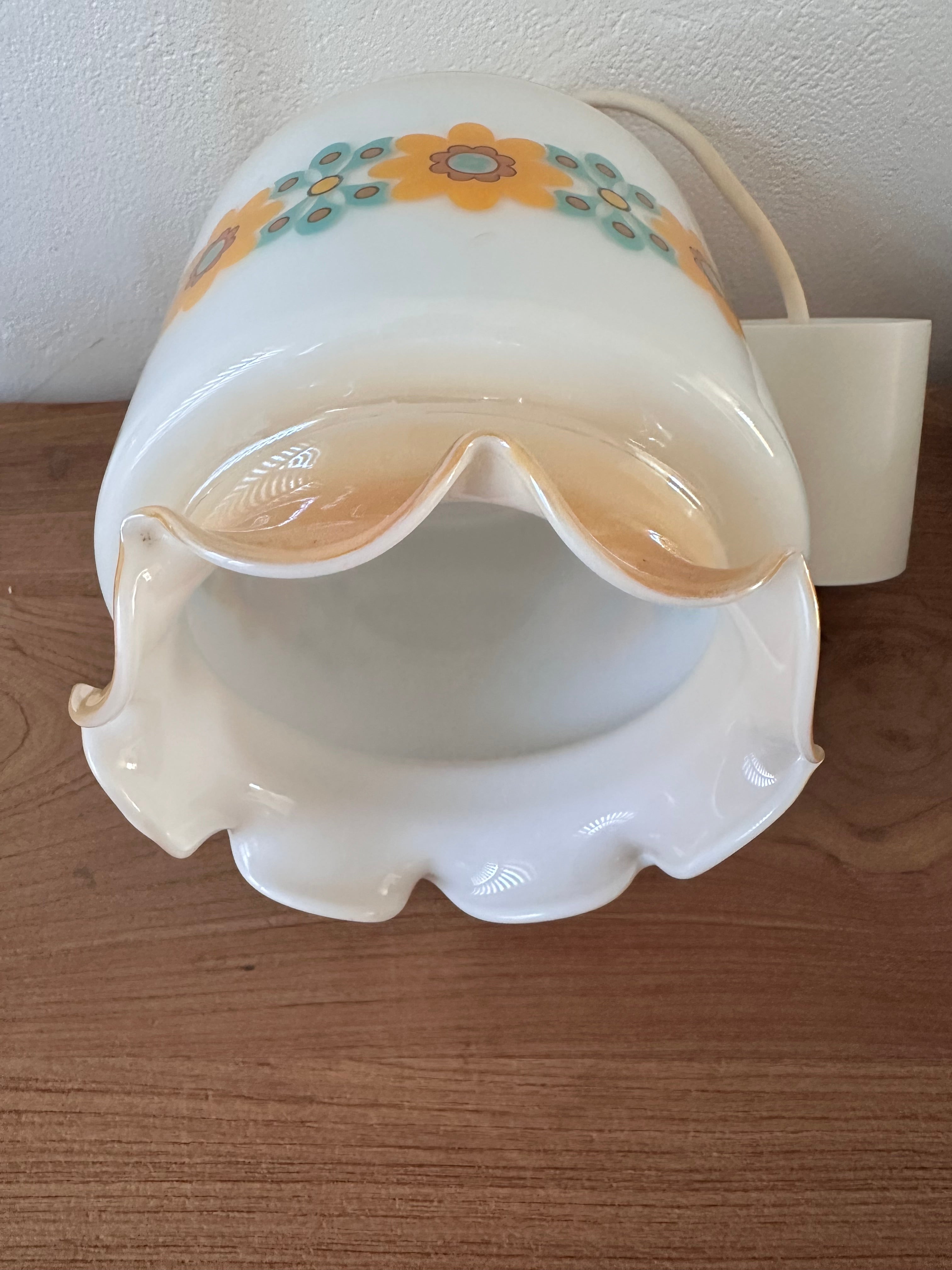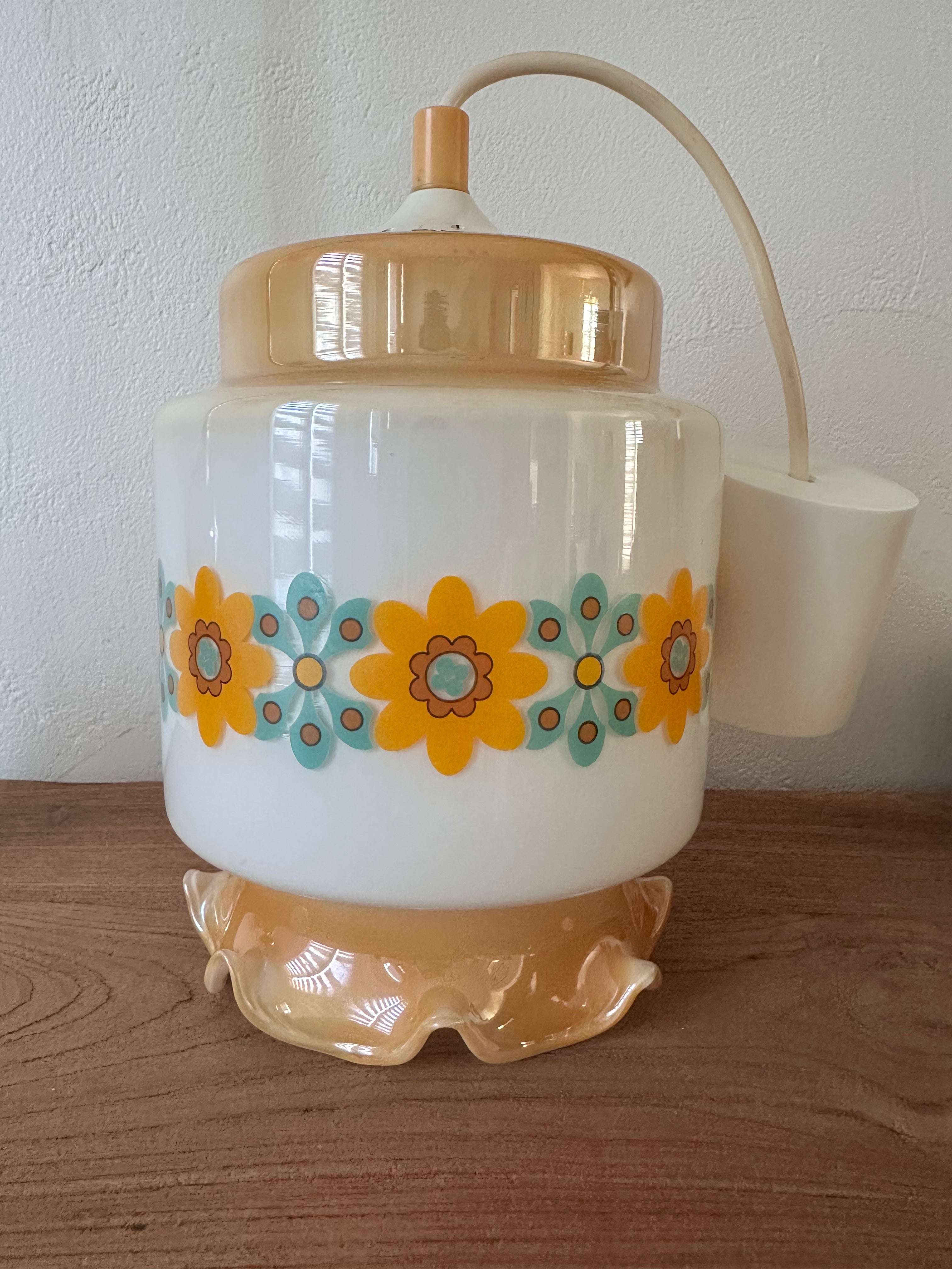 - Sa forme rappelant celle des méduses et son décor floral ont été un coup de coeur lors d'un vide-maison, il ne demande qu'à trouver un nouveau logis après tant d'années passées accroché dans la cuisine du Papy