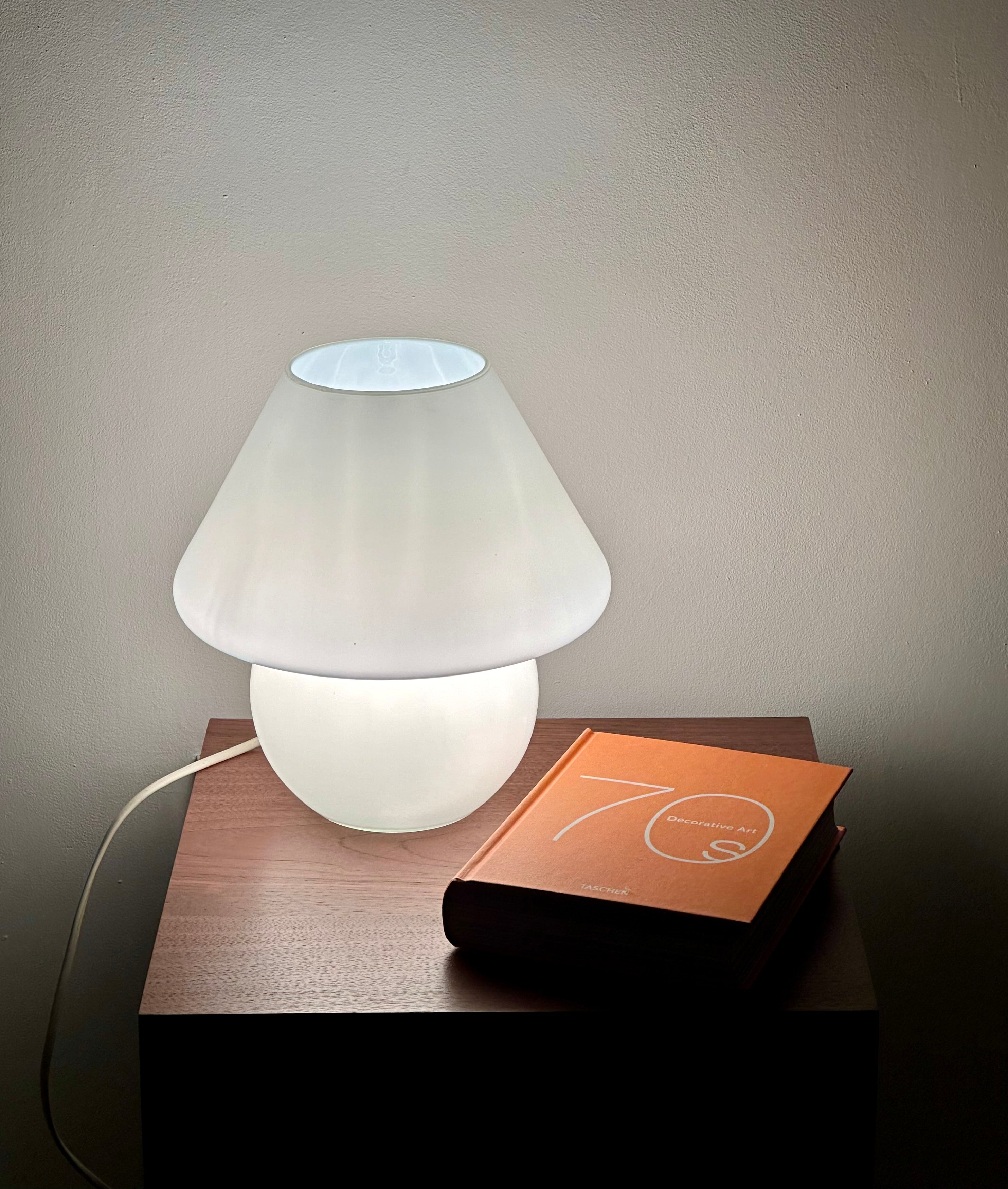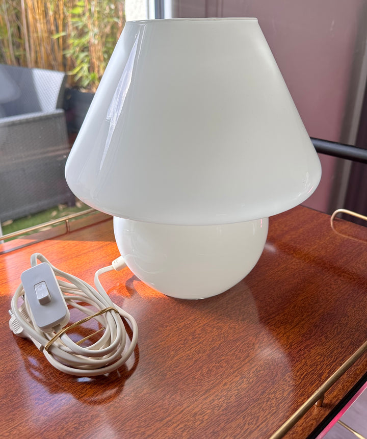 - Lampe de table en verre opalin blanc au style Murano des années 80, elle apportera une touche originale et unique à votre intérieur