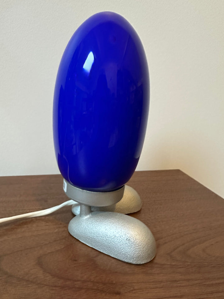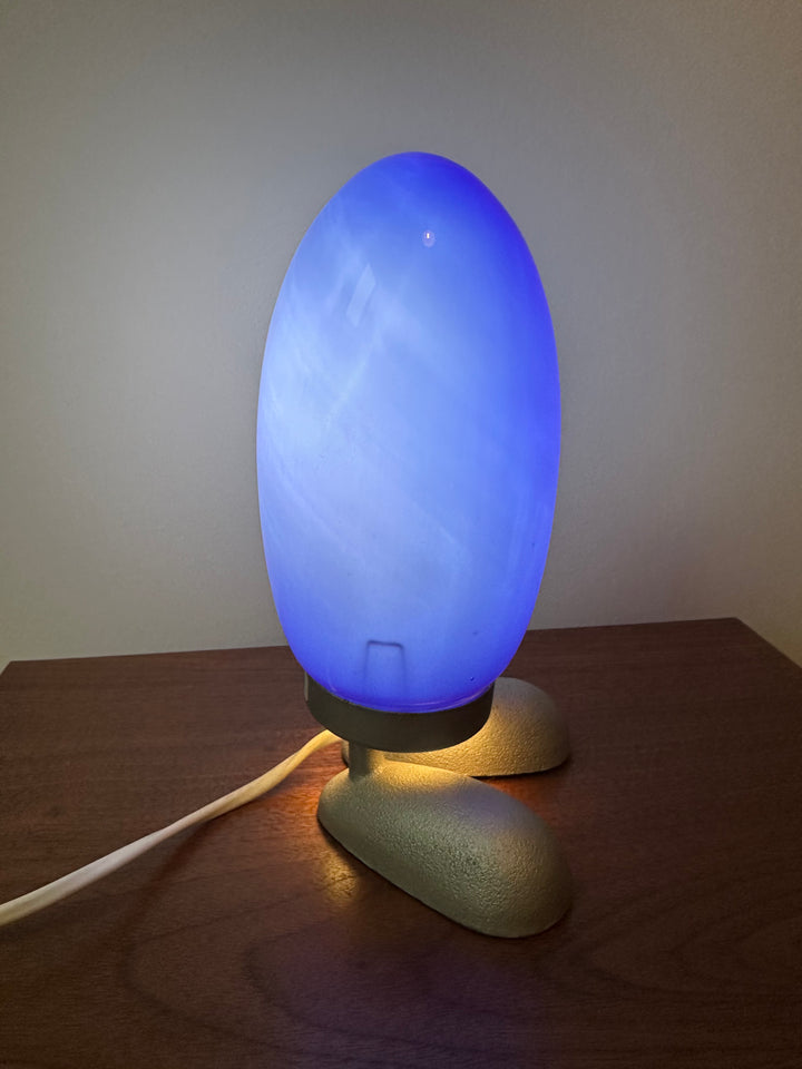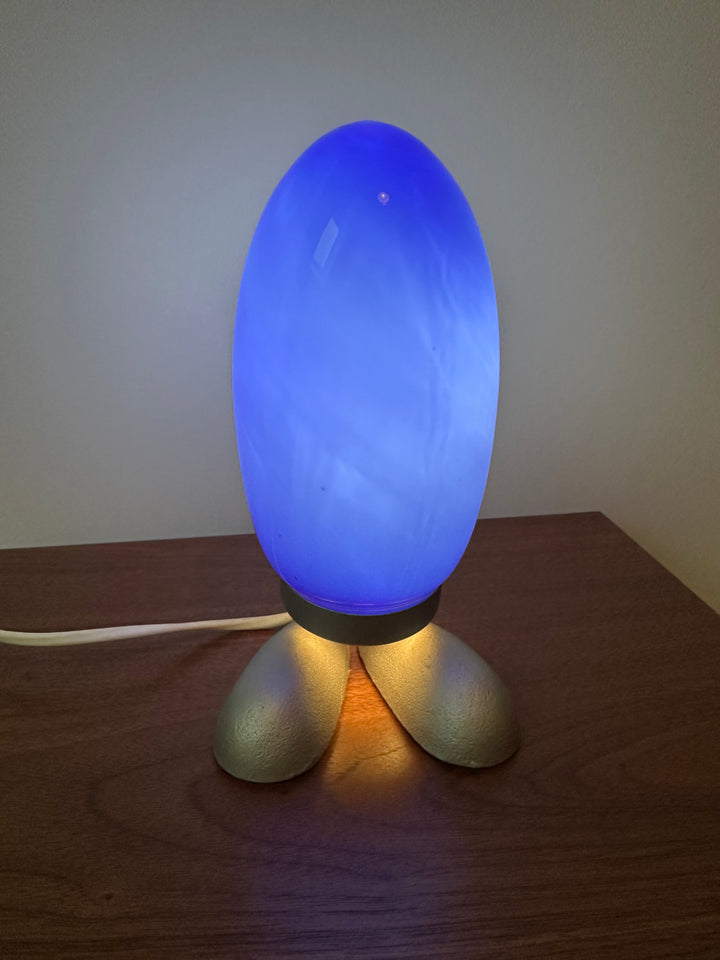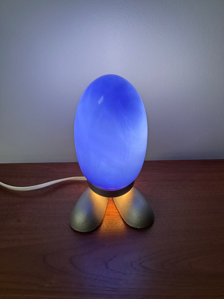 - Lampe veilleuse oeuf dino en verre posé sur pieds au design très moderne