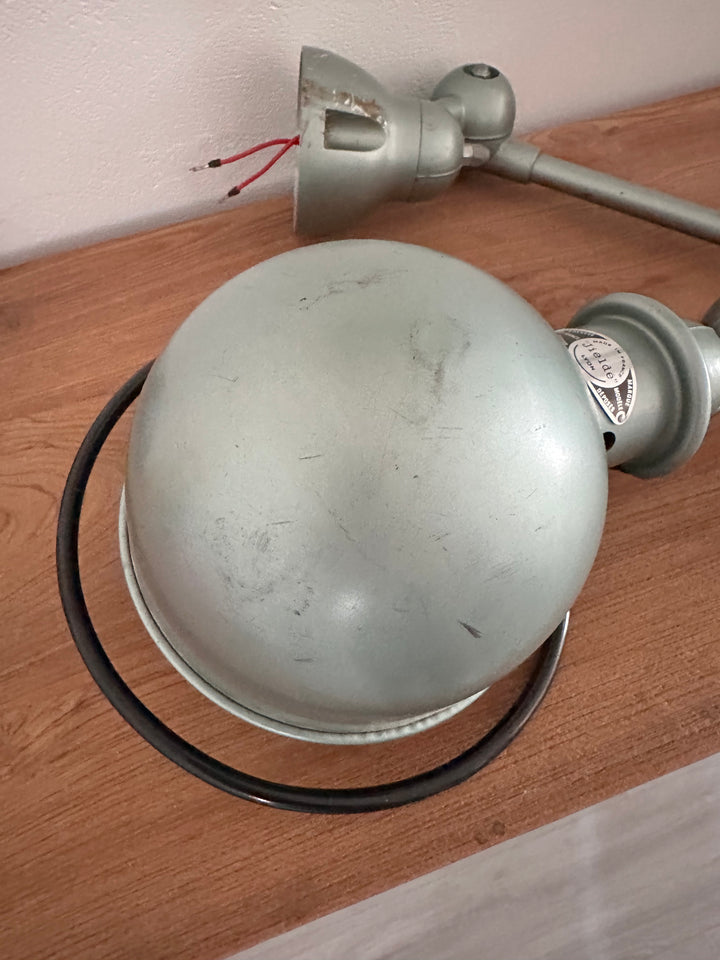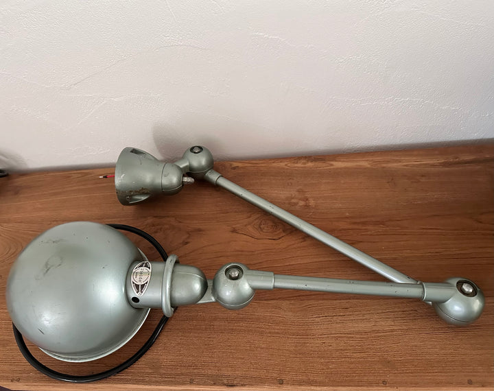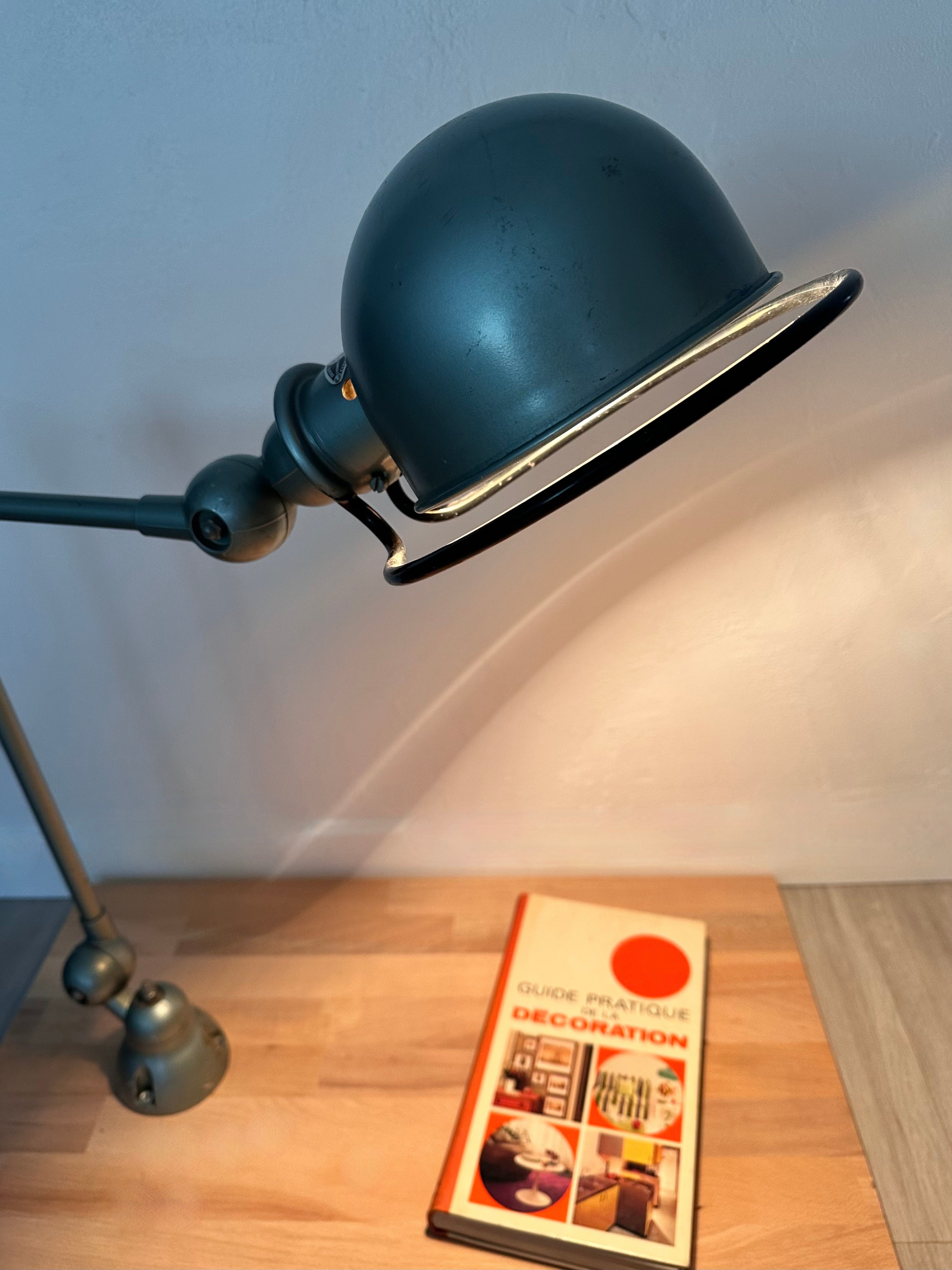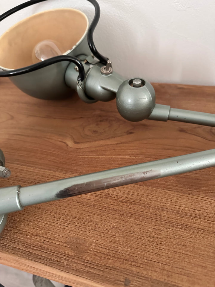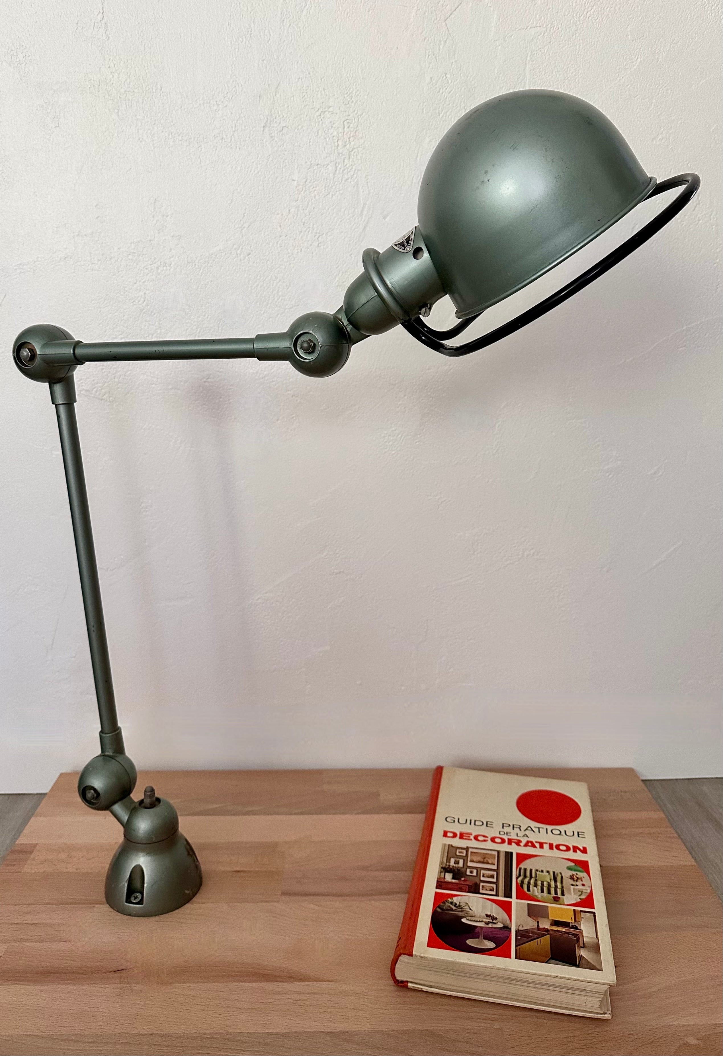 - Magnifique lampe Jieldé, 2 bras, datant d'avant les années 80 selon sa plaque rivetée d'origine, elle a passé sa vie dans l'atelier d'un Papy qui en a pris soin, aujourd'hui elle mérite une seconde vie pour décorer un établi, un bureau ou un mur par exemple grâce à sa modulabilité, sa couleur gris vert s'adaptera à tous styles d'intérieur