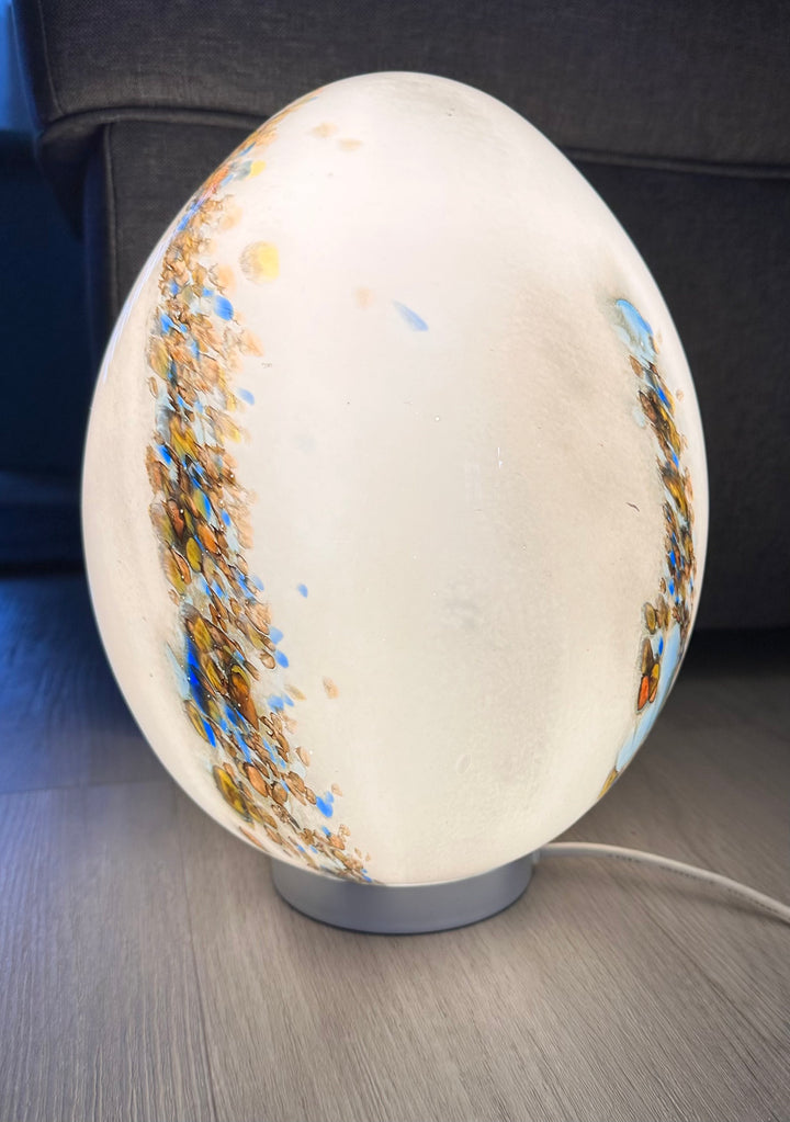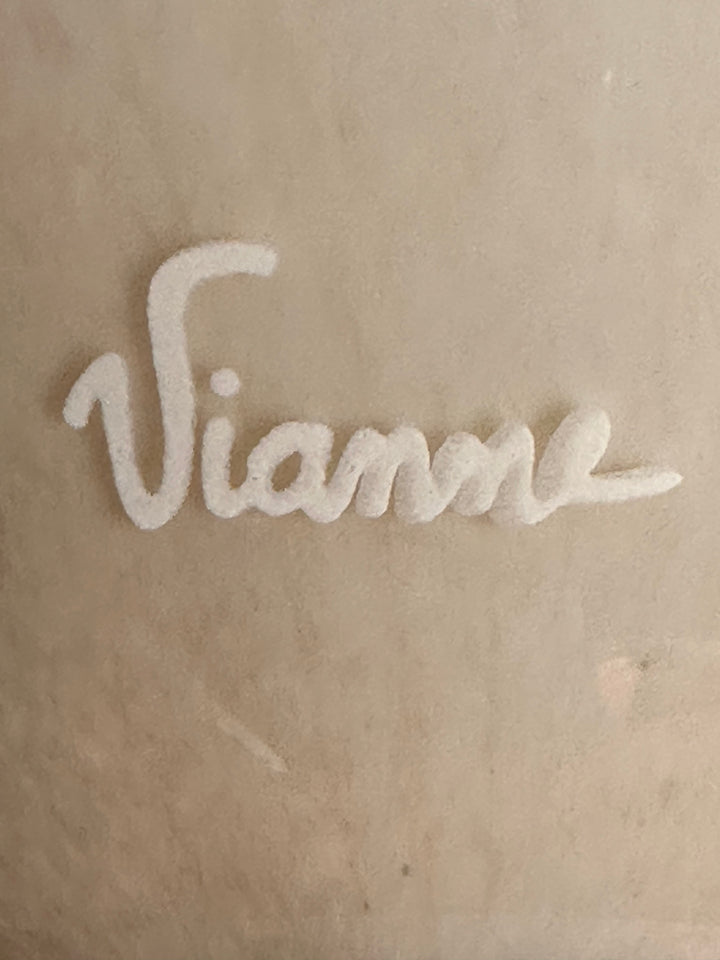 - La signature Vianne est présente en bas de l'oeuf avec l'étiquette Domec sur le dessous du socle