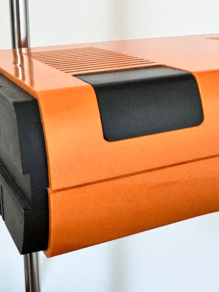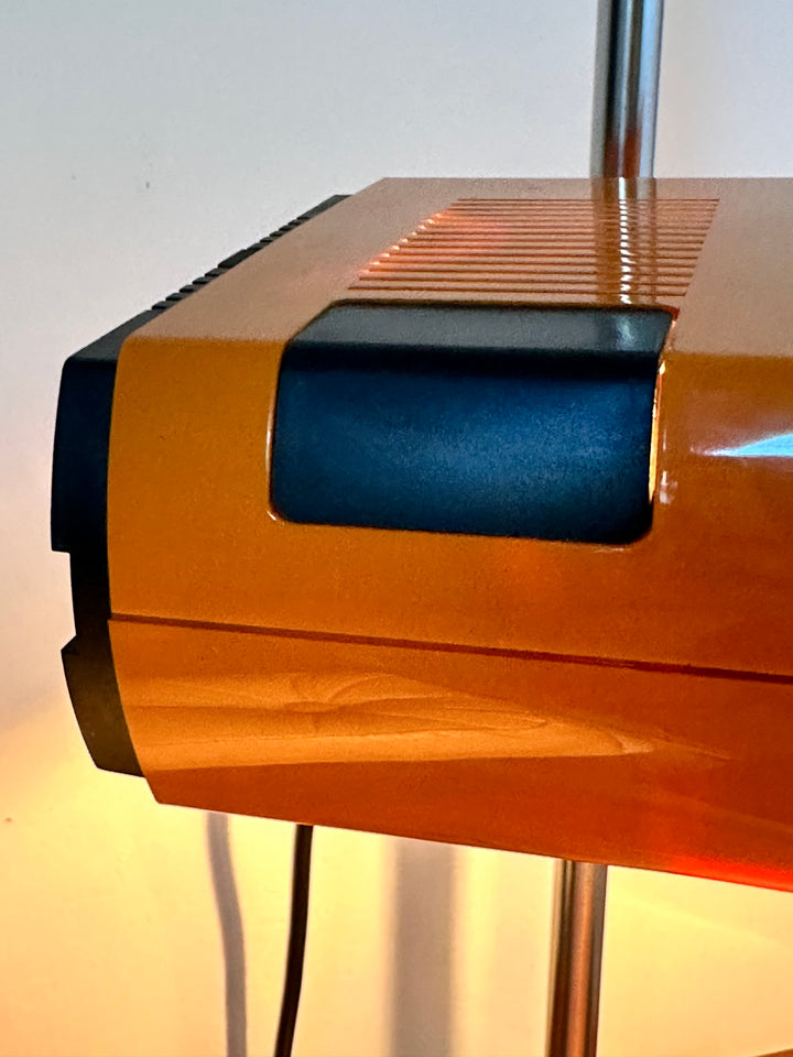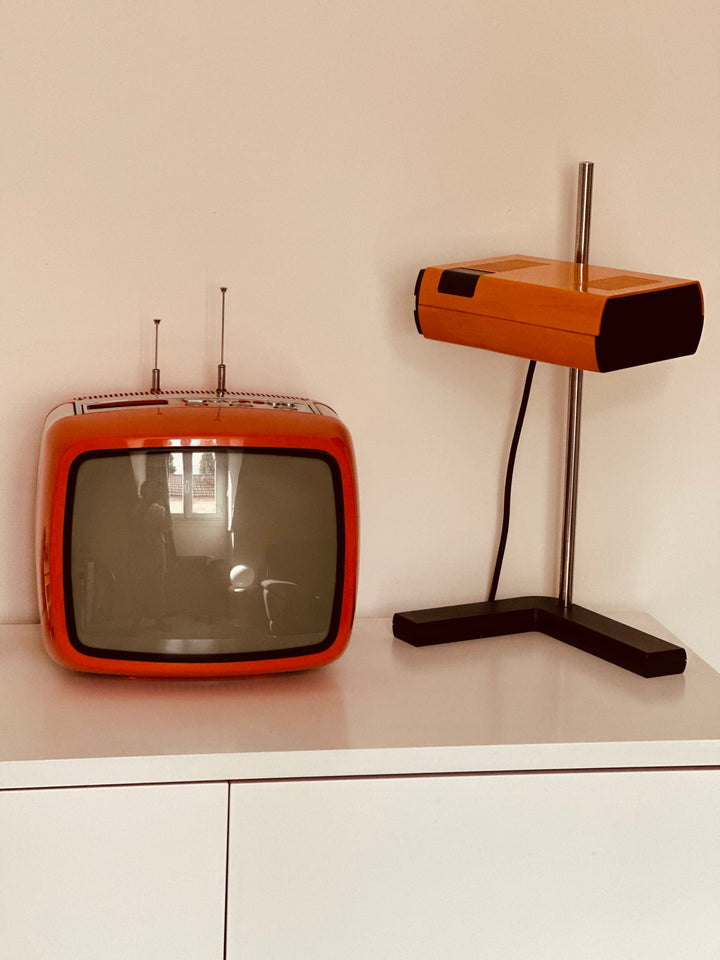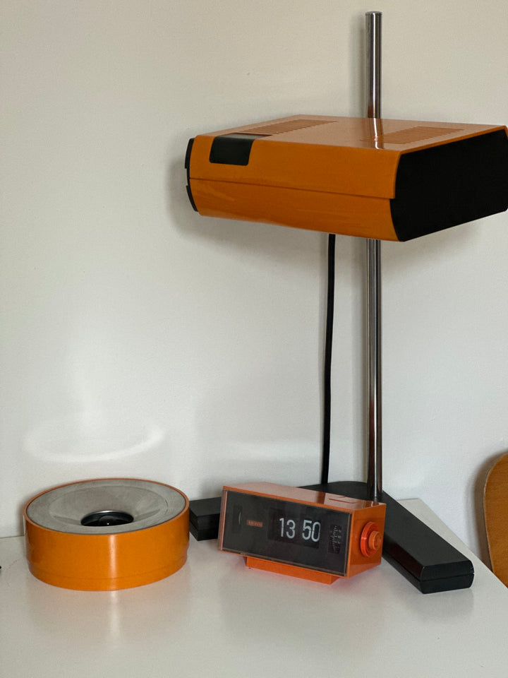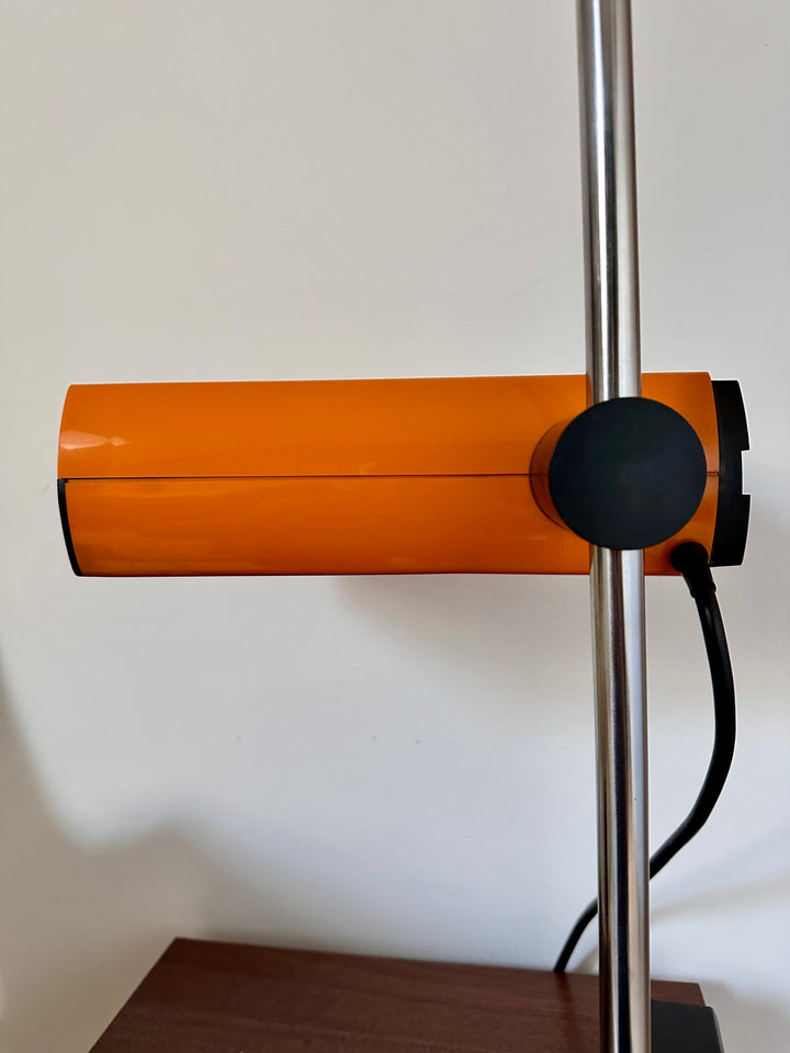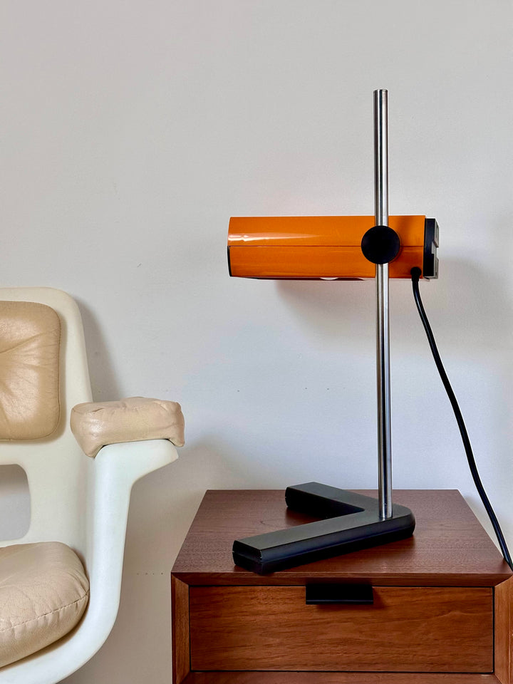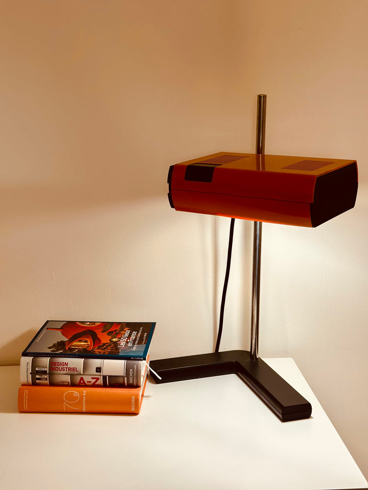 - Lampe de bureau Samp, réglable en hauteur et orientable grâce à son tube métallique, On/Off à l'aide de son bouton poussoir sur le dessus à gauche