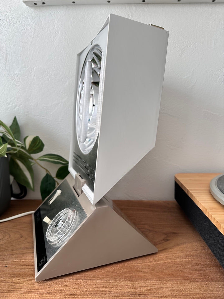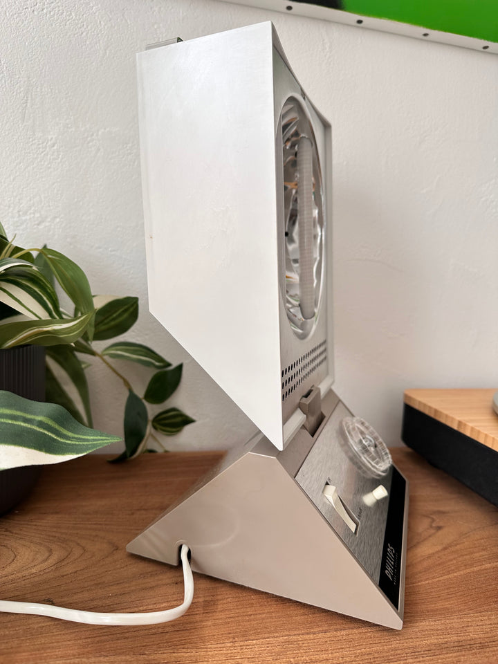 - Son style avant-gardiste rappelle les films des années 70 parlant du futur et ça a été un coup de coeur lors d'un vide-maison dont les propriétaires l'avaient gardée en souvenir ouverte sur un meuble, en très bon état elle mérite une seconde vie