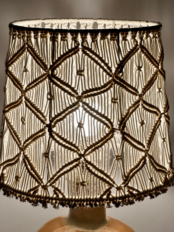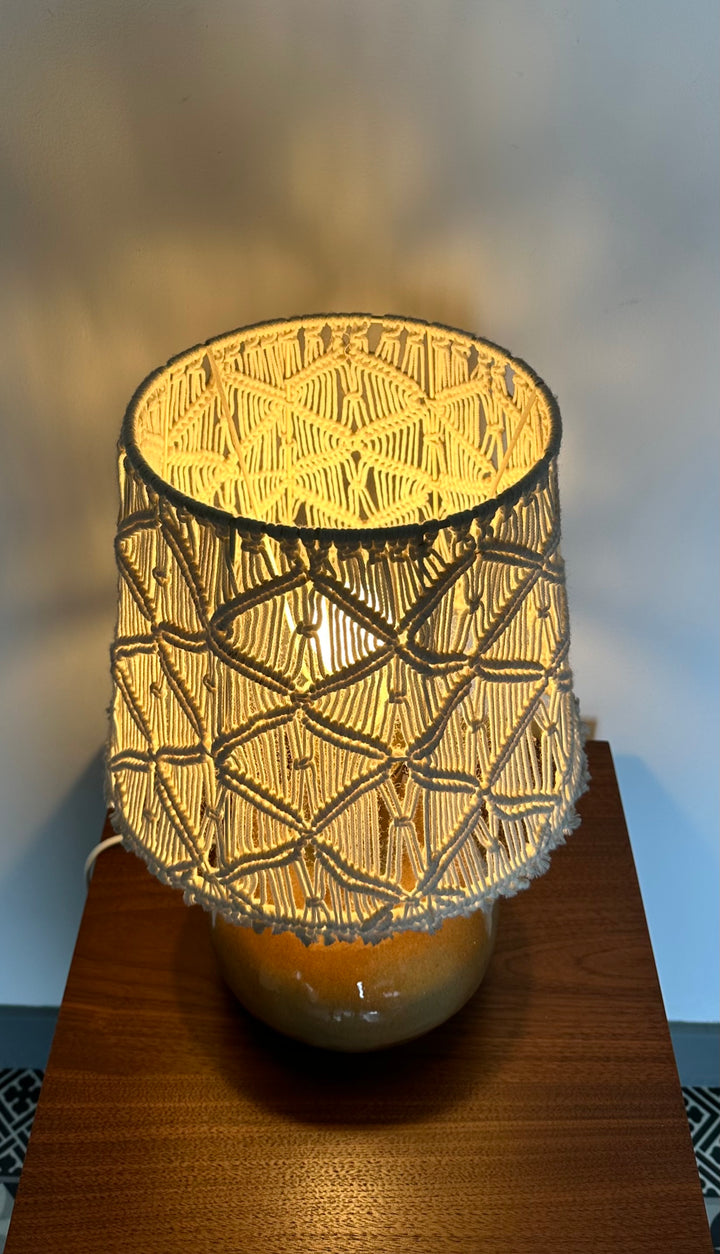 - Lampe de table des années 80, son pied en grés et son abat jour en macramé sont dans la tendance et apportent une touche toute douce à n'importe quelle pièce