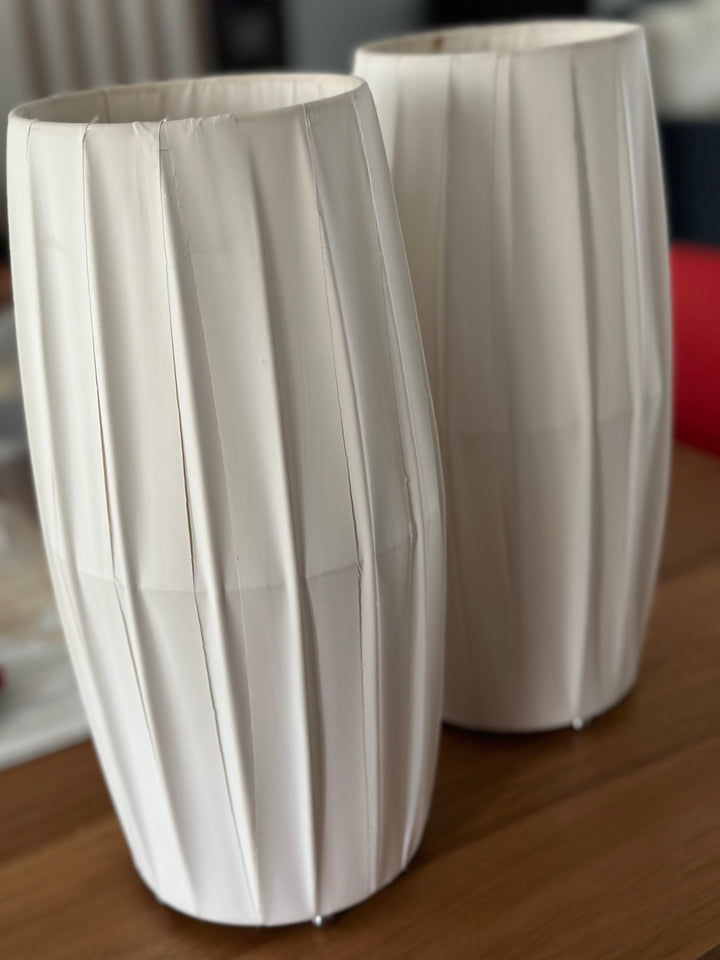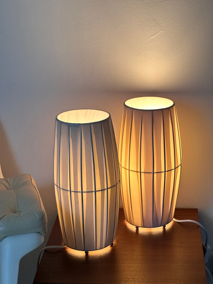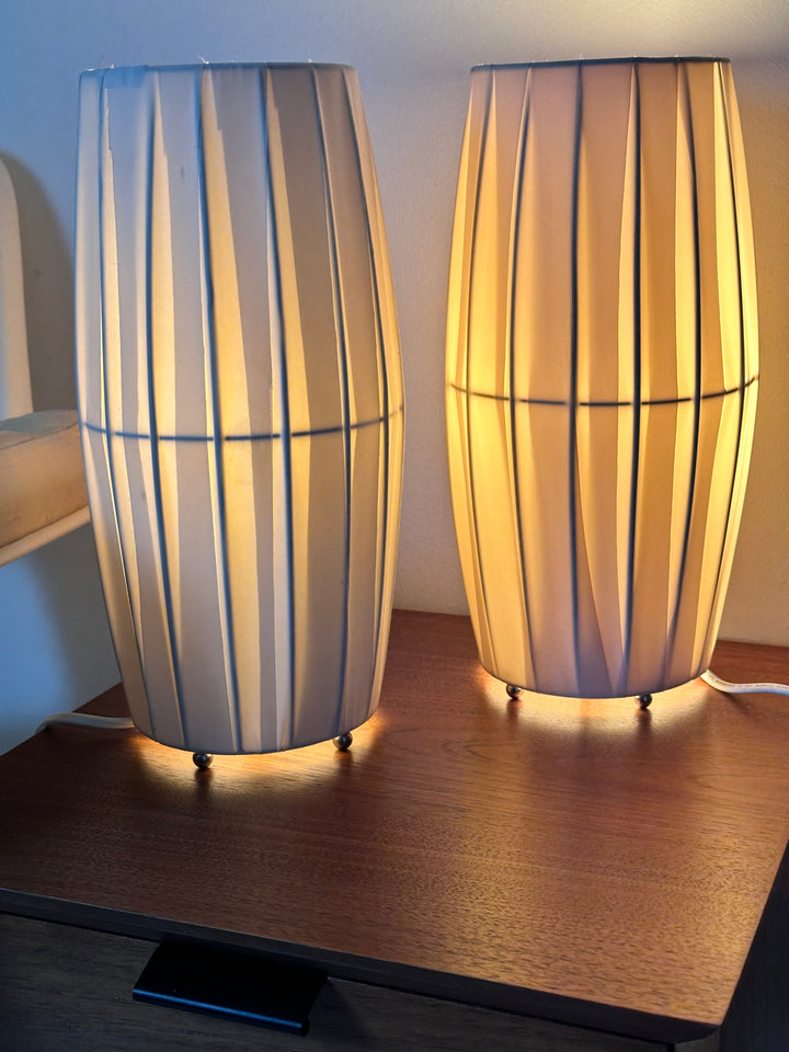 - Ces 2 lampes des années 80 sont composées de bandes de tissu blanc montées sur un socle en alu