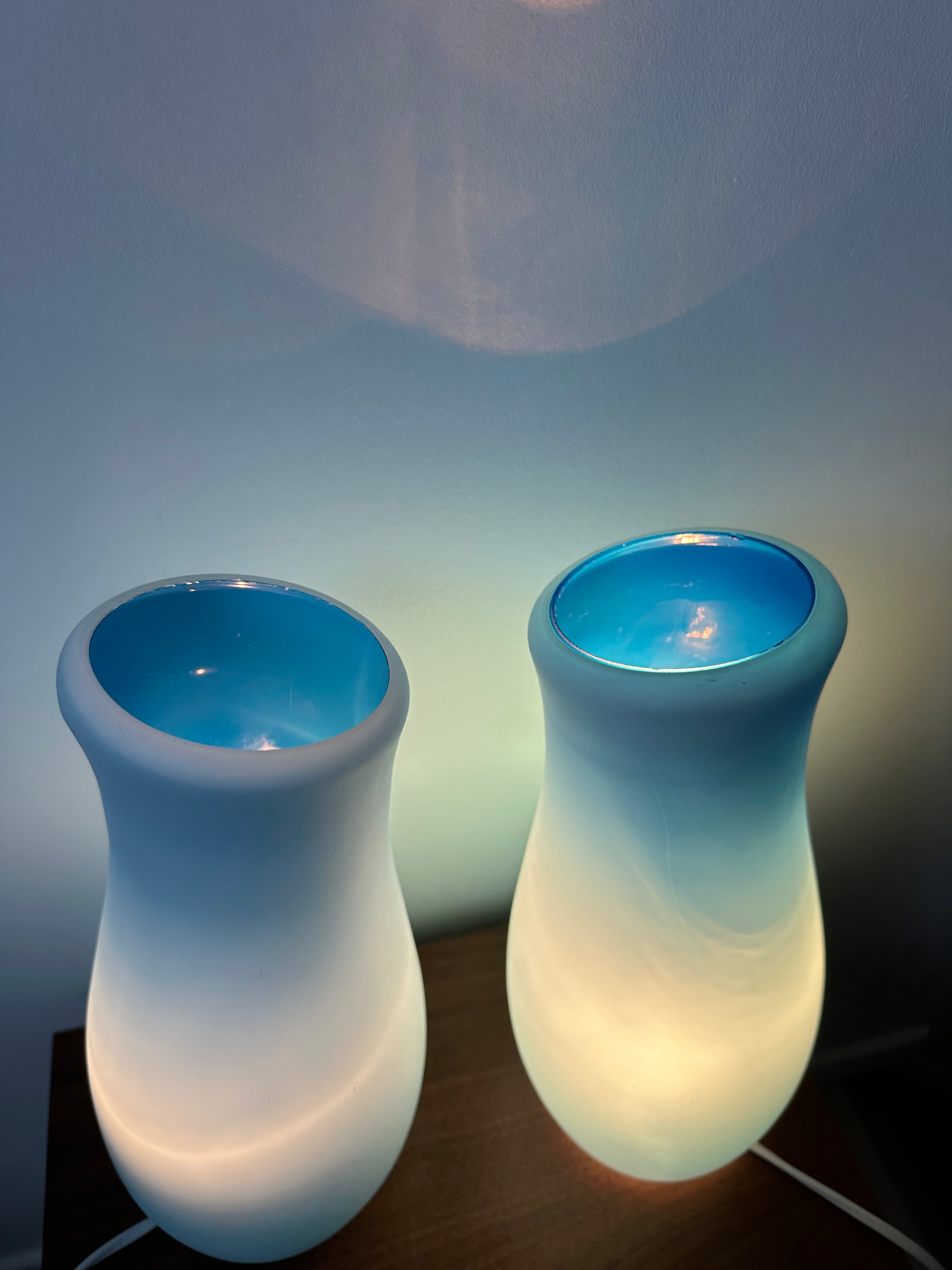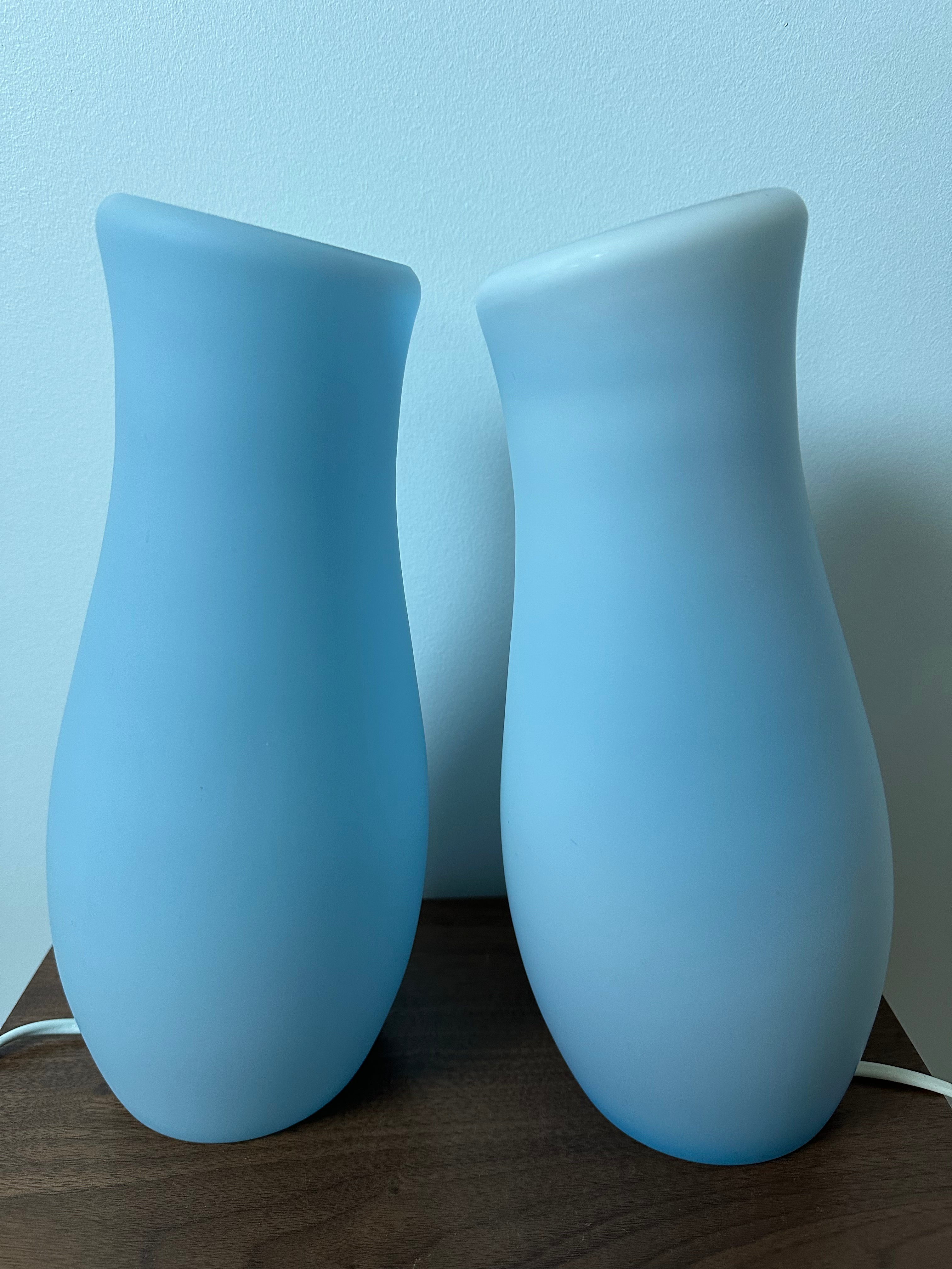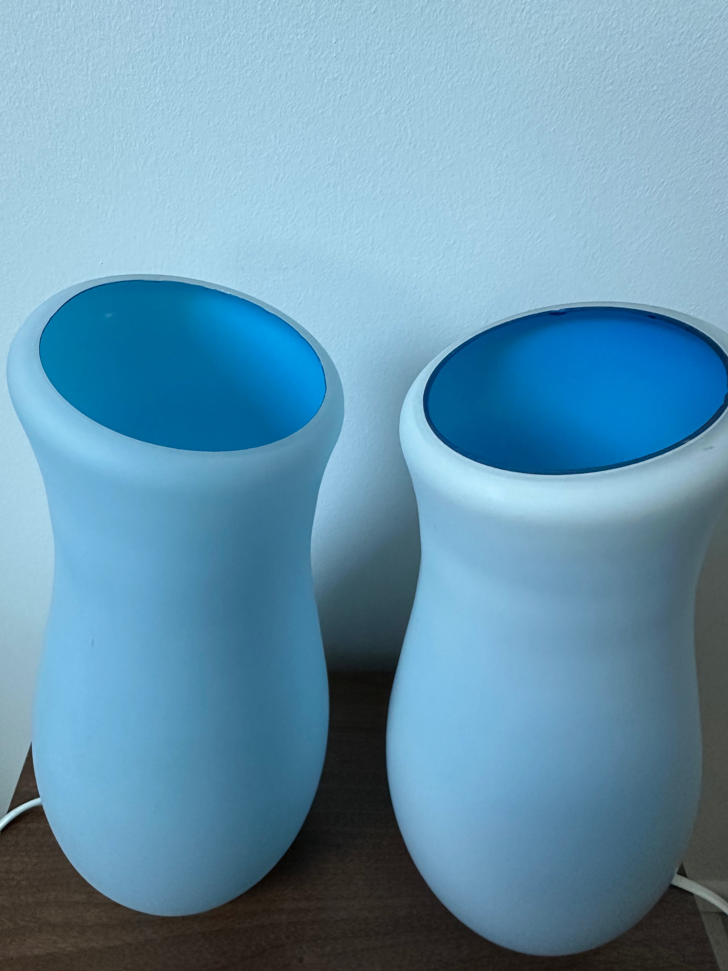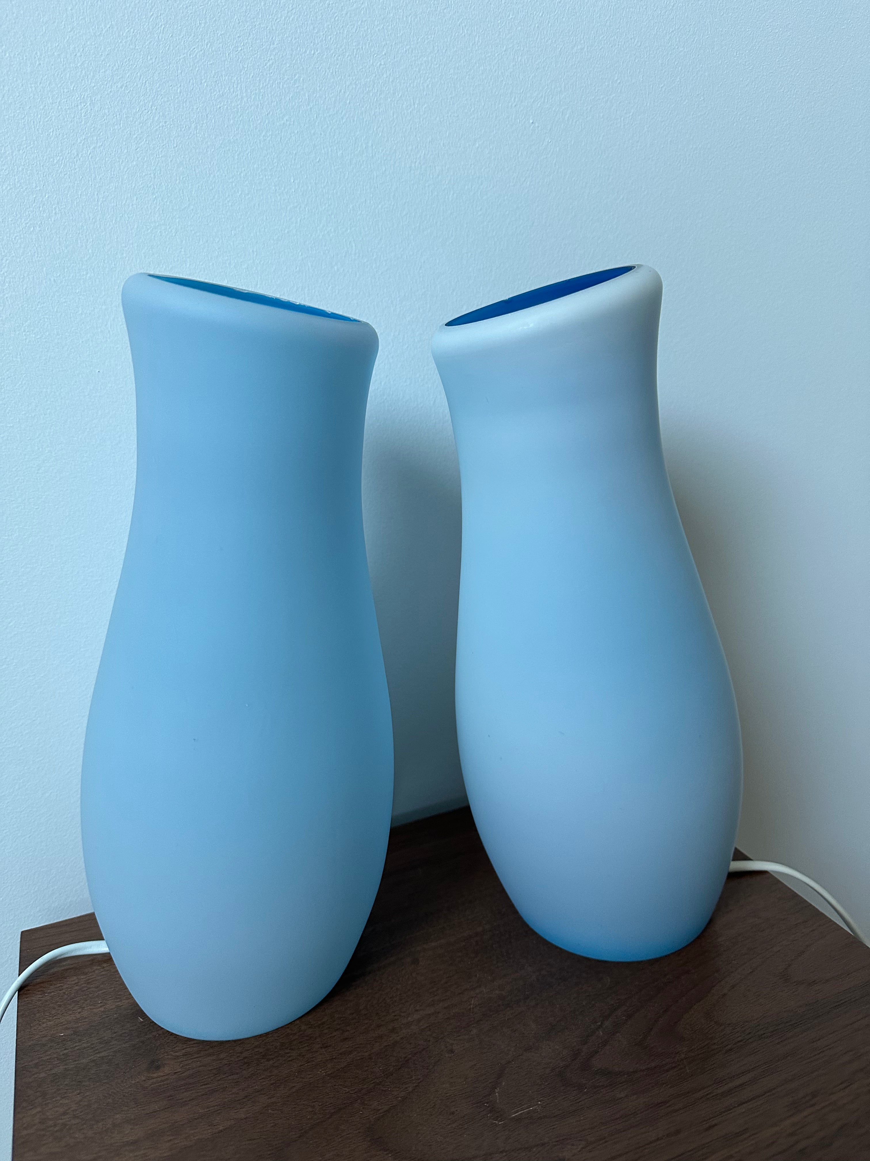 - Ensemble de 2 lampes vintage Ikéa des années 90, modèle Mylonit, Design by Kristin Leibel - Kristian Andersson, en verre soufflé dépoli et au style unique elles seront parfaites pour une lumière d'ambiance