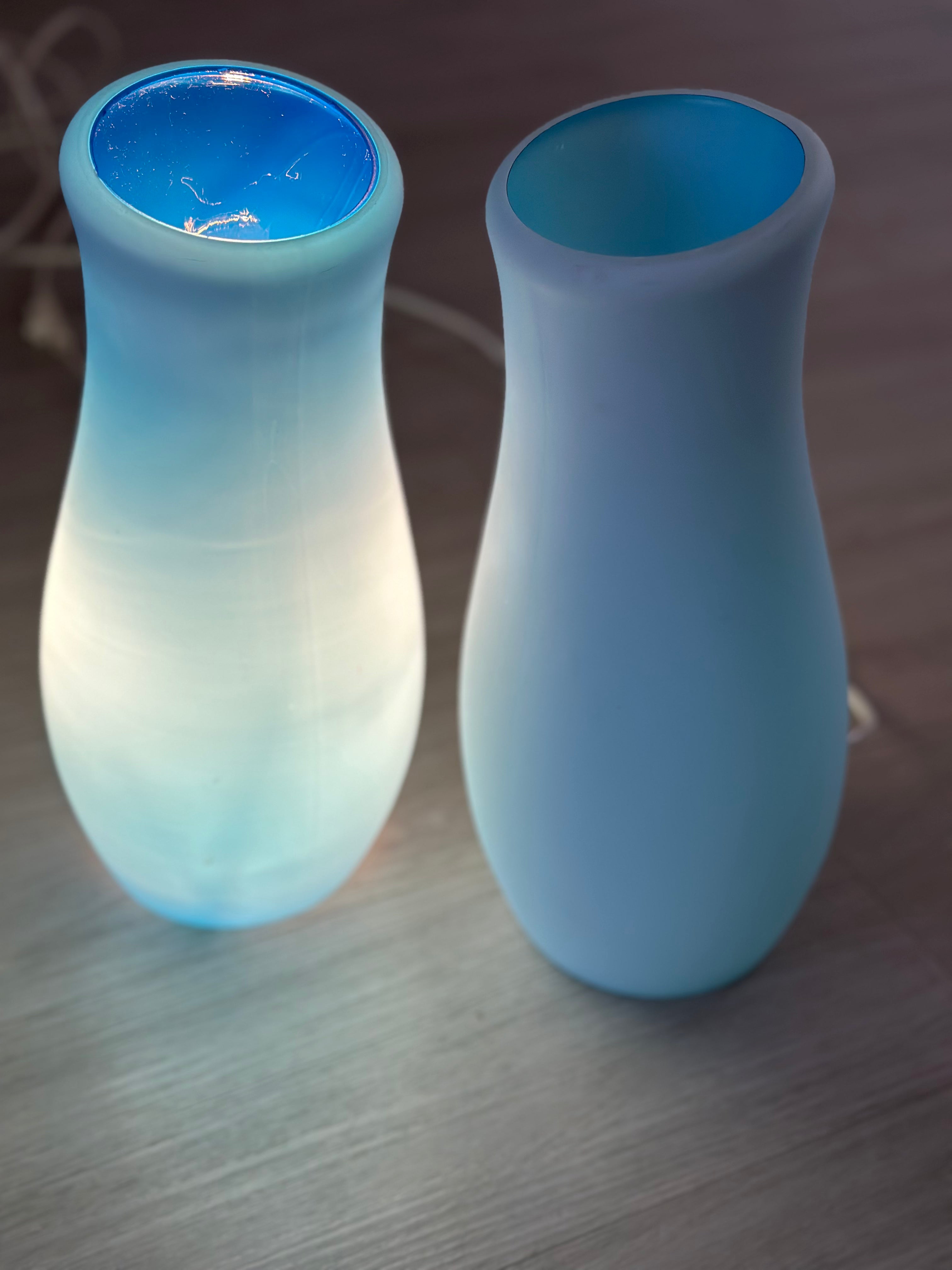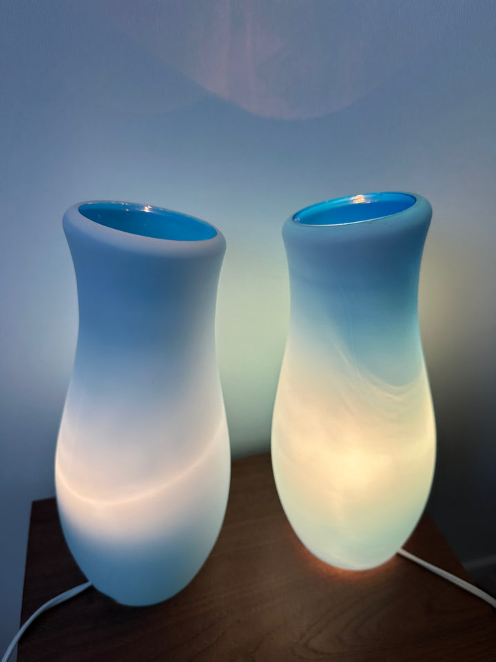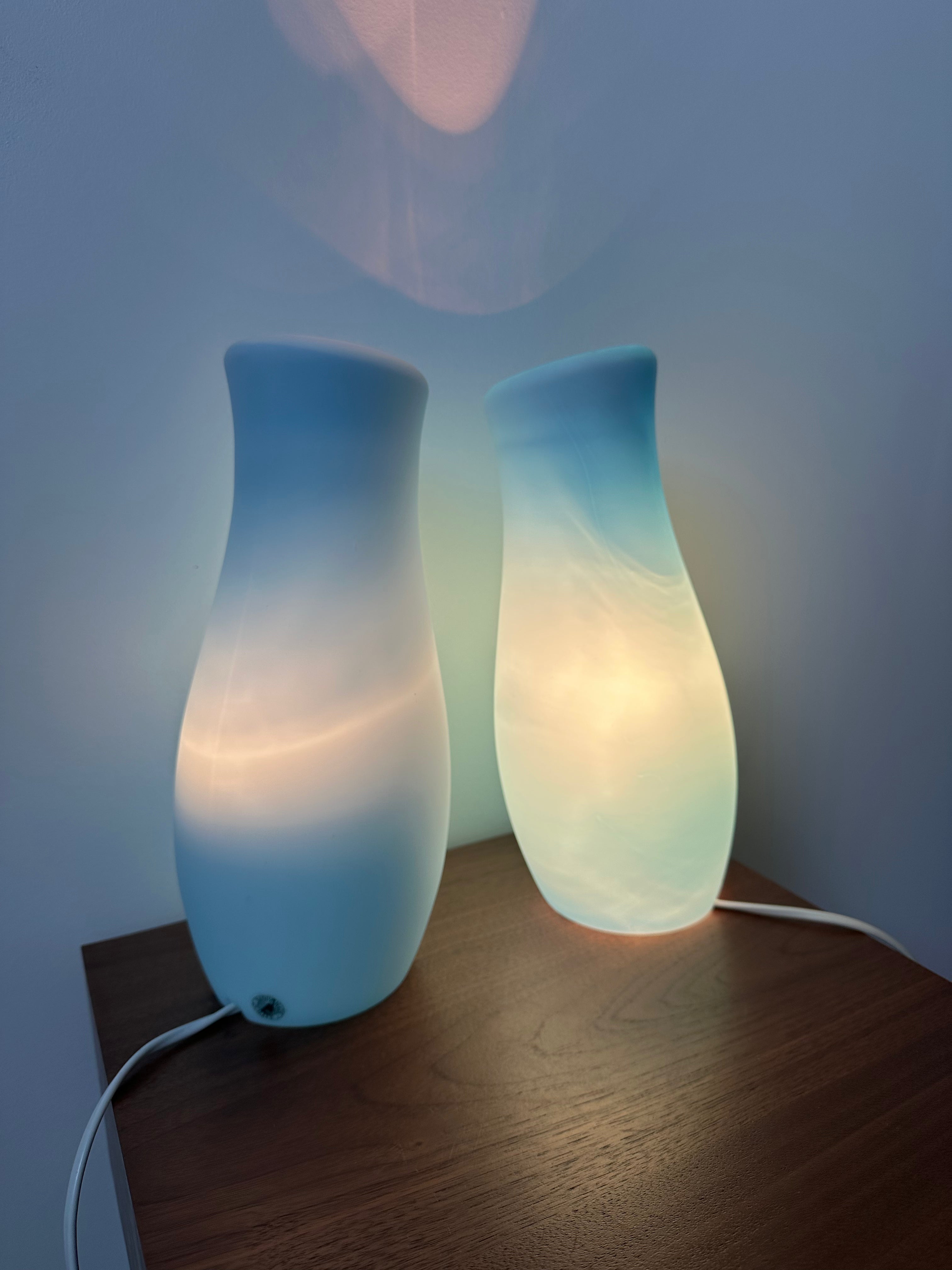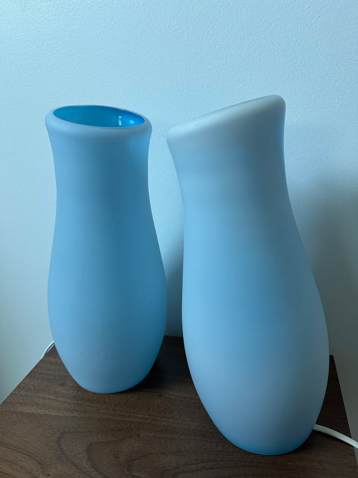 - Ensemble de 2 lampes vintage Ikéa des années 90, modèle Mylonit, Design by Kristin Leibel - Kristian Andersson, en verre soufflé dépoli et au style unique elles seront parfaites pour une lumière d'ambiance