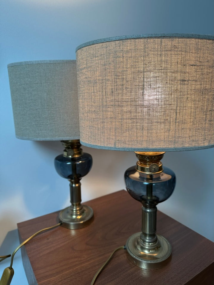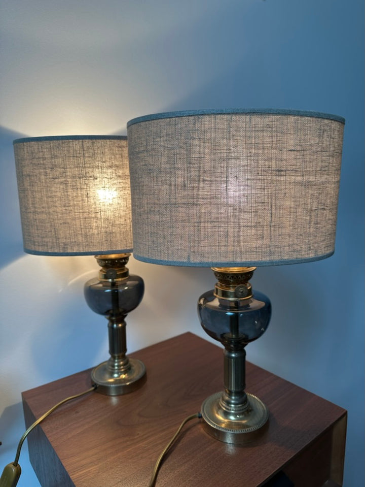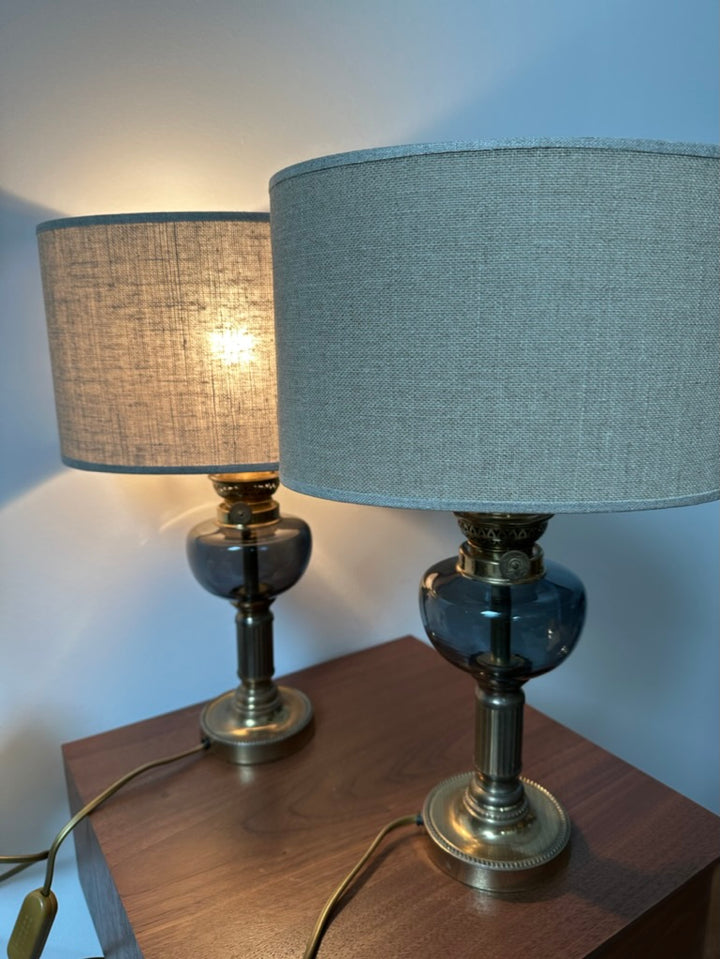 - 2 lampes des années 80 au style des anciennes lampes à pétrole, les abat-jour sont neufs et de fabrication Française, elles seront parfaites pour une ambiance chaleureuse