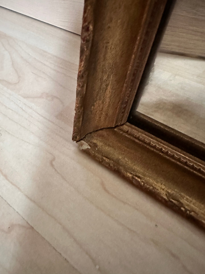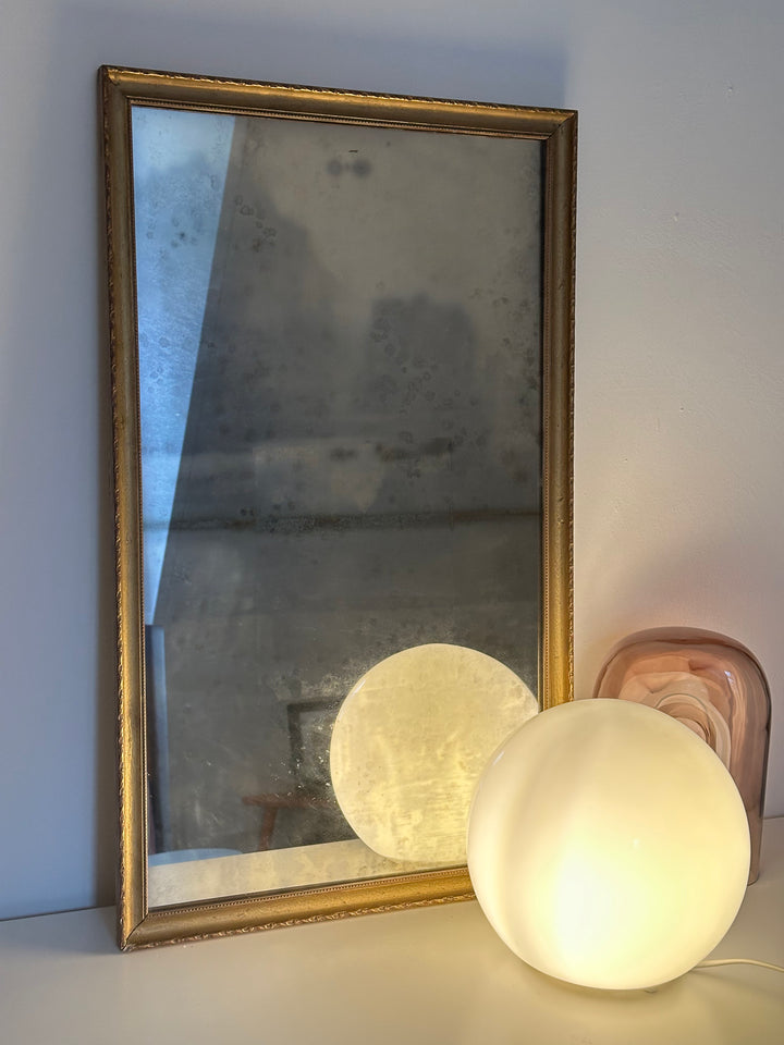 - Avec ses marques du temps visibles sur les photos, à noter l'effet passé et tacheté du miroir dû au temps et à sa matière