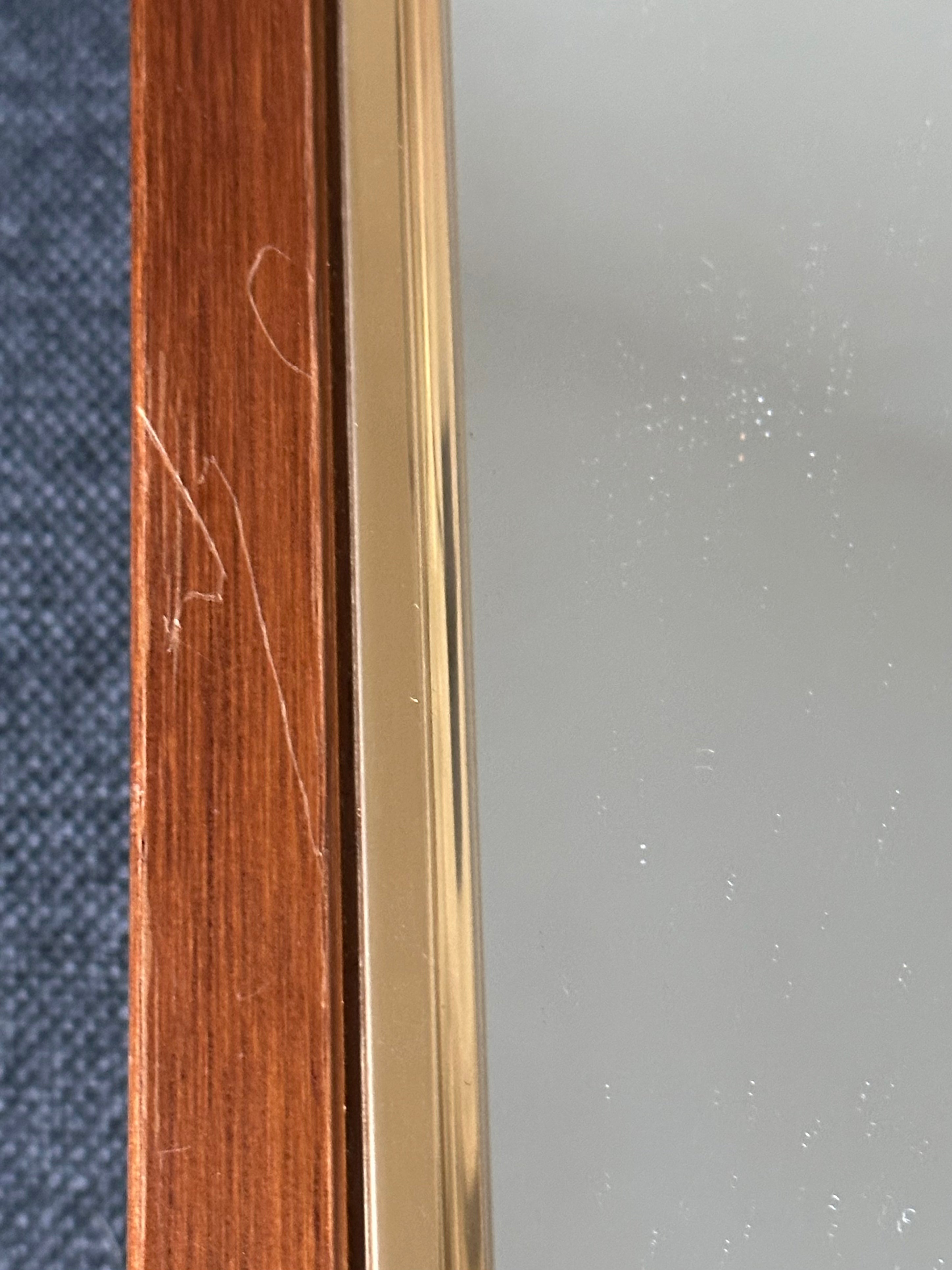 - En bon état général il présente tout de même des traces dues au temps sur le cadre, il a notamment 4 petites rayures sur le miroir, visibles sur les dernières photos, mais il mérite une seconde vie