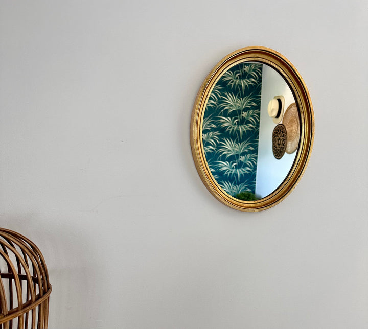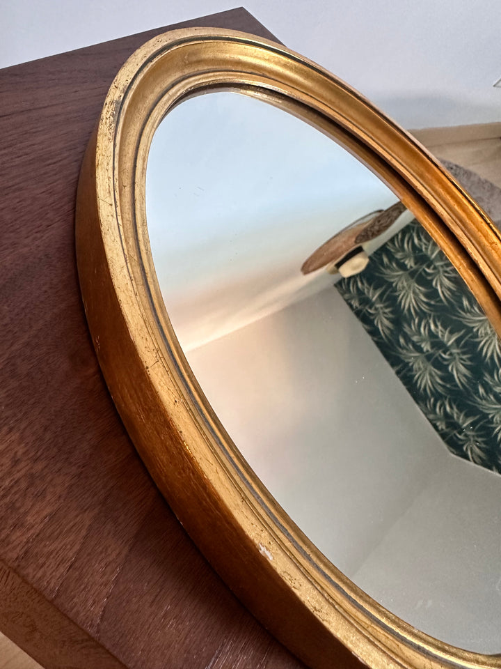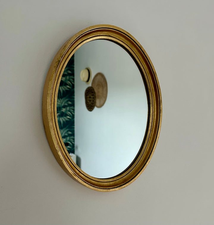 - Miroir ovale doré des années 80, il se mariera sans problème à votre déco, parmi d'autres miroirs ou simplement posé sur un meuble à côté de fleurs par exemple