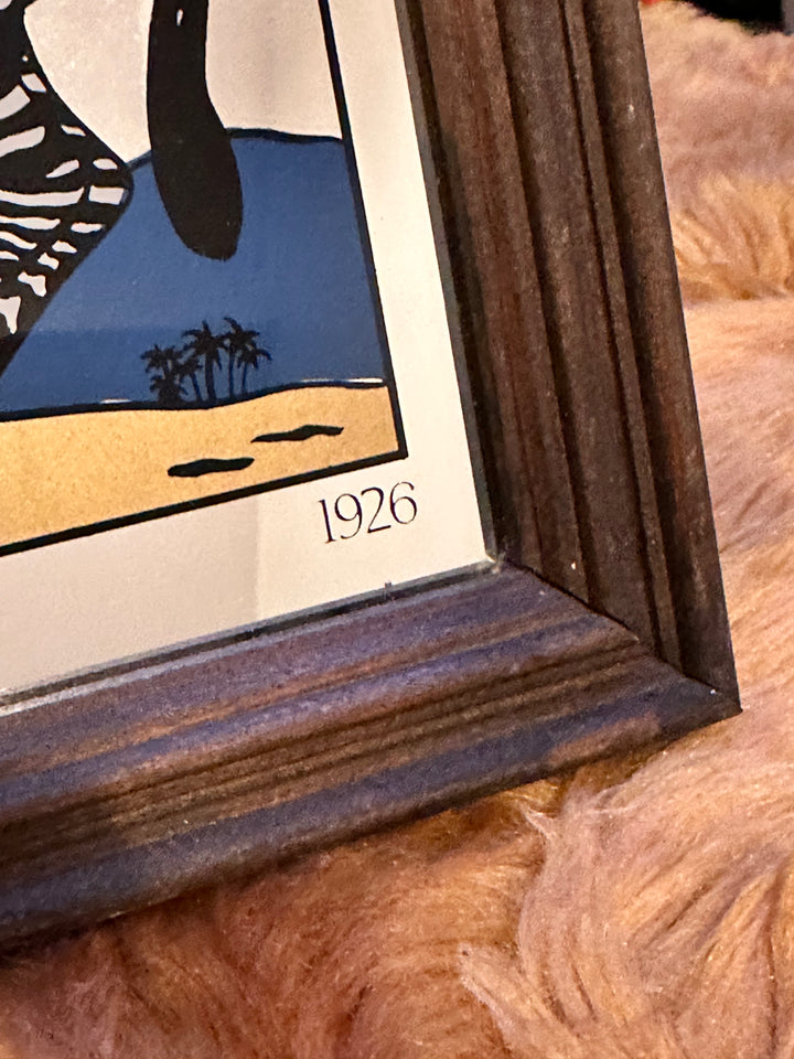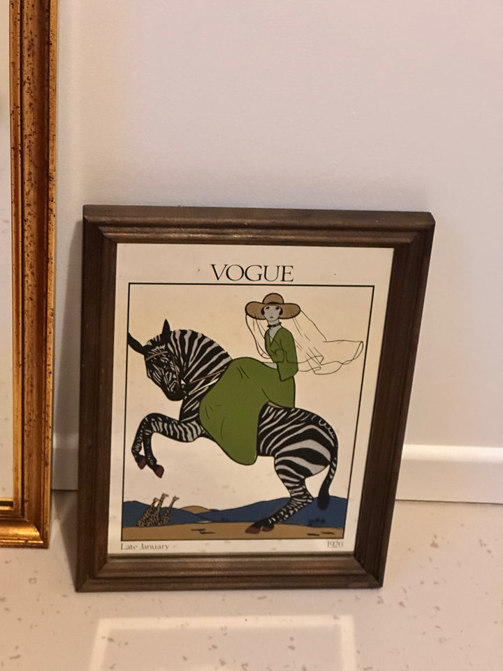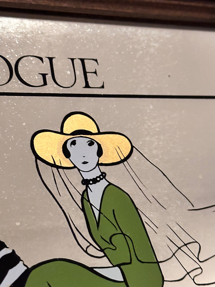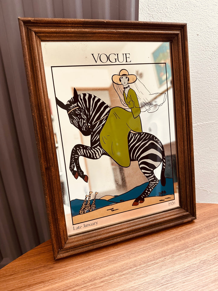 - Miroir sérigraphié des années 80, Vogue au dessin d'une femme sur un zèbre