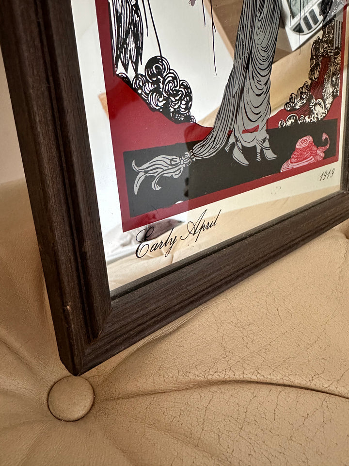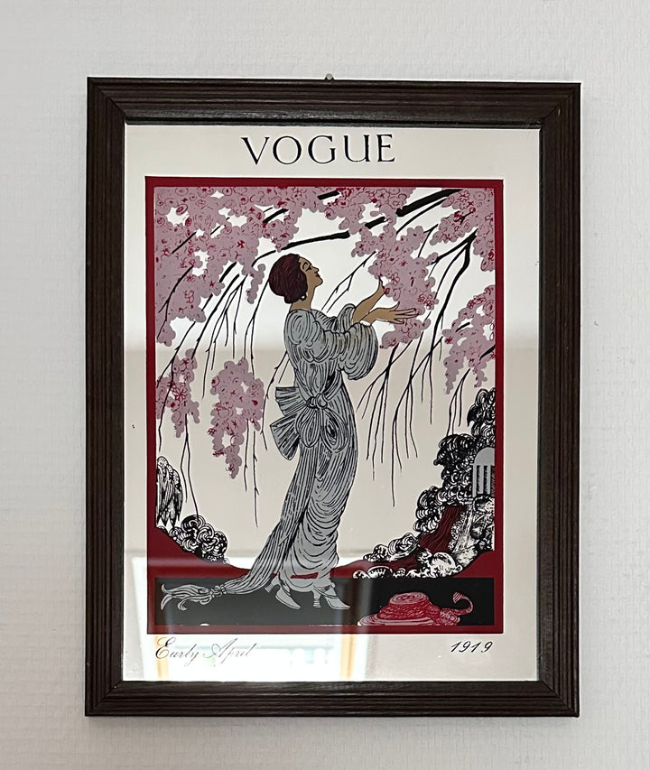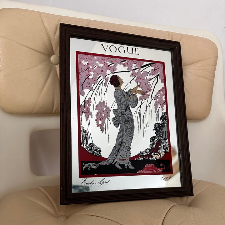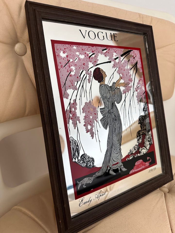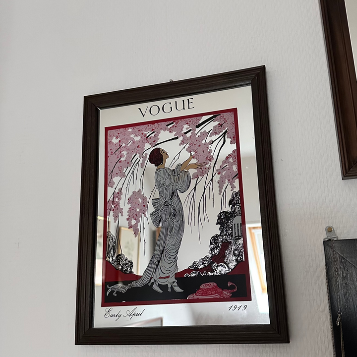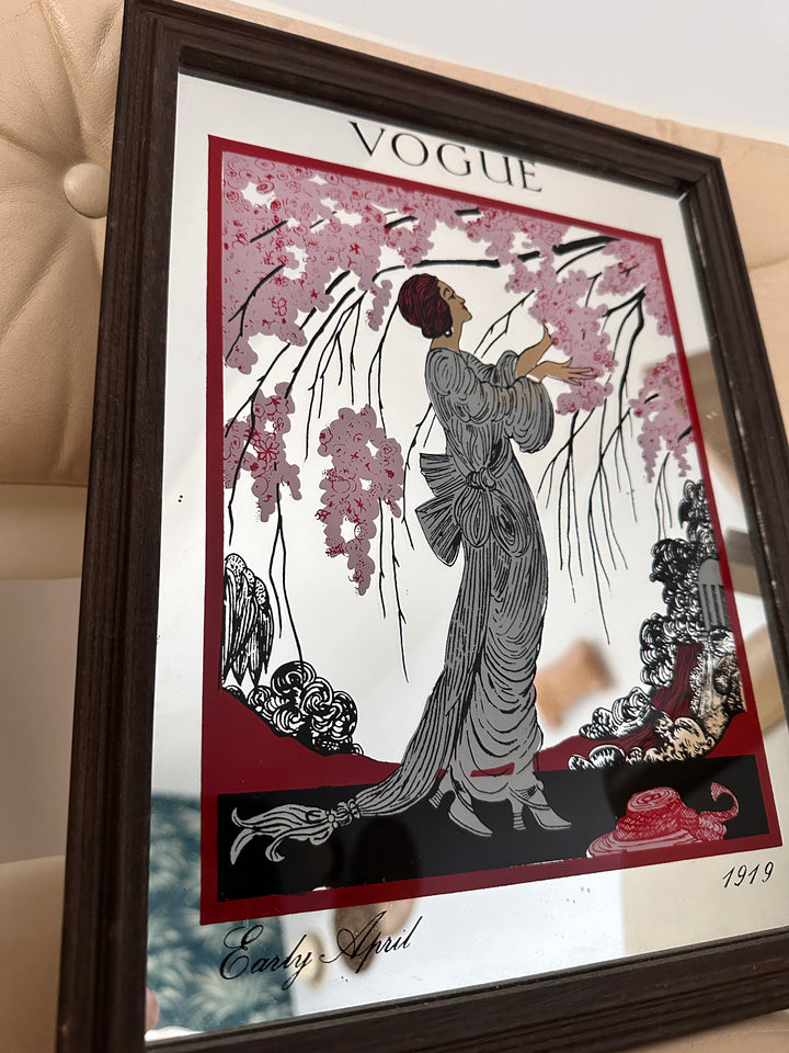 - Miroir sérigraphié des années 80, représentant une femme sous un cerisier fleuri rose, il s'adaptera à tous styles de déco