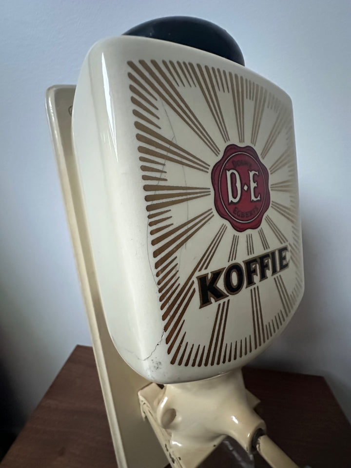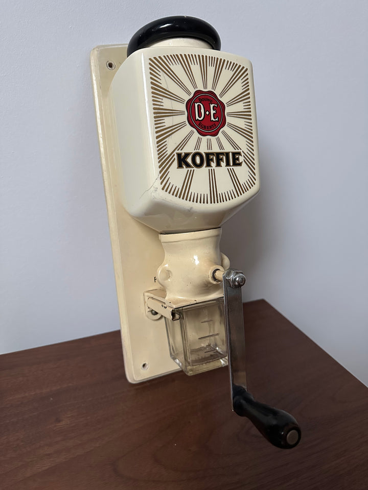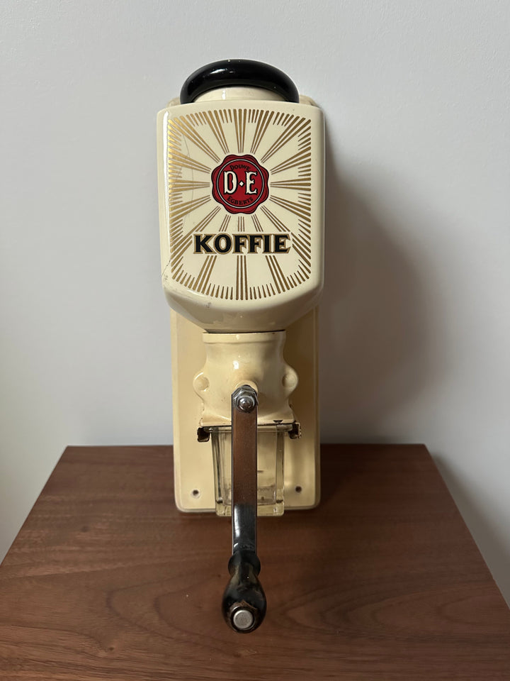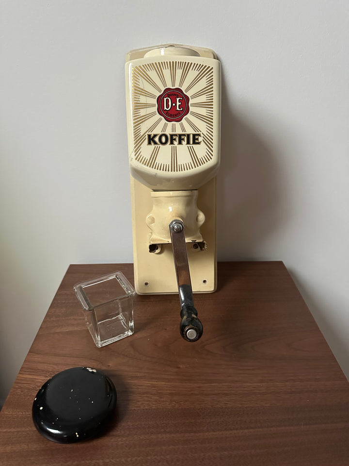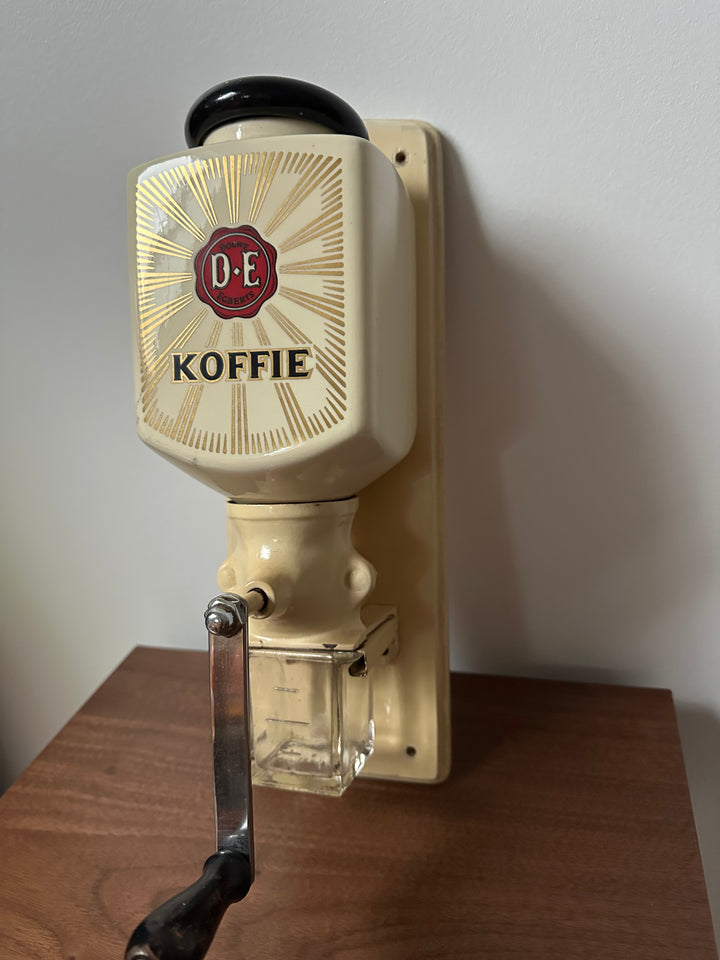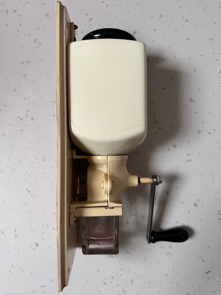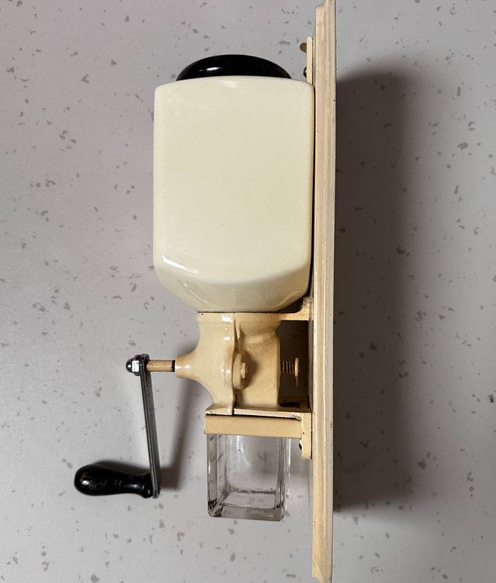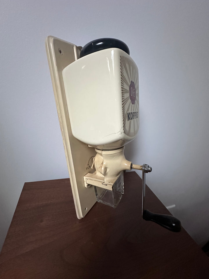 - Moulin à café mural des années 60 avec son récipient, chiné en Hollande, à Bréda