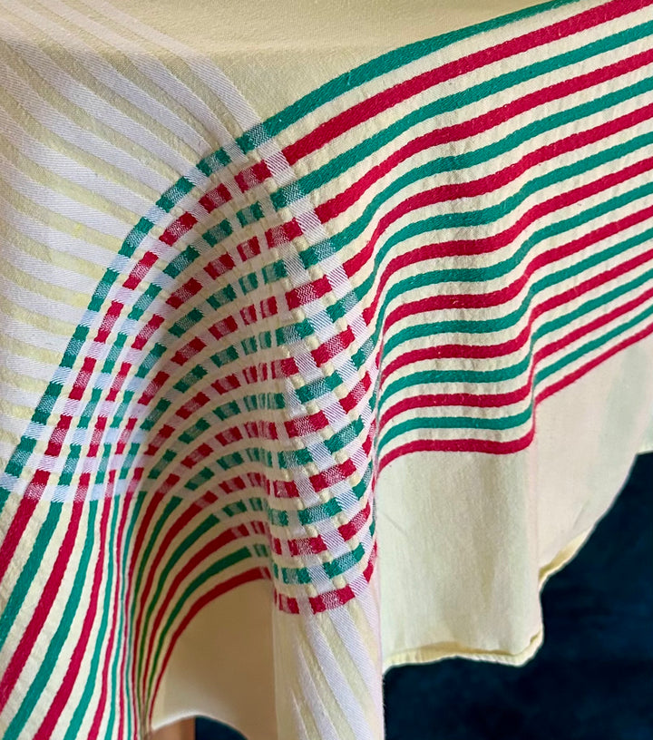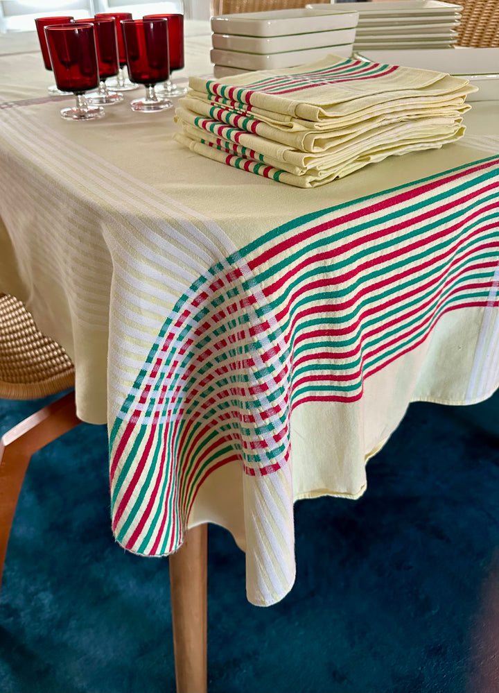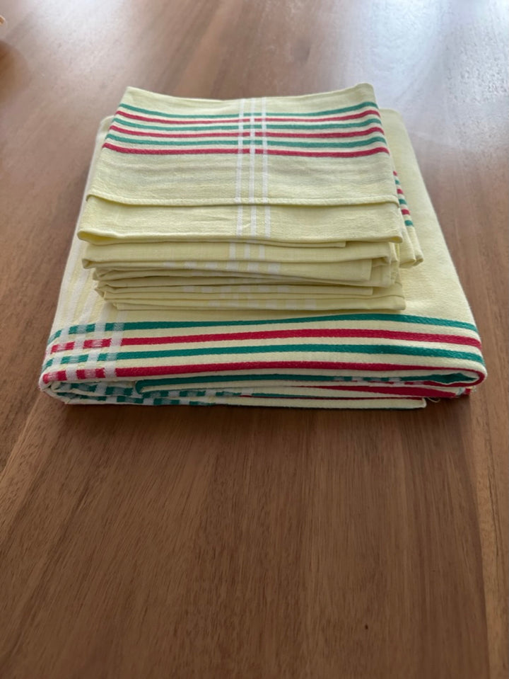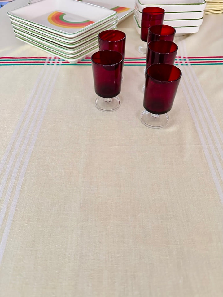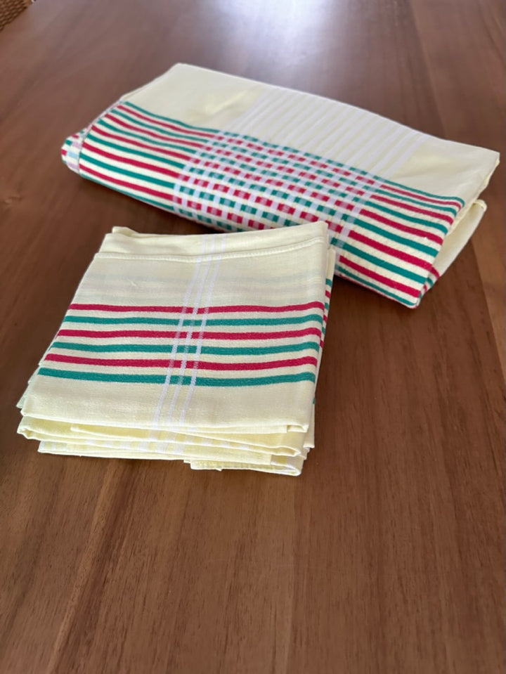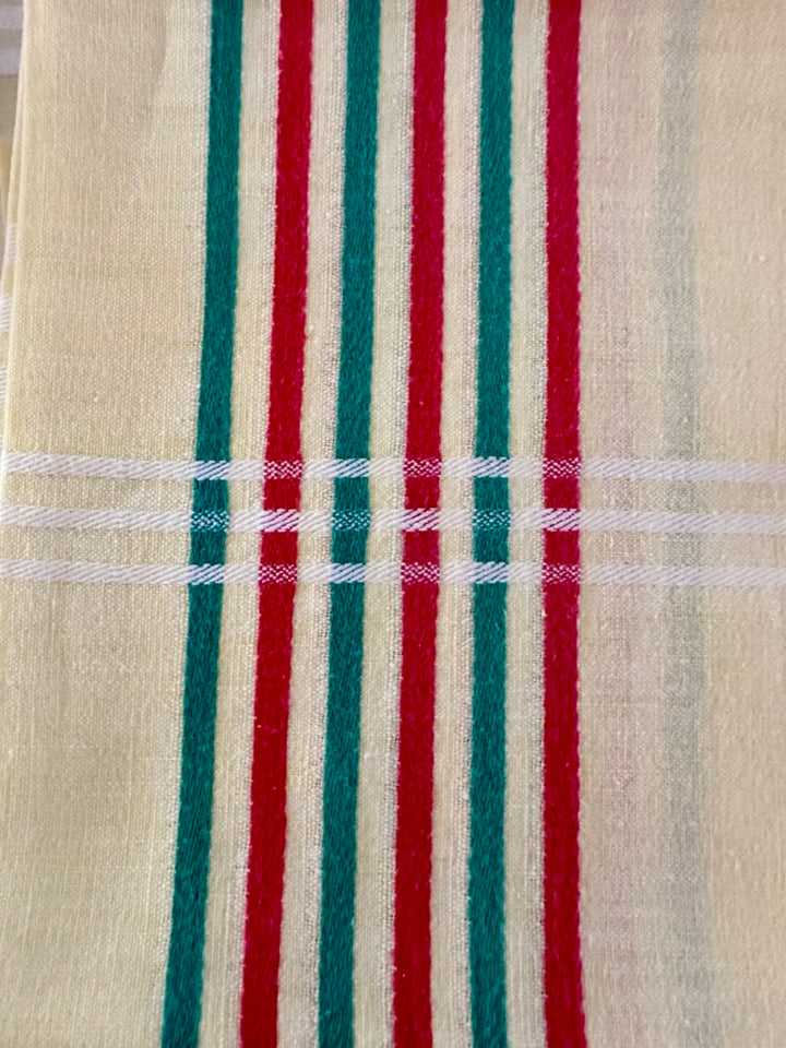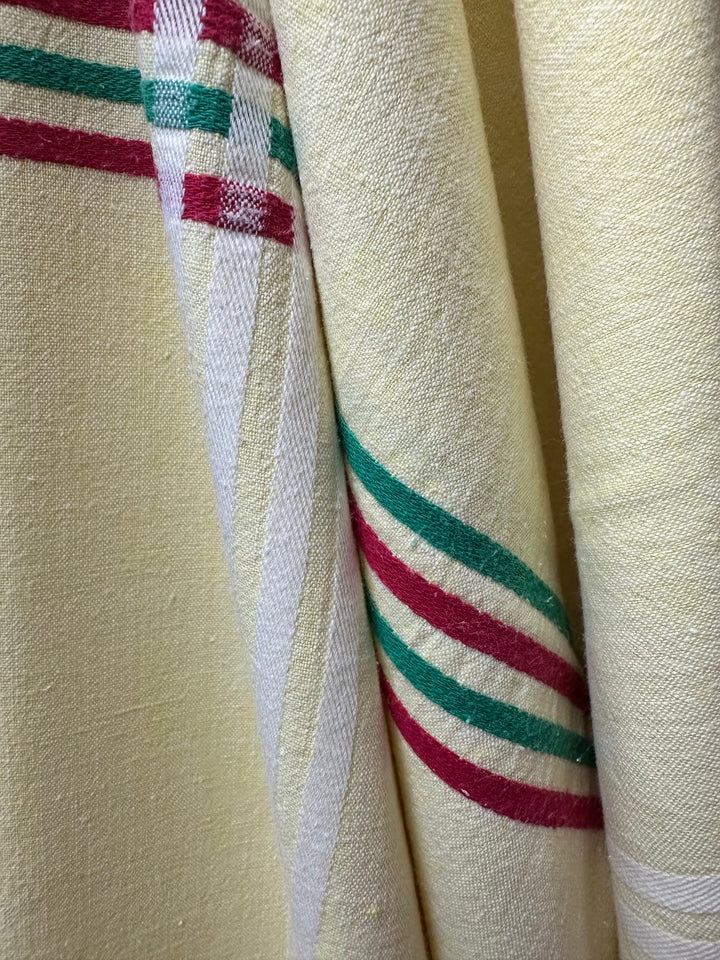 - Coloris : Jaune pâle en couleur principale - Bandes rouges - vertes et blanches