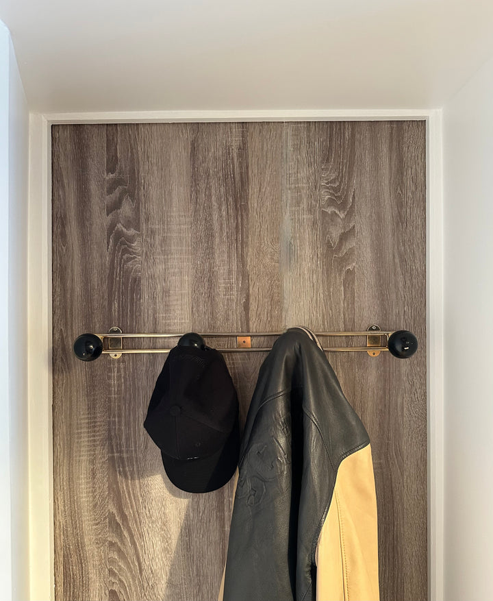 - Longueur : 60 cm - Hauteur : 4 cm - profondeur des patères : 10,5 cm