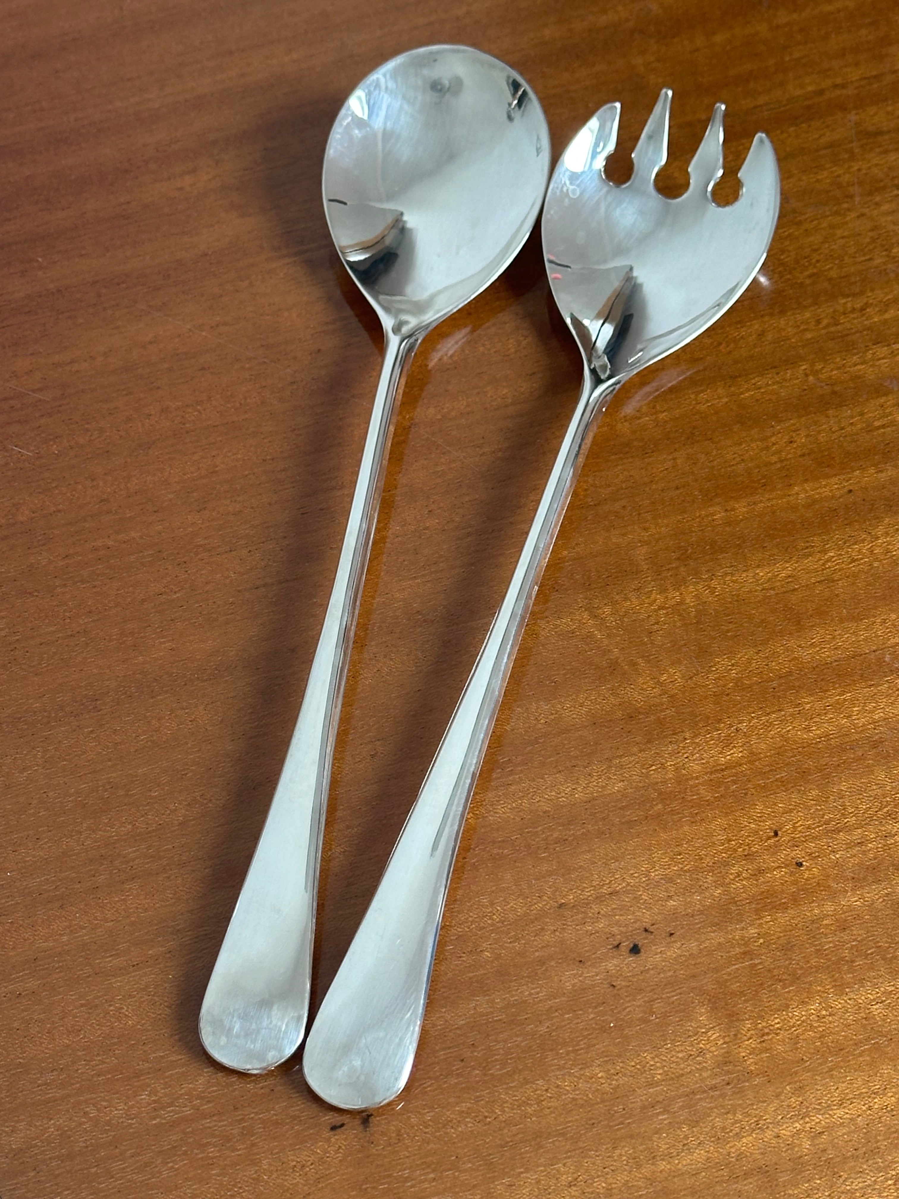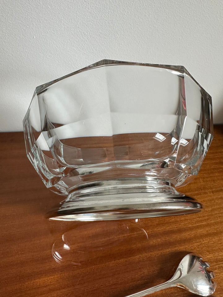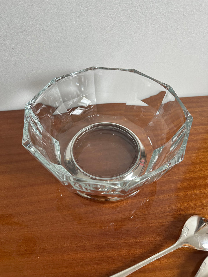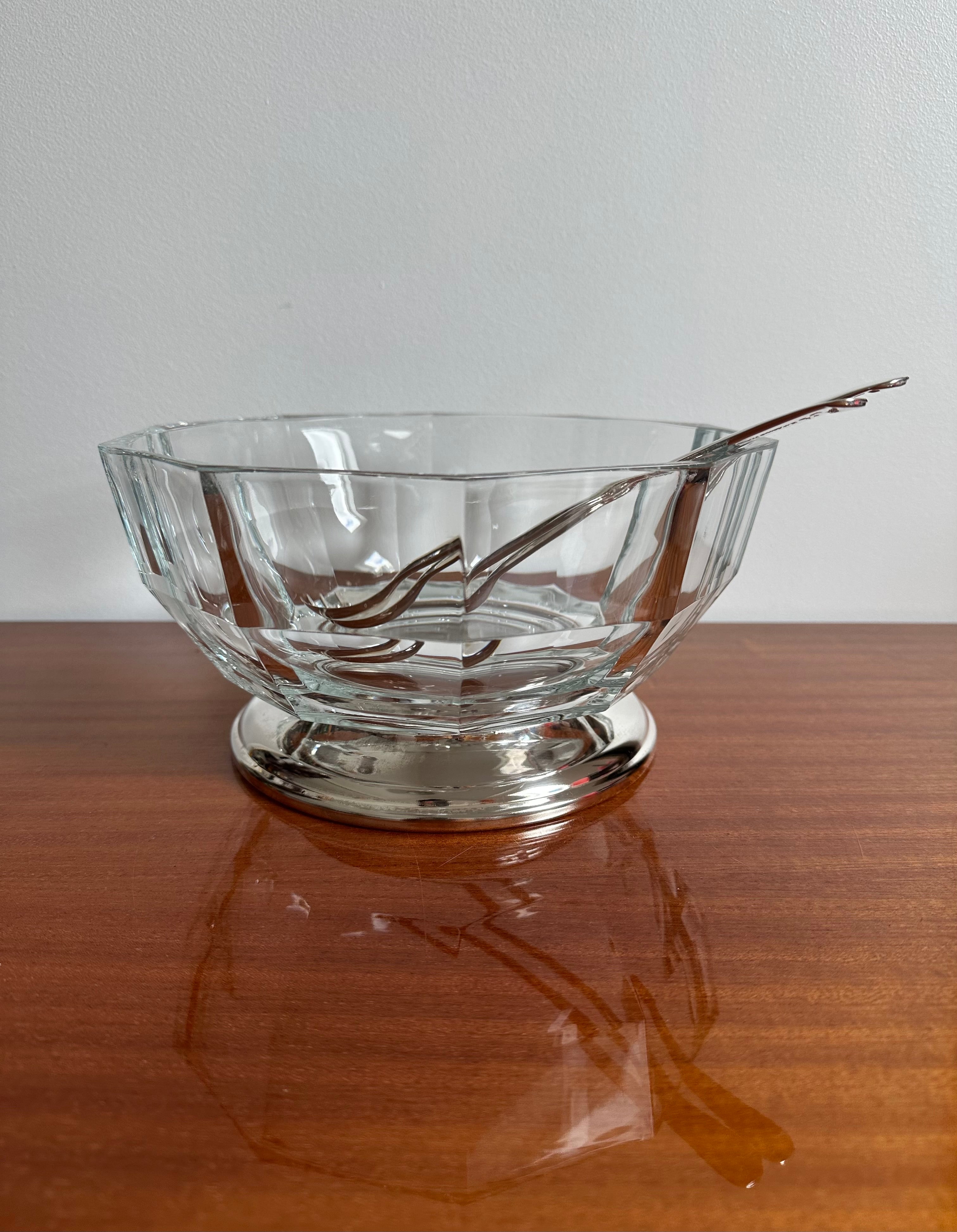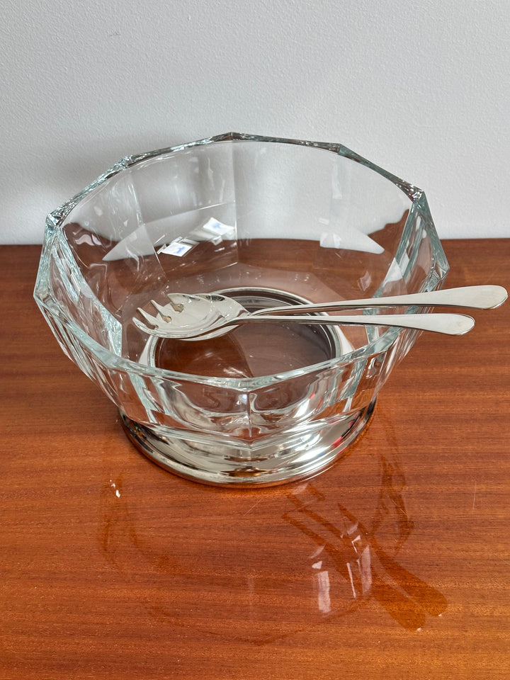 - Très beau saladier des années 80, en verre et métal argenté avec ses 2 couverts assortis, pour servir tout ce que vous souhaitez avec élégance