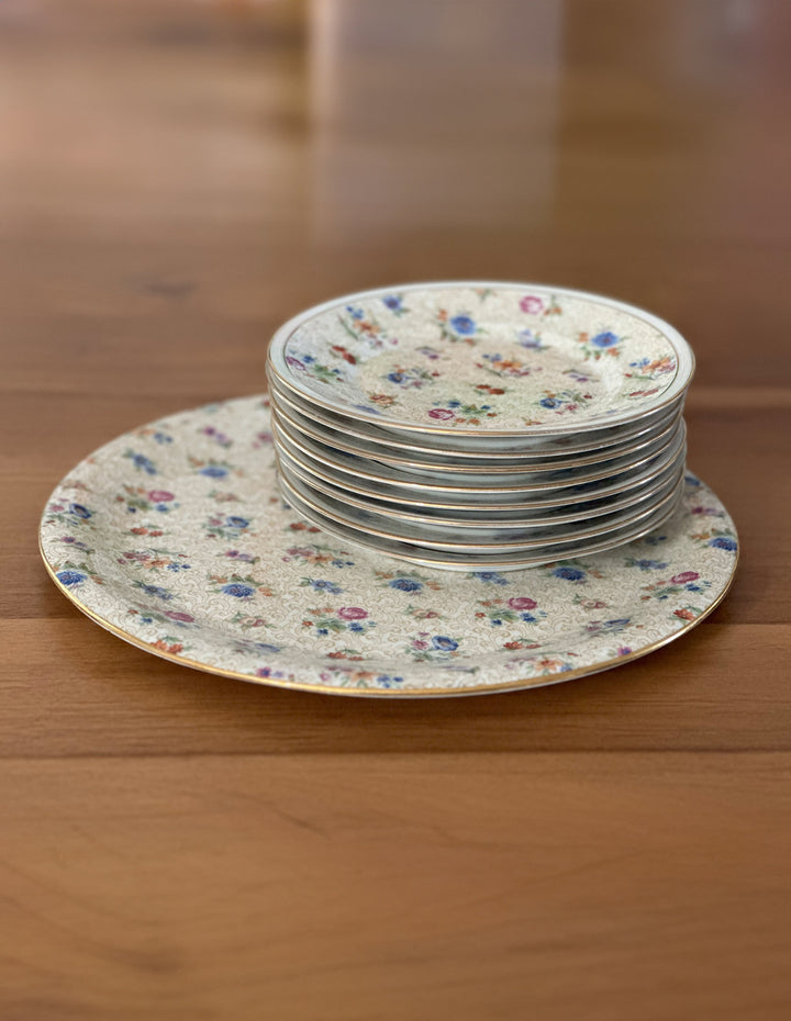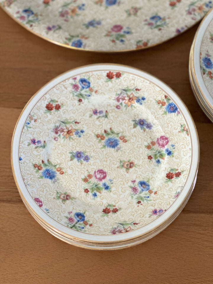 - Bord des assiettes souligné d’un liseré doré qui met en valeur le joli décor floral