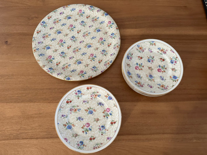 - Service à dessert en porcelaine composé de son plat à gâteau et ses 8 assiettes des années 80