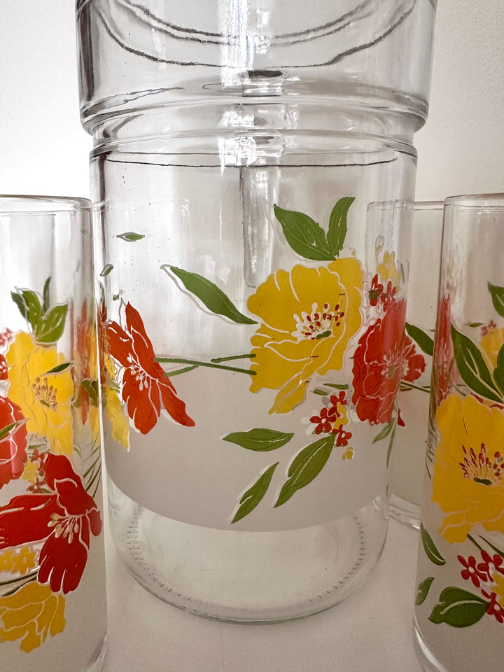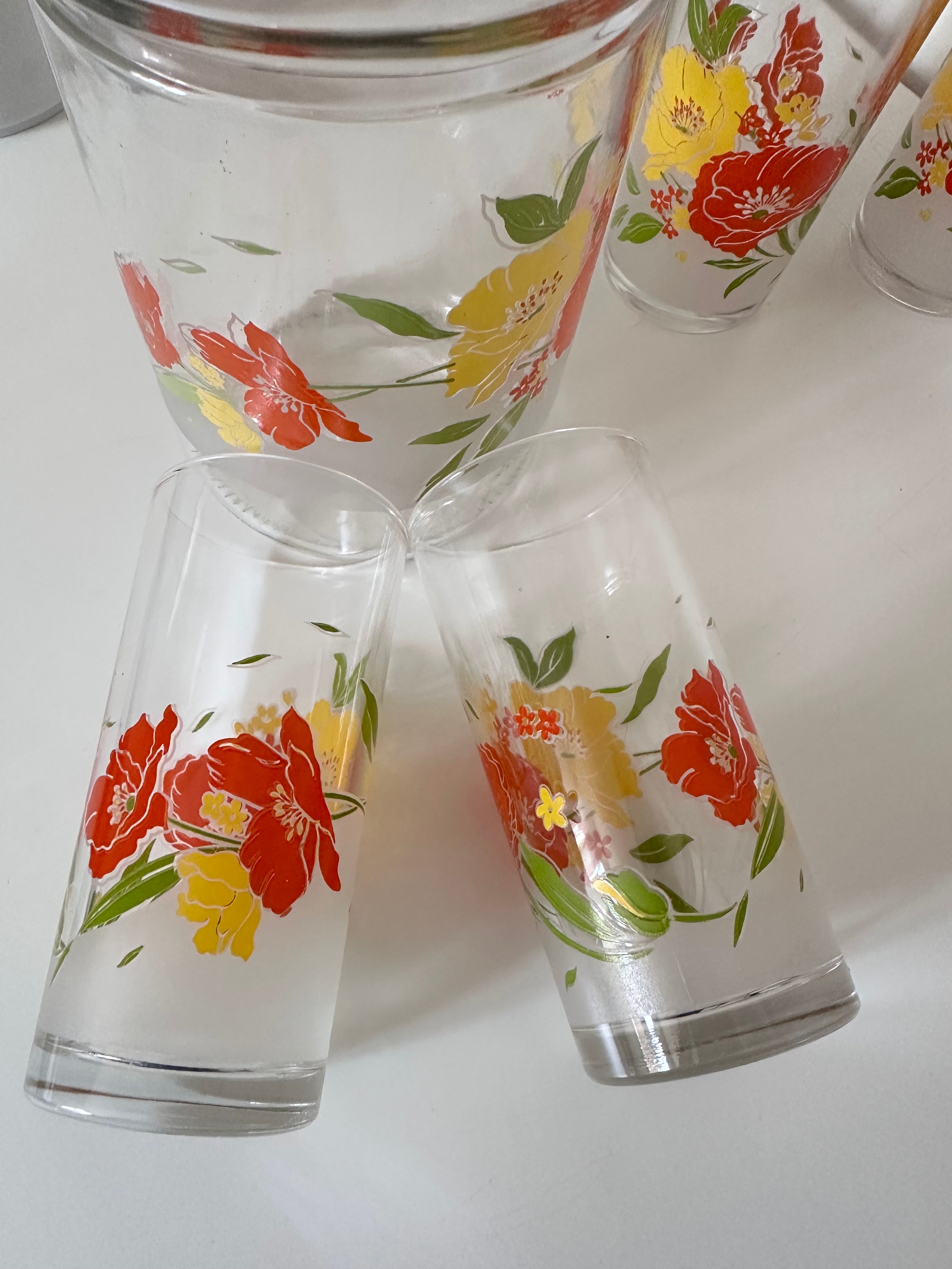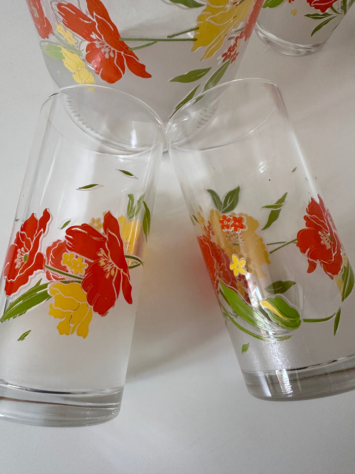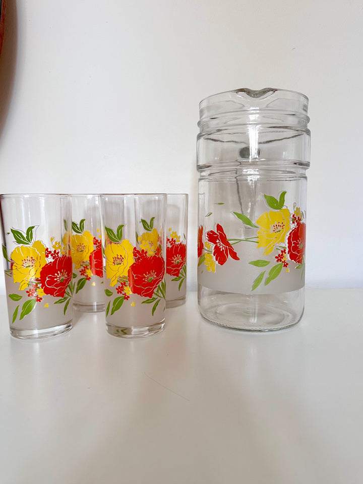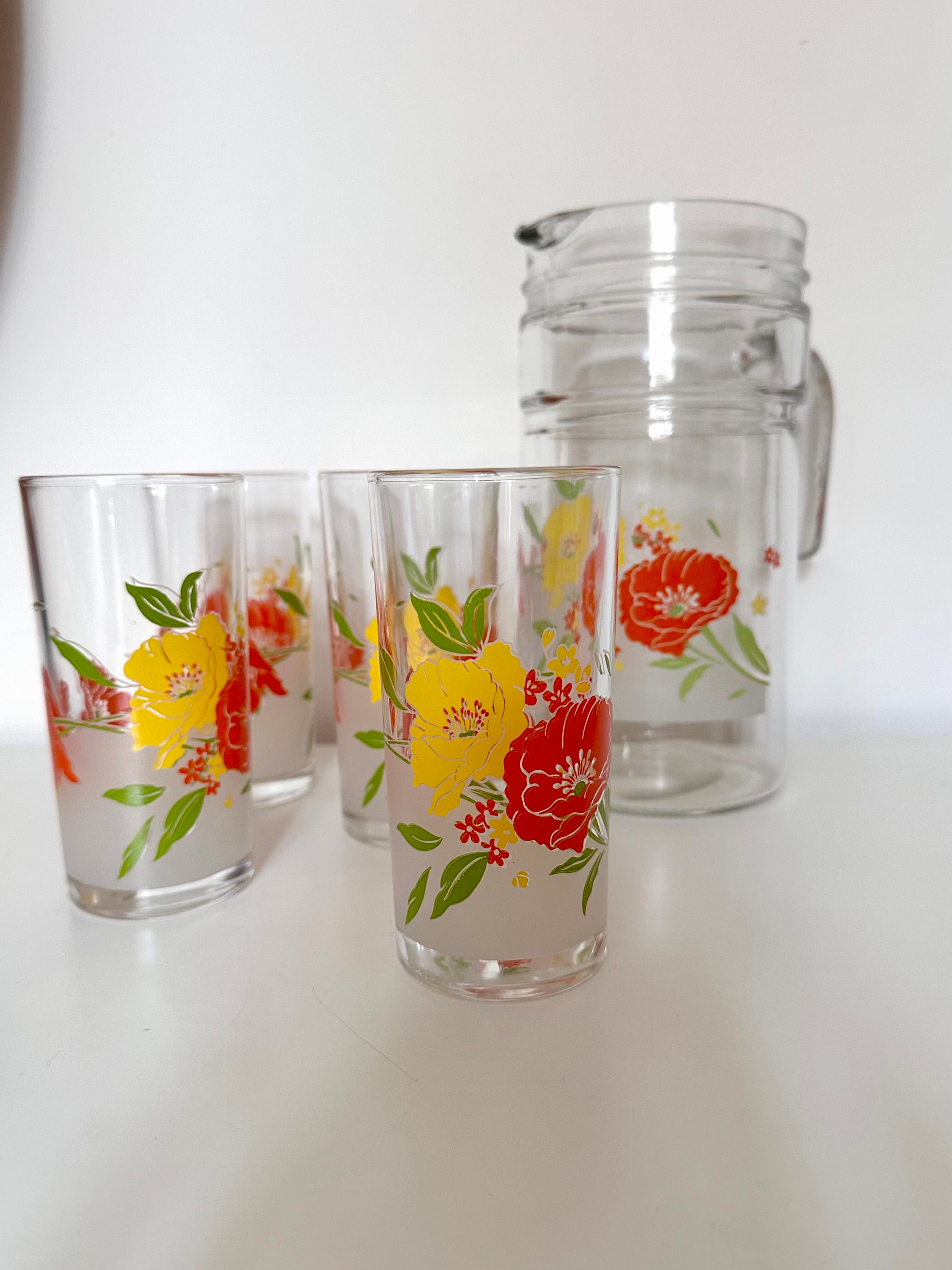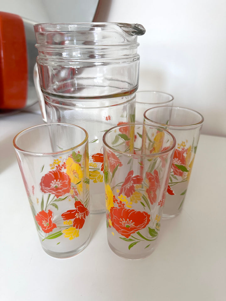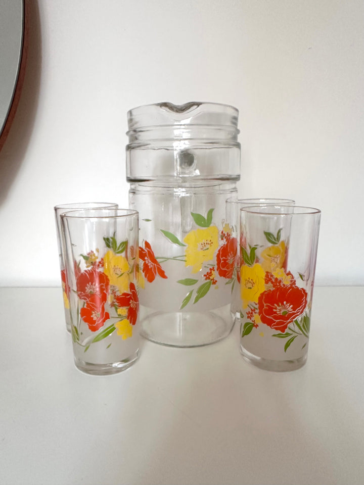 - Joli service à orangeade des années 80, composé de 4 verres hauts et un broc