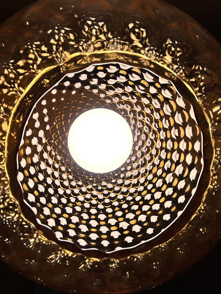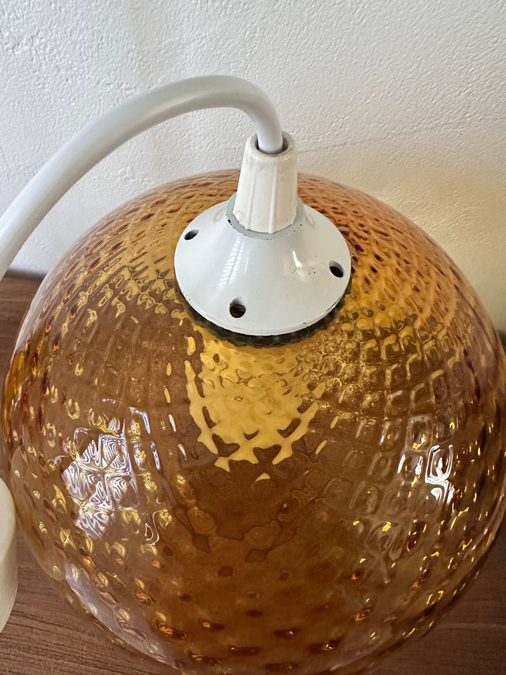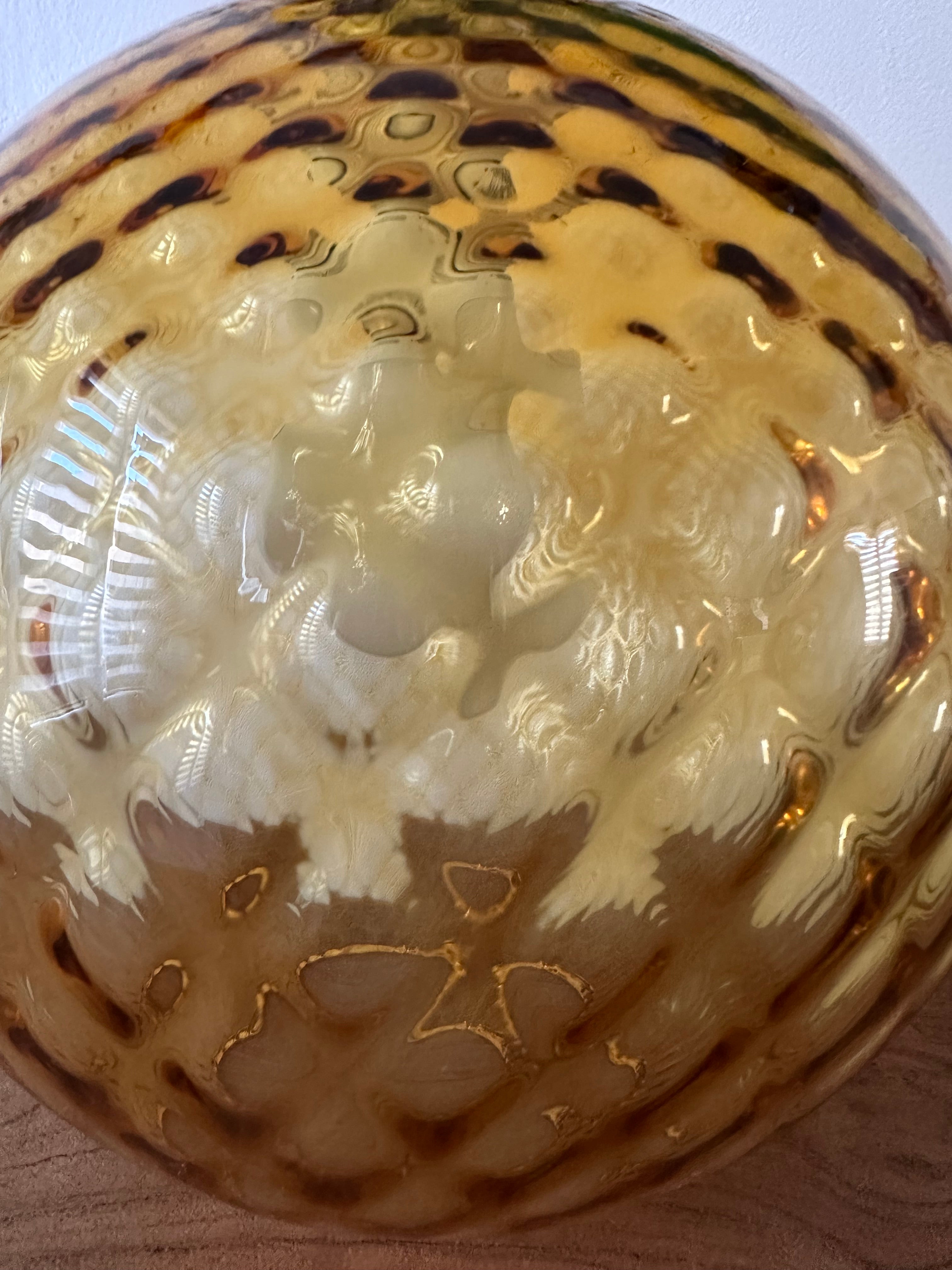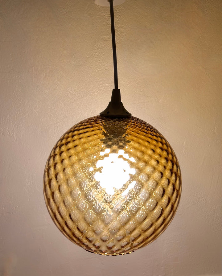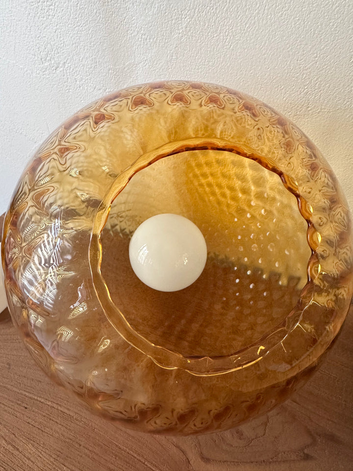 - Suspension globe en verre ambré l'intérieur est en relief, l'extérieur est lisse