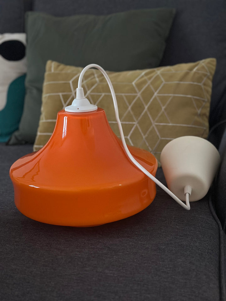 - Suspension orange des années 70 pour sublimer votre intérieur, sa forme et sa couleur ont été un coup de coeur lors de la réderie d'Amiens