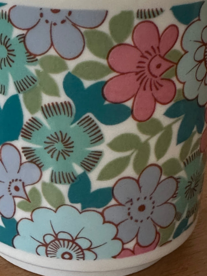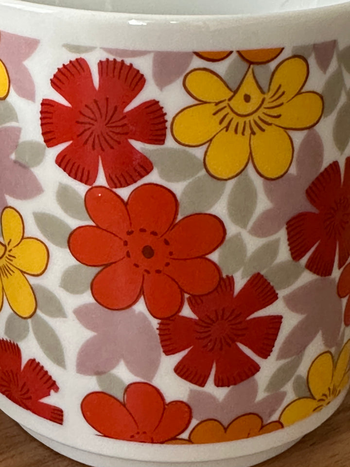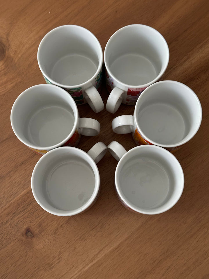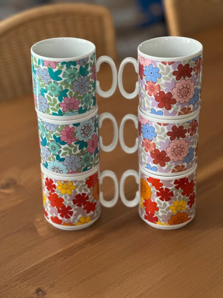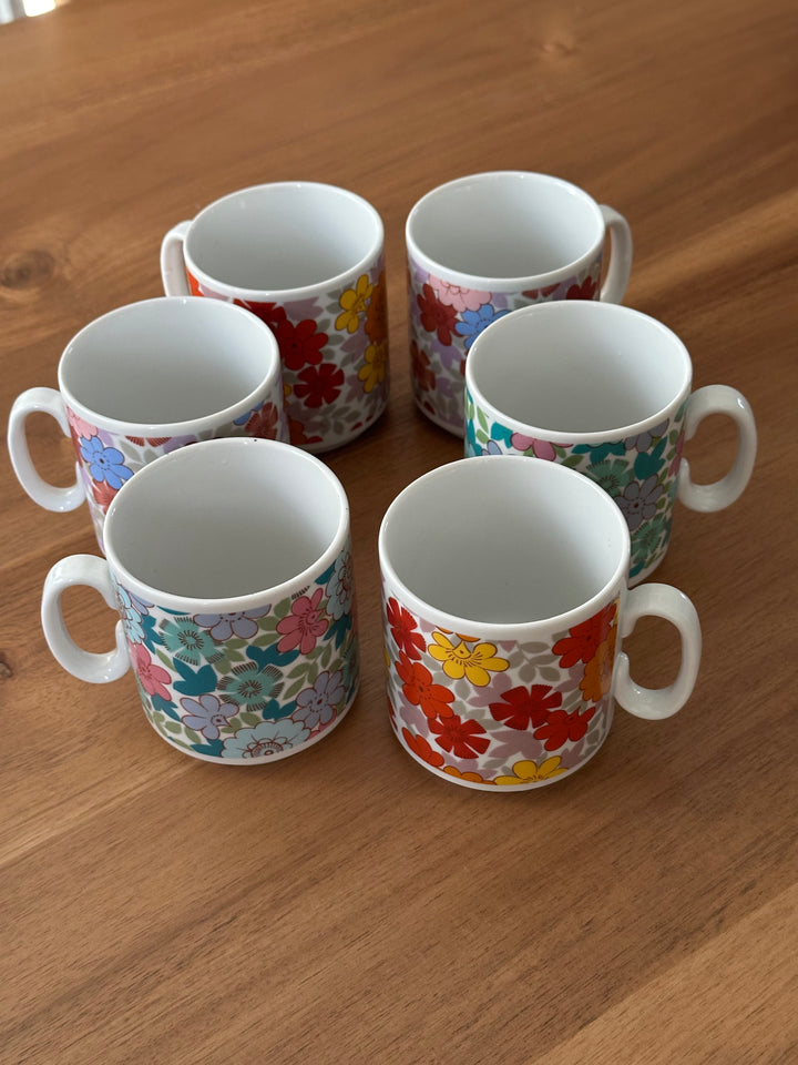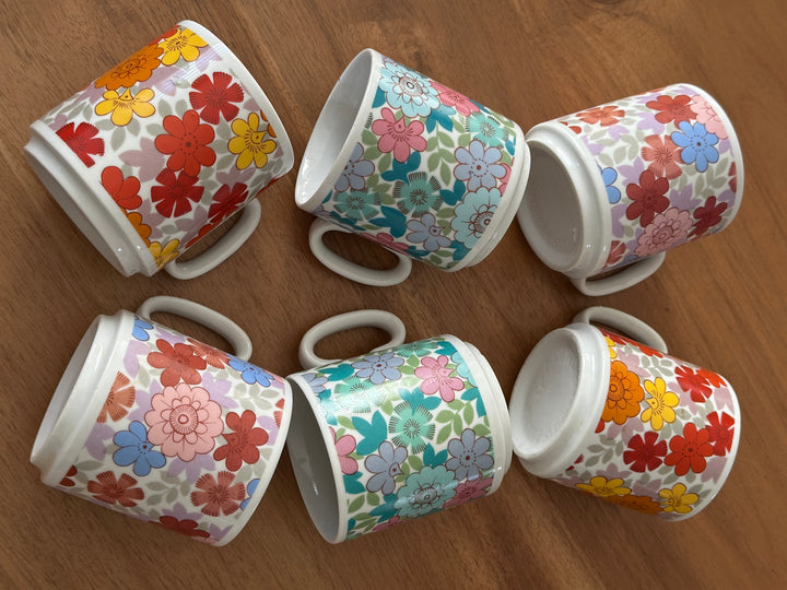 - Ensemble de 6 tasses des années 70/80 aux motifs très 70, fabriquées en Allemagne de l'ouest, estampillé sous le dessous