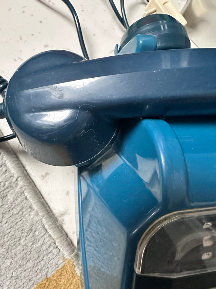 - En bakélite et plastique de couleur bleue, les touches sont blanches