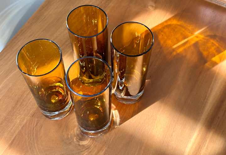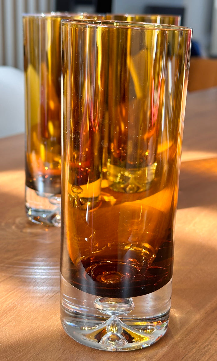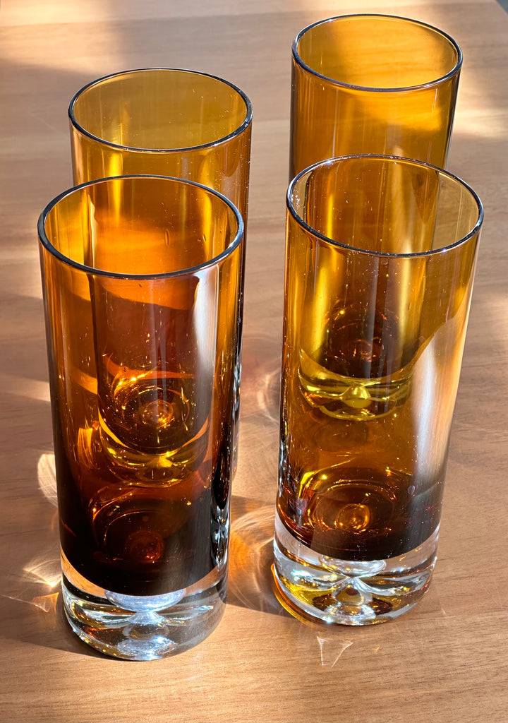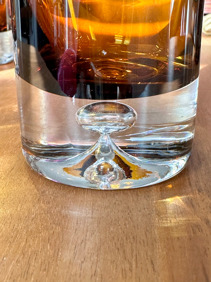 - 4 verres haut des années 70 avec une bulle d'air en décor à l'intérieur de la base