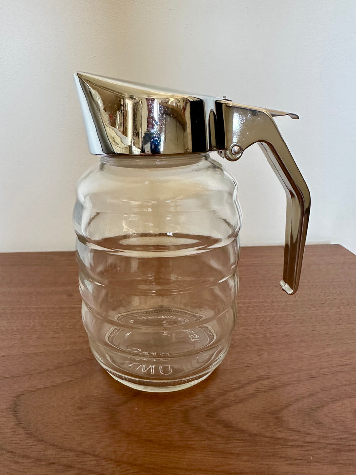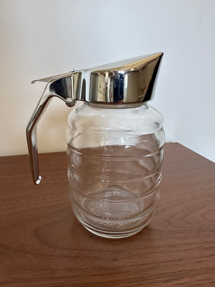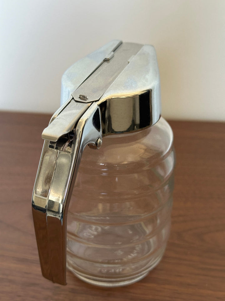 - Verseuse à miel ou sirop d'érable pour les plus gourmands avec clapet coulissant ouverture-fermeture, des années 80